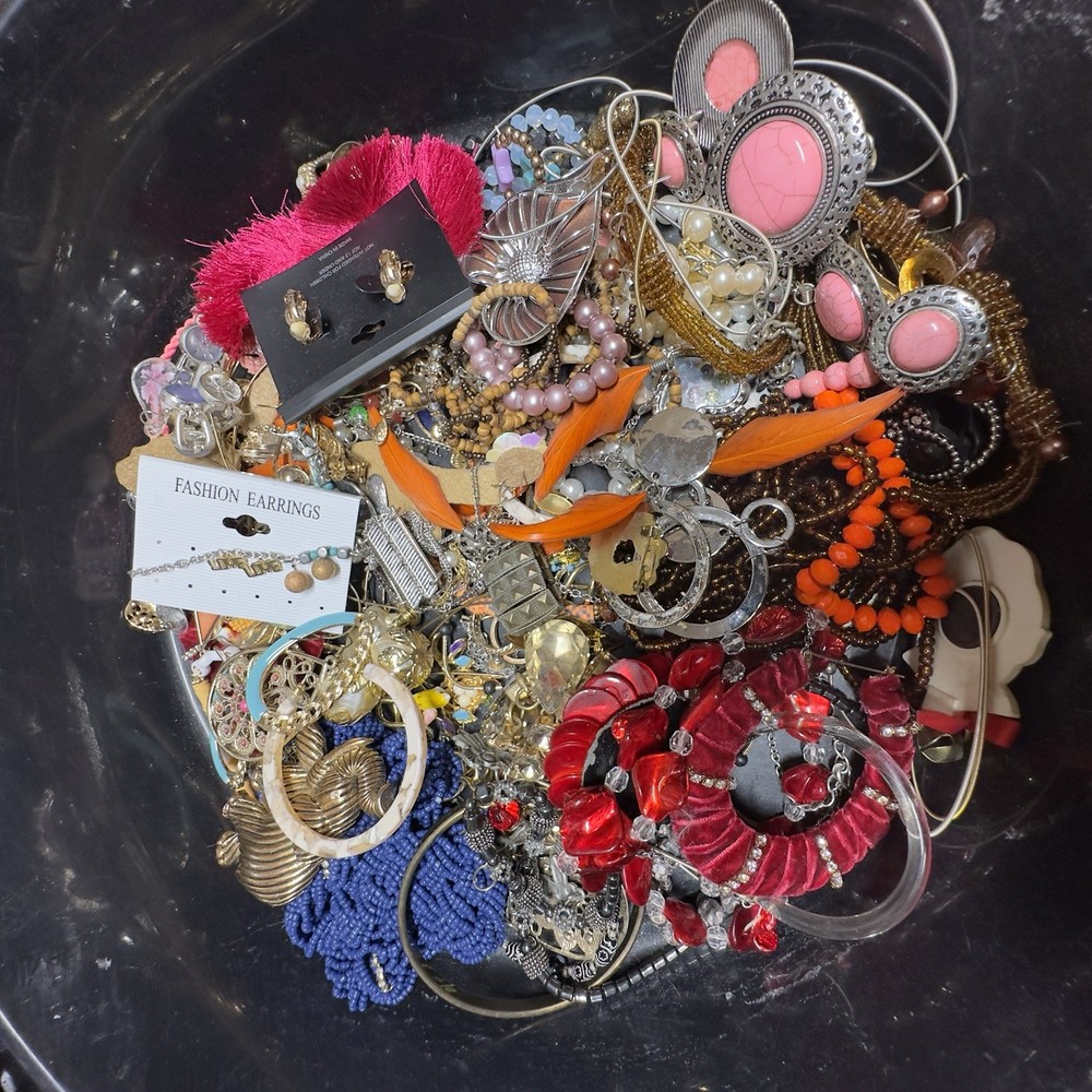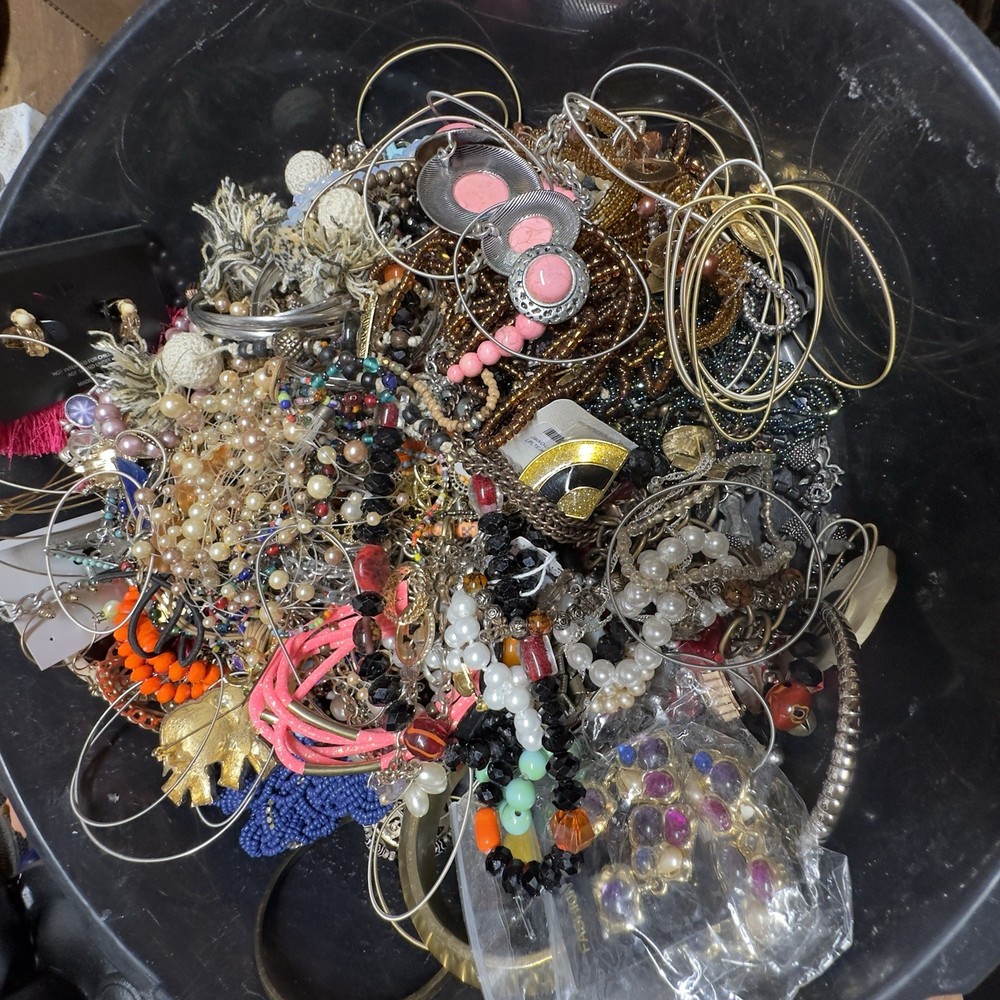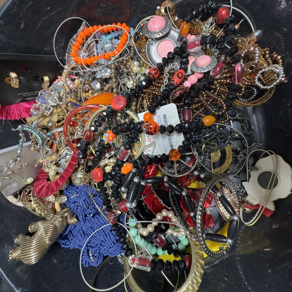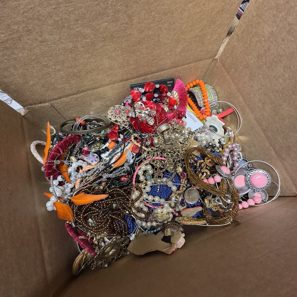 Jewelry Lot Costume Broken Tangled Wearable Mix Craft Repair Repurpose 7.6lb As Is. I have been making sure there are matching earrings and picking out the broken as best I can. So, most items in boxes are definitely wearable! This is the very items in box Some have makers mark I always add a bit extra Box A5 Definitely worth the $$