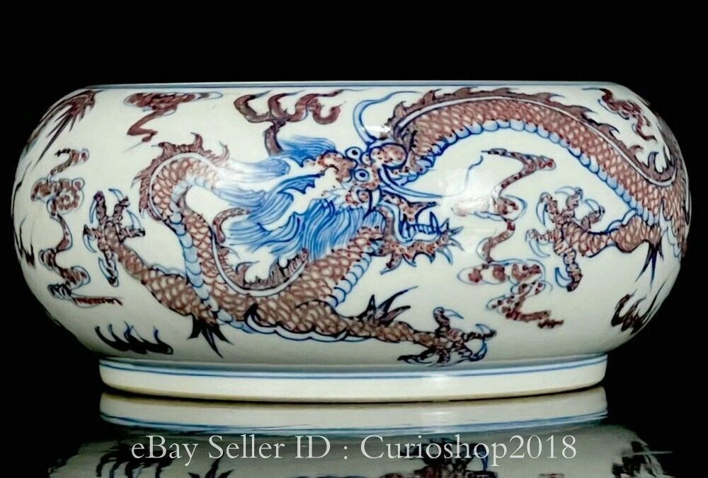 $ 204.876.2 Inch Antique Chinese Red Glaze Feng Shui Dragon Ceramic Bowl