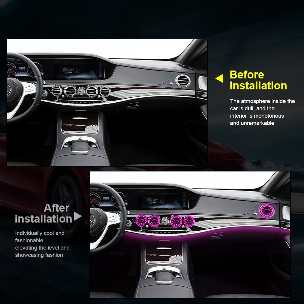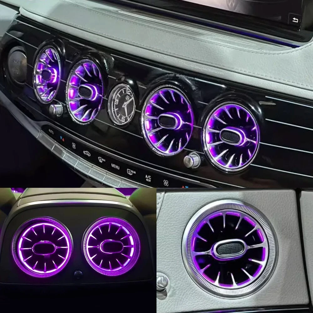 Features: 100% Brand New in Box W222 8PCS/Set 7/64 Colors NEW Version High Quality Plug and Play Interior Front and Rear Dashboard Air Vent with Ambient Light 1:1 Replacement; NO Modification Required Fitment: For Mercedes Benz S-Class W222 2017 2018 2019 2020 2021( 7/ 64 Colors ) - OEM design, fit original air vent position perfectly - Light color is synchronized with original ambient light - Light color and brightness can be controlled by original Command knob Package included: 8 PCS/Set Front and Rear Air Vents with Ambient Light NOTE: NOT Including Installation Guide or Manual. Professional installation is highly recommended .