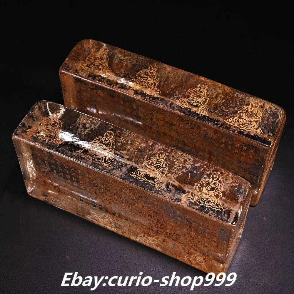 **** Welcome to our antique & Collectable Shop : Porcelain**** Description: Here is 7.8" Old Tibet Crystal Carved Totem Buddhist Scriptures Pillow Statue Pair. It is in good condition, and was created by skilled craftsmen in traditional style with fine handcrafts.This is a great piece of valuable collection, a valuable personal alter or a very good present. the handwork is very fine with incredible detailling. Don't miss out this chance to get it.Wish you good luck! . Material : Crystal Size : Heigh t 1.9 Long 7.8 B readth 3.9 (inch) Condition Perfect Condition. Perfect, with no scratches, flaws or repairs. Weight: 5.5 KG----included the weight of packing materials Shipping cost to all over the world countries in Free Honored Customers: We are selling the collectibles products and crafts in Beijing ,China since 1993 and collected them all over the world all the time . In our shop the bronze sculpture, animal, vase, urn, flowerpot,Incense Burner.Table chair sets. Militaria goods. buddha statues, Bodhisattva Statues, Buddhist Ritual Items etc is our speciality .Many of the items we sell come from our own personal collection and have been in our family for a very long time .My great-grandfather was the first in this family to start collecting art & antiques when he still lived in San Xi and Tibet around 1922 ,some of the paintings he once collected can now be seen in museums around the globe.We won't make money from t he shipping cost, if you dislike the item when you receive it,we can refund all of your money to you within thirty days. Please confidence for bidding . We recommend the combine shipping and offer you an big price discount if you order more items together ! 2024.07.03 四 号