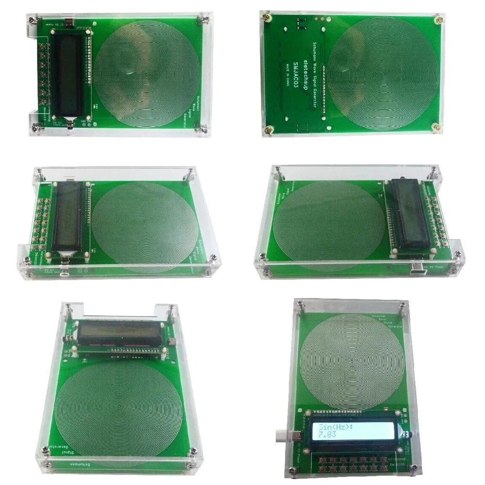 Description: Schumann Wave itself does not act directly on sound or video products to improve sound quality, but on the space environment, which can relax people's body and mind, improve the body's perception of sound andimages, improve thehealth of the human body and work efficiency, and relieve psychological pressure. This product not only can output 7.83Hz SchumannWave, but also can adjust the frequency in the range of 0.01Hz-100KHz, the digital circuit crystal oscillator frequency reference, more stable and strong anti-interference. This is a new version of eletechsup's Schumann Wave adjustable signal generator, which uses a low-temperature drift crystal oscillator and a high-precision DAC dedicated chip. It can accurately output frequency and pure sine wave. With Acrylic Shell Version : 1 Working voltage: DC 5V (DC 4-15V) 2 Working current: 9-14MA 3 Power interface: Type-c(Support TYPE-C TO TYPE-C power supply) 4 Default frequency: 7.83Hz 5 Adjustment range: 0.01Hz~100000Hz Pure Sine Wave 6 Signal voltage amplitude: 3V 7 With 3.5MM audio output 8 With acrylic shell 9 Size: 155*105*26MM(With shell) 10 Weight : 197g(With shell) No Acrylic Shell Version : 1 Working voltage: DC 5V (DC 4-15V) 2 Working current: 8-14MA 3 Power interface: Type-c(Support TYPE-C TO TYPE-C power supply) 4 Default frequency: 7.83Hz 5 Adjustment range: 0.01Hz~100000Hz Pure Sine Wave 6 Signal voltage amplitude: 3V 7 PCB Board Size: 150*100*12MM 8 Weight : 86g For more information please Google ''Schumann Resonance''. For audio-visual space - to enhance the sound field and audio-visual effects For the bedroom - to help sleep soothe the nerves, treatment of insomnia For the office - relax and improve work efficiency For the create space - to improve creative inspiration For the tea ceremony, spirituality, realization space - resting body and mind (Uses TYPE-C power supply and supports all TYPE-C power supplies. Note : Since TYPE-C cables are now widely used, no additional TYPE-C power supply cables are provided.) Q&A: Q1:How to change the output frequency? A1:Press the ''0-9'' and '.' buttons to enter the value, and press the OK button to confirm. If the input is wrong, press the SET button to re-enter. For example, press [9][.][7][1], then press [OK], you can set to 9.71Hz, the default power-on output is 9.71Hz, and the setting range is 0.01~100KHz(Note: Not all frequency points can be set) Q2:Need to save parameters even after power off? A2:Please press and hold the ''SET'' button until the LCD displays ''Data Save ON'' Q3: How to verify the output waveform? A3: Please use an oscilloscope to measure the ''GND/SIN'' port. You can see a pure sine wave. Q4: How to turn off the LCD backlight? A4:Short press the ''BACKLIGHT'' button to turn off the LCD backlight; short press the ''BACKLIGHT'' button again to turn on the LCD backlight Q5:How to turn off the output signal indication (PWR LED)? A5:Long press the ''BACKLIGHT'' button to turn off the output signal indication; long press the ''BACKLIGHT'' button again to turn on the output signal indication. Q6:LCD does not display correctly after power on? A6:Please press the RES button briefly and power on again