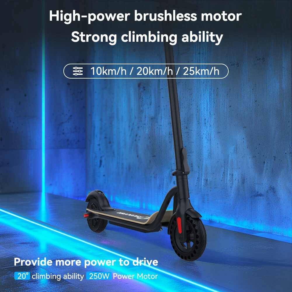 Features: LONG RANGE BATTERY LIFE Powerful 250W motor and 7.8 Ah/36V lithium battery pack that supports a speed of up to 15 Mph with a range up to 13 Miles. Updated large-capacity battery life, designed for commuters and longer distances. 8.0" HONEYCOMB & SOLID TIRES - Shock-absorbing rubber tires offer a smooth ride even over bumpy surfaces. PORTABLE FOLDING DESIGN Electric scooter can be folded easily in 3 seconds with quick folding latch for easy carrying and storage. BATTERY INDICATOR AND LIGHTS Battery indicator keeps to track battery life. Ultra bright LED headlight and taillight. Fast recharging about 5 hours. GEAR SHIFT SETTING 1st gear for a 7 Mph comfortable ride or 3rd gear to get the 15 Mph fast experience. Extremely fun to ride and end boring commutes. Specification: Brand: Megawheels Model: S10 Dimension: Unfolding 105 x 43 x 118 cm; Folding: 105 x 43 x 48 cm Net Weight: 11.9kg Color: Black Frame Material: Aluminium Tires: 8.0" Honeycomb Front Tire & Solid Rear Tire Max Load: 100kg Max speed: 25KM/h Speed level: Gear 1--Max 10km/h ; Gear 2--Max 20km/h; Gear 3--Max 25km/h Mileage: 17-22km Grade Ability: 20 degree slope Working Temperature: -15°C-50°C Storage Temperature: -20°C-25°C Mode Type of Motor: Brushless hub motor Battery Type: High quality lithium battery Battery Capacitiy: 7.8 Ah Battery Voltage: 36V Charger Input Voltage: 100V-240V Charger Frequent: 50Hz/60Hz Charging time: 5 hours Package Contents: 1 * Folding Electric Scooter 1 * Battery Charger 1 * User's Manual Riding Skills: -Put your foot in the front of the scooter and the other foot on the floor before riding. -Make sure that the riding route is smooth. -Slide forward with the food standing on the floor before starting (like riding the scooter without power). -Immediately press the acceleration button and lean forward to avoid falling over backward due to inertia, so that the electric scooter will enter the working status. -Avoid pressing the handle with your body in the acceleration and deceleration process. Put one foot ahead and the other behind (like on the sliding plate/surfboard, put one foot ahead and the other behind by 70-90 for better comfort). -Turning – The turning principle of the electric scooter is the same with that of surfboard/sliding plate/skis. The handle shall be balanced with the body. Observe and make sure that turning is safe before turning. NOTE:The appearance of the product you receive may vary slightly from the image shown due to differing production batches! Tips: Before riding the scooter, please put one foot on the scooter deck and the other foot on floor and push the scooter forward by kicking the floor for some distance, in this way, the scooter will get some impulse to run forward. Note: This products have been certified under UL2272 safety standards.