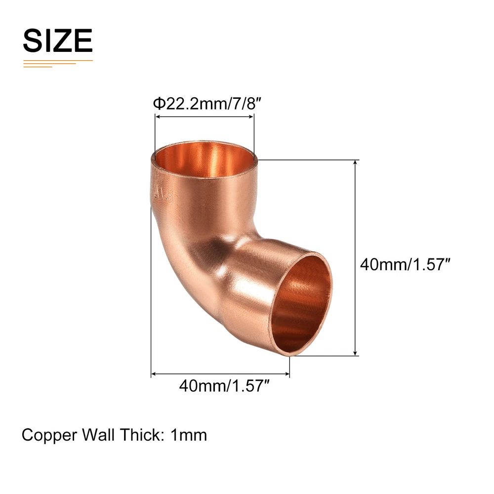 Document Product Details: Color: Copper ToneMaterial: CopperCopper Wall Thick: 1mmCopper Fitting Diameter / Inner Diameter: 22.2mm/ (7/8-inch)Total Size: 40 x 40 x 25mm / 1.57" x 1.57" x 0.98" (L x W x H)Package Content: 1 x Elbow Pipe FittingMaterial - Constructed with copper material, it is wear-resistant, anti-corrosion, and rust-proof, which has good toughness and high impact strength. With a high-gloss surface, no deformation or fading.Feature- This 90-degree pipe fitting is specially designed to build a connection between pipes to transform the direction of water flow. Can be for a range of different pipe connections.Application - Elbow pipe fitting for use in water pipe systems, water heater applications, marine repair, remodeling a home, or plumbing a system, DIY plumbing, and more. Suitable for use indoors or outdoors.Install Steps - Just insert the pipe deep into the elbow fitting and lock the pipes, without any soldering or glue. And they can be disassembled and assembled. 7/8"(Inner Dia) 90 Degree Copper Pipe Fitting Copper Elbow Adapter Copper Tone Product Details: Color: Copper Tone Material: Copper Copper Wall Thick: 1mm Copper Fitting Diameter / Inner Diameter: 22.2mm/ (7/8-inch) Total Size: 40 x 40 x 25mm / 1.57" x 1.57" x 0.98" (L x W x H) Package Content: 1 x Elbow Pipe Fitting Material - Constructed with copper material, it is wear-resistant, anti-corrosion, and rust-proof, which has good toughness and high impact strength. With a high-gloss surface, no deformation or fading. Feature- This 90-degree pipe fitting is specially designed to build a connection between pipes to transform the direction of water flow. Can be for a range of different pipe connections. Application - Elbow pipe fitting for use in water pipe systems, water heater applications, marine repair, remodeling a home, or plumbing a system, DIY plumbing, and more. Suitable for use indoors or outdoors. Install Steps - Just insert the pipe deep into the elbow fitting and lock the pipes, without any soldering or glue. And they can be disassembled and assembled. Hot Item Payment 1.We accept eBay payment . 2.Payment must be received within 7 business days of auction closing. Shipping 1.We ship to your eBay or Paypal address. Please make sure your eBay and Paypal address is correct before you pay. 2.Items will be shipped within 1-3 business day when we received payment. 3.Delivery time depends on destination and other factors. Description Policy 7/8"(Inner Dia) 90 Degree Copper Pipe Fitting Copper Elbow Adapter Copper Tone Product Details: Color: Copper Tone Material: Copper Copper Wall Thick: 1mm Copper Fitting Diameter / Inner Diameter: 22.2mm/ (7/8-inch) Total Size: 40 x 40 x 25mm / 1.57" x 1.57" x 0.98" (L x W x H) Package Content: 1 x Elbow Pipe Fitting Material - Constructed with copper material, it is wear-resistant, anti-corrosion, and rust-proof, which has good toughness and high impact strength. With a high-gloss surface, no deformation or fading. Feature- This 90-degree pipe fitting is specially designed to build a connection between pipes to transform the direction of water flow. Can be for a range of different pipe connections. Application - Elbow pipe fitting for use in water pipe systems, water heater applications, marine repair, remodeling a home, or plumbing a system, DIY plumbing, and more. Suitable for use indoors or outdoors. Install Steps - Just insert the pipe deep into the elbow fitting and lock the pipes, without any soldering or glue. And they can be disassembled and assembled. Hot Item Payment 1.We accept eBay payment . 2.Payment must be received within 7 business days of auction closing. Shipping 1.We ship to your eBay or Paypal address. Please make sure your eBay and Paypal address is correct before you pay. 2.Items will be shipped within 1-3 business day when we received payment. 3.Delivery time depends on destination and other factors.