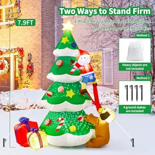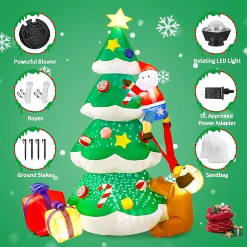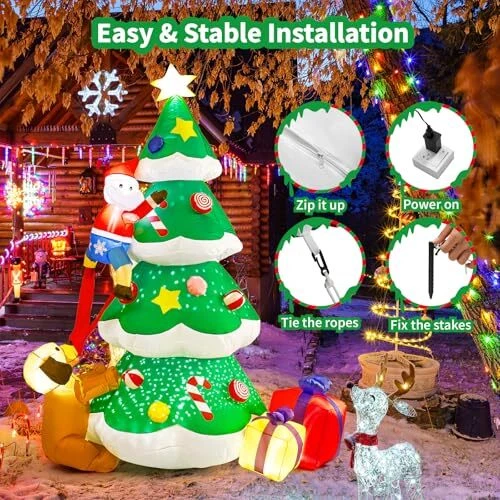 30 Days Return Policy Fast Delivery Trusted seller 7.9 FT Inflatable Christmas Decorations Outdoor, Built-in Rotated Snowflake Light and LEDs, Blow Up Yard Christmas Tree with Santa Claus Dog Gift Boxes Inflatables for Indoor Party Xmas Decor Product Description Giant Christmas Inflatable Outdoor Decoration: 's 7.9FT inflatables Christmas tree with built-in 1 rotated snowflake light and 5 LED lights, The super bright LED lights will illuminate your yard and easily attract the guests, friends, and Children's attention so that can be the most attractive & Christmas decorations outdoor in your neighbors. Stronger Inflatable Fan and Easy to Use: Christmas inflatable tree is equipped with an upgraded powerful inflatable fan, the inflatable Christmas yard decorations can be inflated quickly in two minutes, it is efficient and fast. Don't forget to zip up the bottom zipper before inflated. It also comes with 2 ropes and 4 stakes to ensure it stays securely in place. The charging plug with UL certified adapter is very safe to use. Upgraded High-density thickened Polyester and Excellent Suture Technique: The blow up Christmas tree is made of durable and thickened polyester fiber, equipped with high-quality zipper that are waterproof, durable, not easy to fade, and not easy to be poked. Updated sewing technology ensures that product is sewn tightly and neatly. Ensuring our outdoor Christmas decorations yard can be used in rainy and snowy days. The deflated Christmas tree is easy to store and can save space very well. Perfect Christmas Decorations: Santa Claus was chased by a puppy dog, and then he climbed up a 7.9ft tall Christmas inflatable tree. The dog under the tree pulled off Santa Claus's pants. Comical Christmas inflatables outdoor decorations are suitable for yard, garden, family, party, stage, Christmas Eve activities. The sparkling star on the top of the tree and the colorful 3D candy decorations on the tree create a fun and unforgettable scene for your home or lawn during the holiday season. Christmas Blow Up Yard Decorations: 's giant Christmas inflatable decorations can be applied to outdoor, perfect for Christmas holiday party yard decorations. The package includes 2 sandbags, 4 ground stakes and 2 ropes. If you receive a damaged product or have any other dissatisfaction, contact us. And we will do our best to offer a satisfactory solution for you within 24 hours. Shipping Returns Payment Shipping Shipping is FREE to all addresses other than APO/PO boxes in the lower 48 states. All our stock ships from US-based warehouses. Shipped via USPS or UPS (depending on location and package weight) Unless stated otherwise, all orders will ship within 24-72 hours of your payment being processed. Check our feedback to see the great reviews of FAST shipping we offer. Returns As our valued customer, we will do our best to make sure the product you receive arrives to you on time and as expected. If you are not satisfied with your purchase, please contact us within 30 days of receiving your order to process a return. Payment We currently accept payment via eBay managed payments only. Once payment is cleared, we will dispatch your shipment within 1-3 business days. Please refer to the "Shipping" tab for more information regarding shipping speed to your destination.
