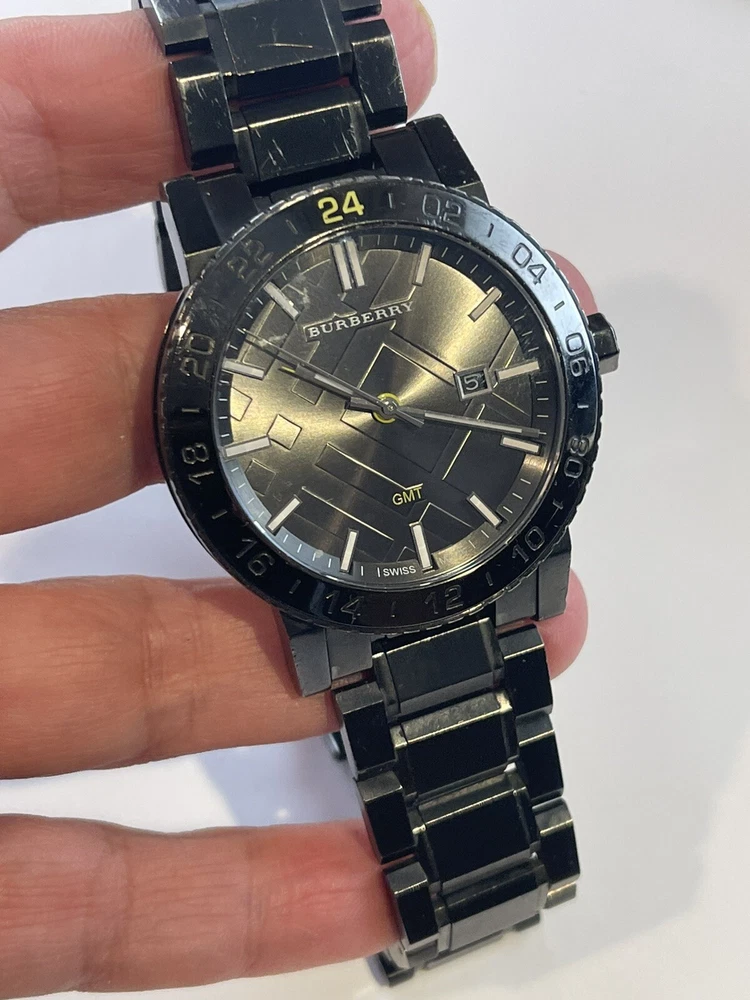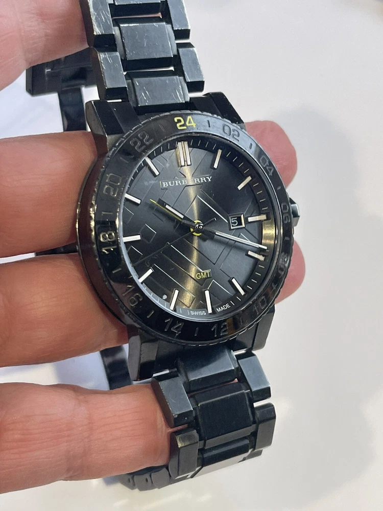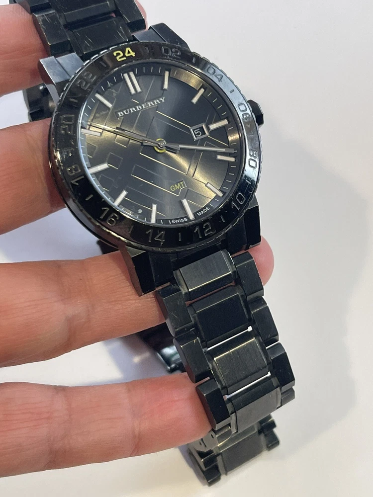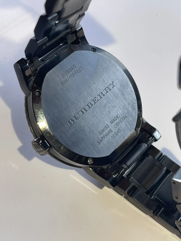 $795 Burberry Black Dial Stainless Steel Quartz Men's Watch BU9340. Working condition , please take a look at the pictures for condition, watch will fit up to 7 inch wrist