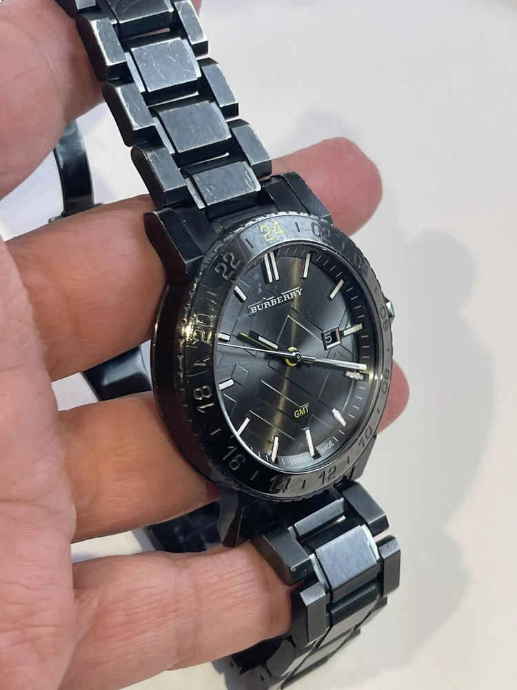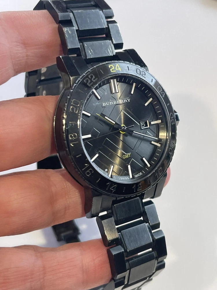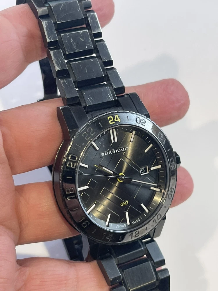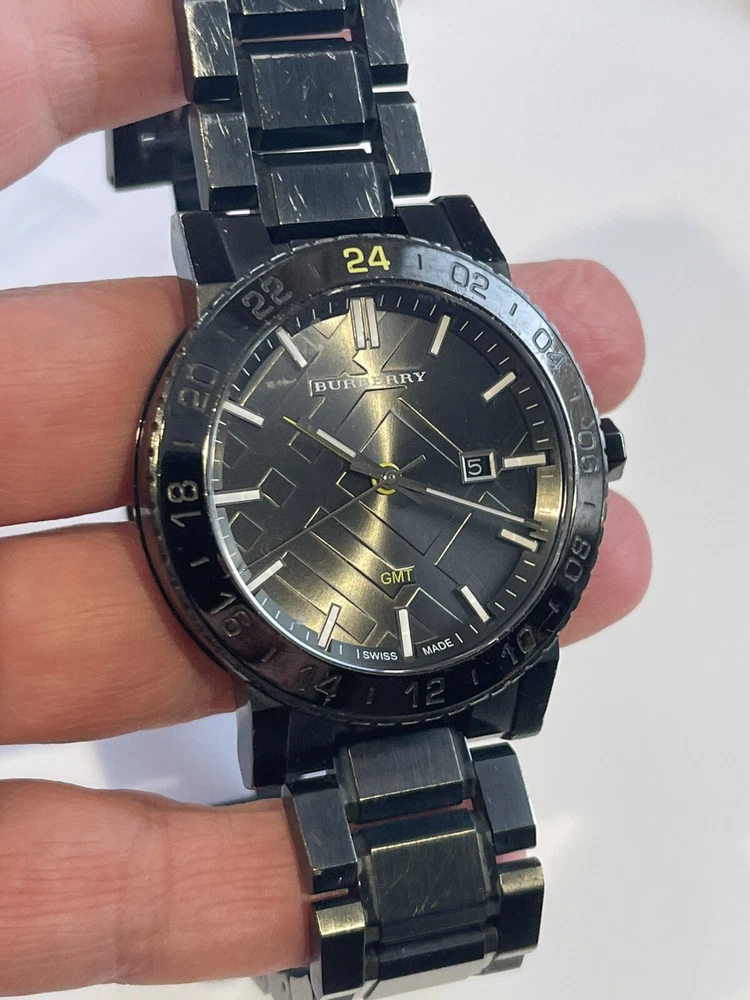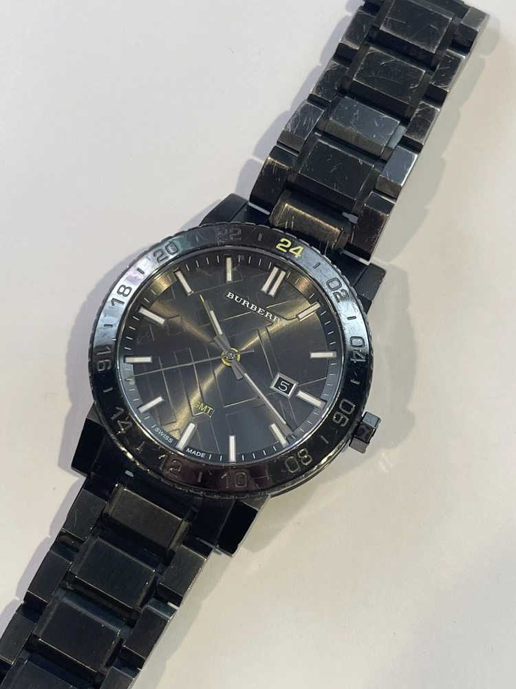 $795 Burberry Black Dial Stainless Steel Quartz Men's Watch BU9340. Working condition , please take a look at the pictures for condition, watch will fit up to 7 inch wrist