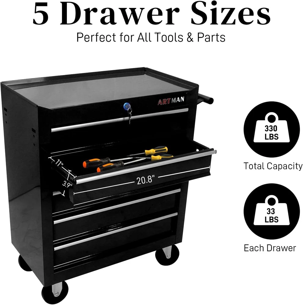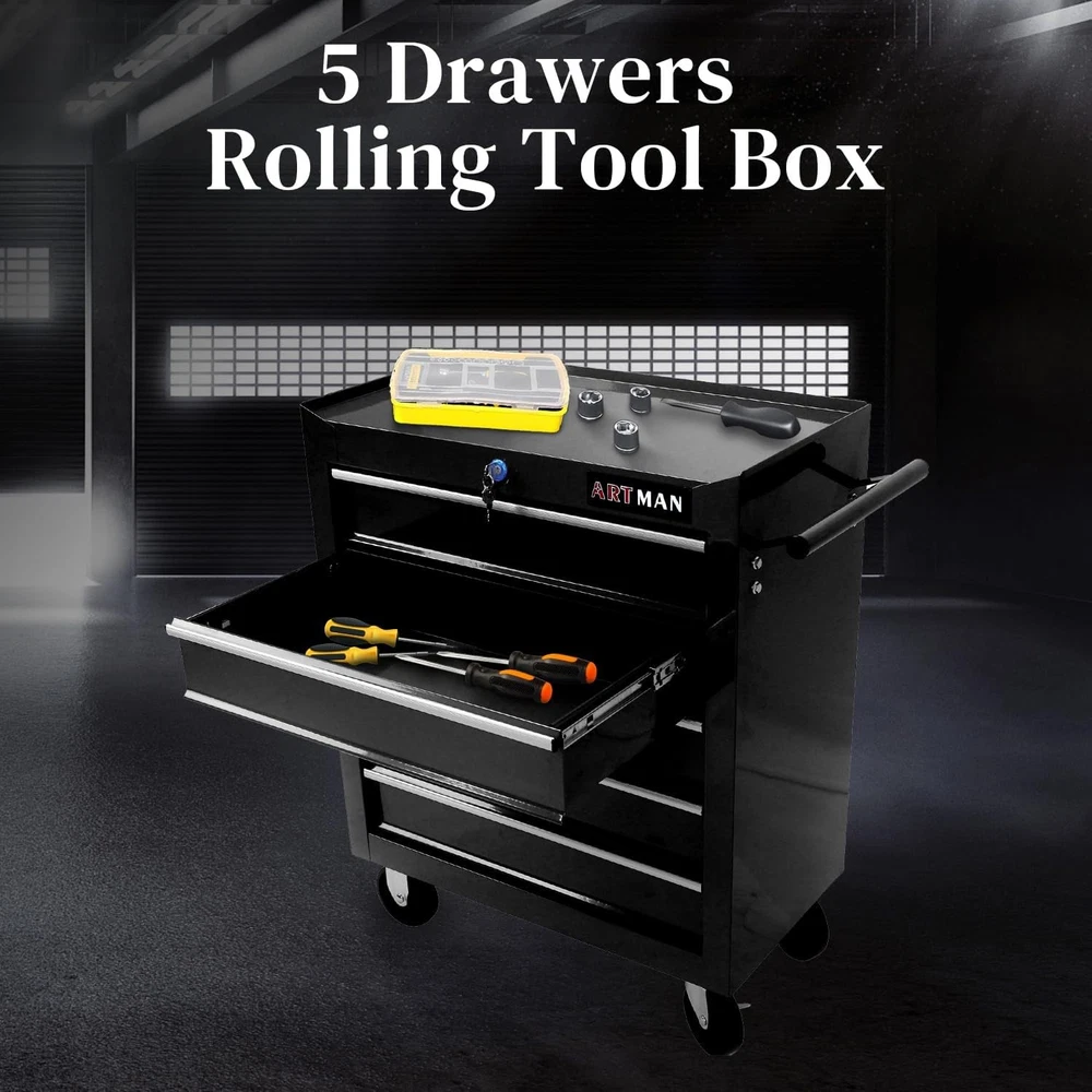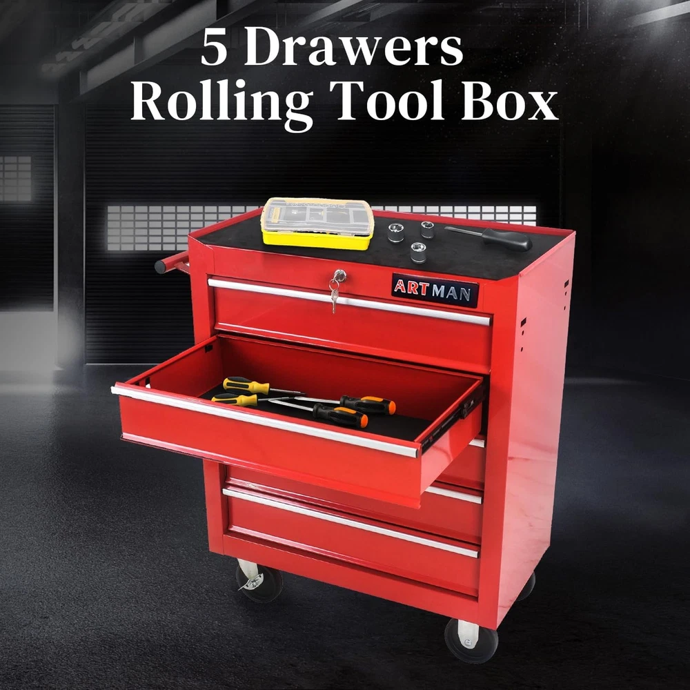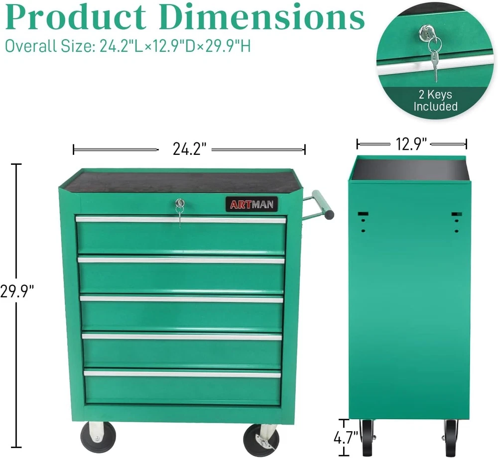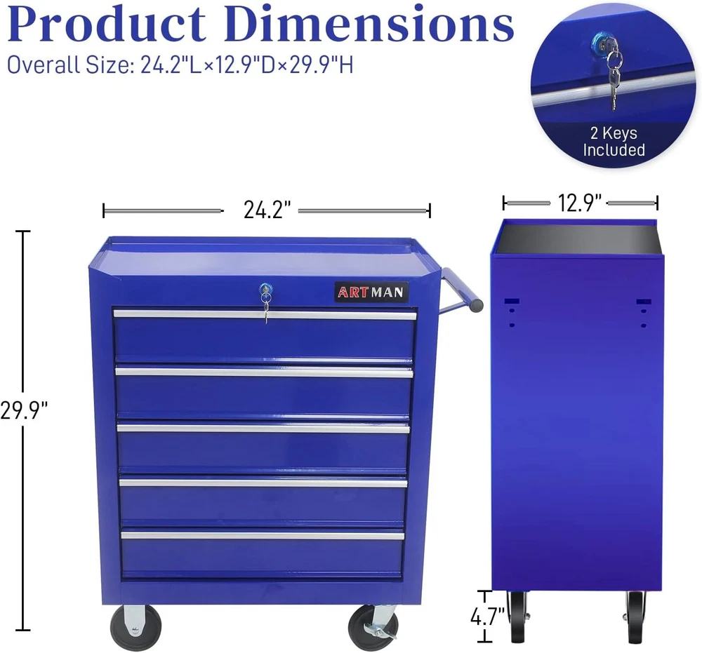 Features: 【100% Brand New Quality】 【Large Capacity】 - Equipped with 5 drawers of 10.8"D×20.0"W×3.9"H, the rolling tool chest creates more ample storage space for all your tools. And the flat top also provides extra space for your frequently used tools and parts. 【Durable Material】 - Our tool cart is carefully polished and powder-coated to ensure wear and rust resistance and will not chip paint. Made of high-quality steel, the structure is strong and stable, which greatly improves the durability. The drawers use ball bearings for smoother opening and closing. 【Multi-Purpose】 - 1 tubular handle, 4 heavy-duty wheels, 2 of which are with brakes, improve the mobility so that the tool cart can be easily moved to any position you want. Our rolling tool box is suitable for garage, warehouse, workshop, repair shop and other places, widely used in gardening and auto maintenance. 【Storage Organizer】- Large storage space, easier mobility features, multiple color options, comes with lock to protect the tools, with excellent functionality and appearance, the tool cabinet will be a good choice for storage in the workshop or at home! 【Easy to Assemble】 - Pre-drilled mounting holes allow for easy assembly in a short time. If you have any questions about the item, please feel free to contact us, we will provide you with 24/7 help. 【Good After-sales Service】 If the damage occurred in transit or the product is broken, please take a photo and contact us, we will solve all the problems for you. Have a nice life! Note: Product colors may vary slightly depending on the phone screen. It is just a very small difference. Size: 12.9"D x 24.2"W x 29.9"H Specification: 5 Drawers Rolling Tool Chest with wheels Our rolling tool box is made of precision cut steel for durable construction and great mobility. The surface is processed by anti-rust paint coating, which is more wear-resistant and easy to clean! With stylish appearance and sufficient capacity, the tool chest can be used in garages, warehouses, workshops, repair shops and other places, which is the best choice for storing all your tools! Just enjoy this tool cart with wheels to customize your own tool organization system and get ready to work! Main Specifications Package: 1* Rolling Tool Chest with 5-Drawer Tool Box 1* Instruction Books 🥇 Please check if your address is correct, we cannot change the address once sent. ●Delivery details 🚚 We have 3 warehouses in the United States: LA warehouse, NY warehouse, CA warehouse; when the warehouse near you is out of stock, we will use the warehouse far away from you to deliver the goods. 🚚Shipping from the United States, door-to-door delivery by UPS or FedEx.1-3 business days with tracking number provided. 3-12 days delivery. It depends on logistics and shipping. Sometimes there may be delays. 🚚We cannot ship to PO Box/Hawaii/Alaska/Puerto Rico/APO ●Return Policy ❤️ 1. We generally do not accept returns! ❤️ 2. If there is a problem with the product quality or it is damaged during transportation, you can contact us by email. I can replace it with a new one for you free of charge. Please do not make a return request lightly. Thanks. ❤️ 3. You can easily contact us by email and we will reply you within 24 hours, except holidays. ❤️ 4. We are more than happy to answer any questions you may have, please contact us via email. ●About Fundiy 👍 1. We hope to be a 100% satisfied seller. 👍 2. We provide high-quality after-sales service, you can contact me at any time. 👍 3. We have extremely fast response to deal with your problems. For example, if the product has quality problems or the product is damaged during transportation, please contact us 👍 4. Please give me ⭐⭐⭐⭐⭐feedback! Thank you!