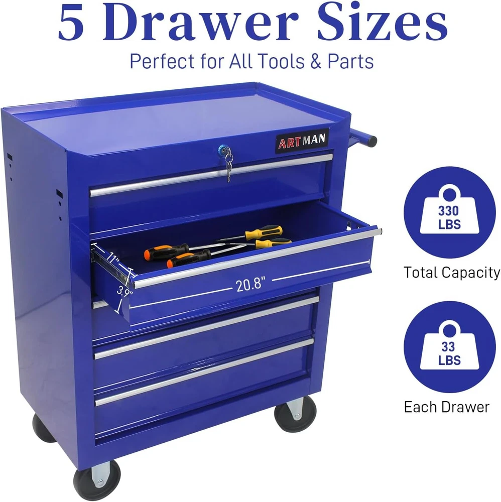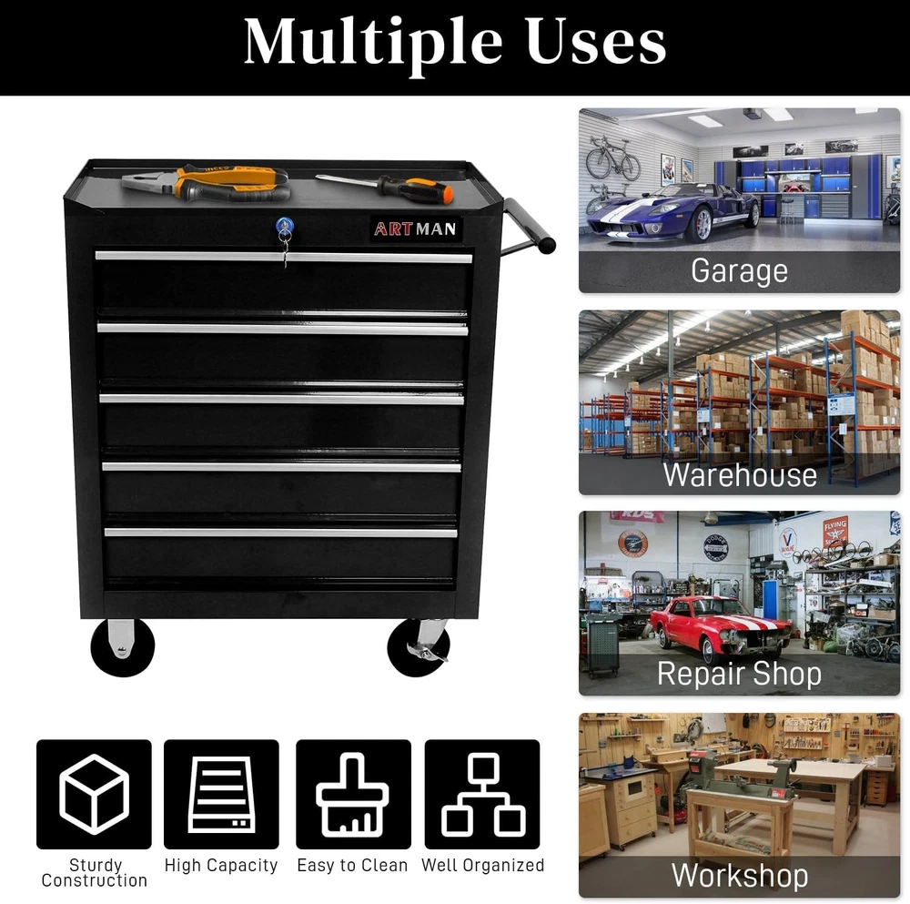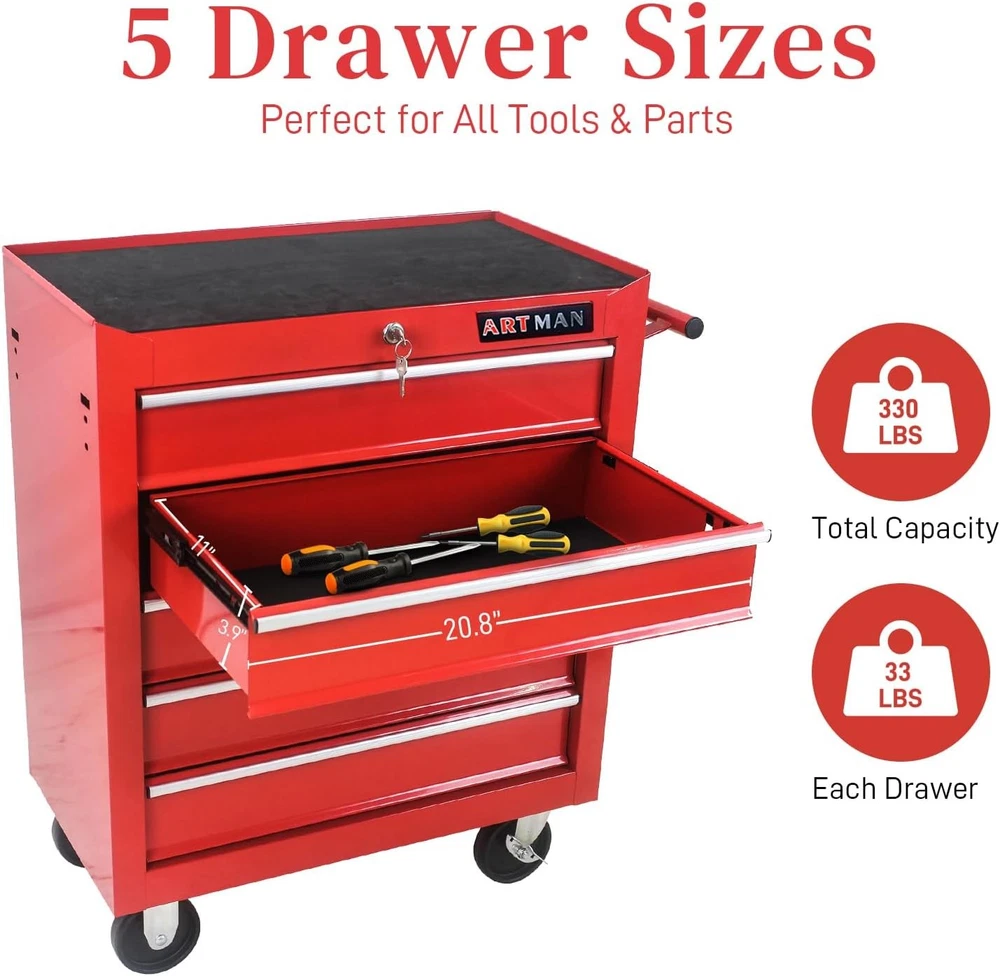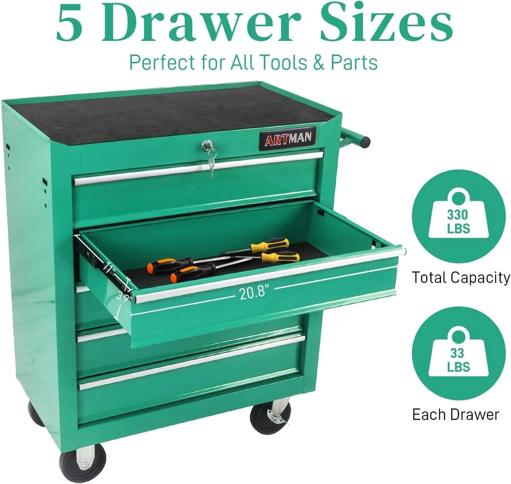 Features: 【100% Brand New Quality】 【Large Capacity】 - Equipped with 5 drawers of 10.8"D×20.0"W×3.9"H, the rolling tool chest creates more ample storage space for all your tools. And the flat top also provides extra space for your frequently used tools and parts. 【Durable Material】 - Our tool cart is carefully polished and powder-coated to ensure wear and rust resistance and will not chip paint. Made of high-quality steel, the structure is strong and stable, which greatly improves the durability. The drawers use ball bearings for smoother opening and closing. 【Multi-Purpose】 - 1 tubular handle, 4 heavy-duty wheels, 2 of which are with brakes, improve the mobility so that the tool cart can be easily moved to any position you want. Our rolling tool box is suitable for garage, warehouse, workshop, repair shop and other places, widely used in gardening and auto maintenance. 【Storage Organizer】- Large storage space, easier mobility features, multiple color options, comes with lock to protect the tools, with excellent functionality and appearance, the tool cabinet will be a good choice for storage in the workshop or at home! 【Easy to Assemble】 - Pre-drilled mounting holes allow for easy assembly in a short time. If you have any questions about the item, please feel free to contact us, we will provide you with 24/7 help. 【Good After-sales Service】 If the damage occurred in transit or the product is broken, please take a photo and contact us, we will solve all the problems for you. Have a nice life! Note: Product colors may vary slightly depending on the phone screen. It is just a very small difference. Size: 12.9"D x 24.2"W x 29.9"H Specification: 5 Drawers Rolling Tool Chest with wheels Our rolling tool box is made of precision cut steel for durable construction and great mobility. The surface is processed by anti-rust paint coating, which is more wear-resistant and easy to clean! With stylish appearance and sufficient capacity, the tool chest can be used in garages, warehouses, workshops, repair shops and other places, which is the best choice for storing all your tools! Just enjoy this tool cart with wheels to customize your own tool organization system and get ready to work! Main Specifications Package: 1* Rolling Tool Chest with 5-Drawer Tool Box 1* Instruction Books 🥇 Please check if your address is correct, we cannot change the address once sent. ●Delivery details 🚚 We have 3 warehouses in the United States: LA warehouse, NY warehouse, CA warehouse; when the warehouse near you is out of stock, we will use the warehouse far away from you to deliver the goods. 🚚Shipping from the United States, door-to-door delivery by UPS or FedEx.1-3 business days with tracking number provided. 3-12 days delivery. It depends on logistics and shipping. Sometimes there may be delays. 🚚We cannot ship to PO Box/Hawaii/Alaska/Puerto Rico/APO ●Return Policy ❤️ 1. We generally do not accept returns! ❤️ 2. If there is a problem with the product quality or it is damaged during transportation, you can contact us by email. I can replace it with a new one for you free of charge. Please do not make a return request lightly. Thanks. ❤️ 3. You can easily contact us by email and we will reply you within 24 hours, except holidays. ❤️ 4. We are more than happy to answer any questions you may have, please contact us via email. ●About Fundiy 👍 1. We hope to be a 100% satisfied seller. 👍 2. We provide high-quality after-sales service, you can contact me at any time. 👍 3. We have extremely fast response to deal with your problems. For example, if the product has quality problems or the product is damaged during transportation, please contact us 👍 4. Please give me ⭐⭐⭐⭐⭐feedback! Thank you!