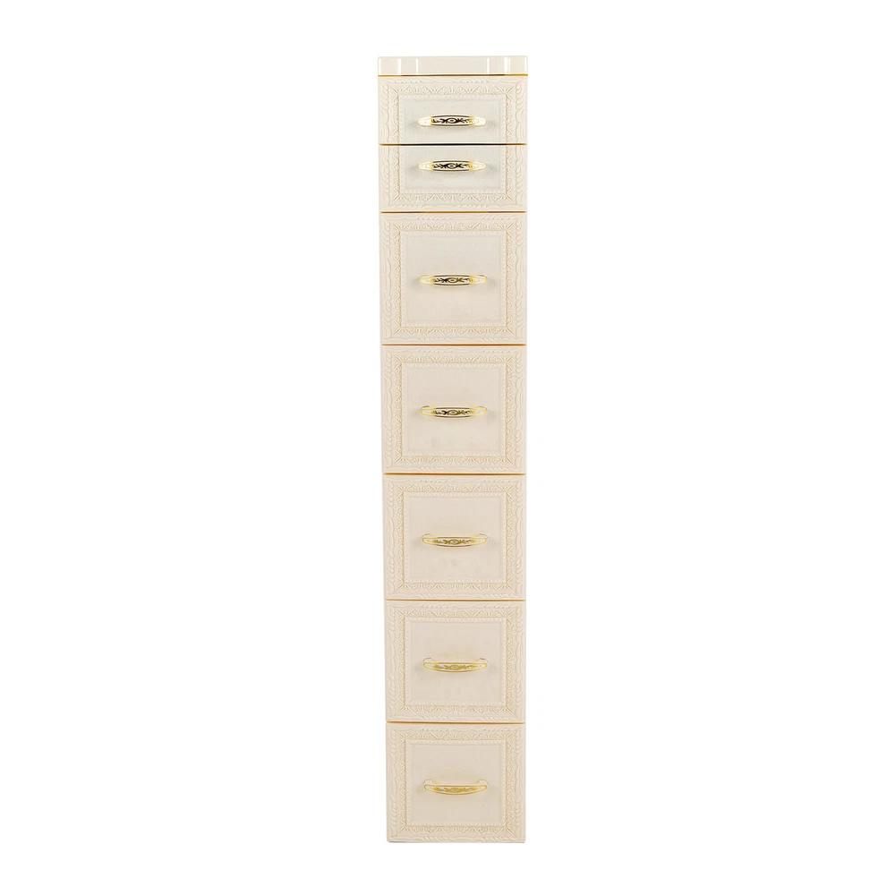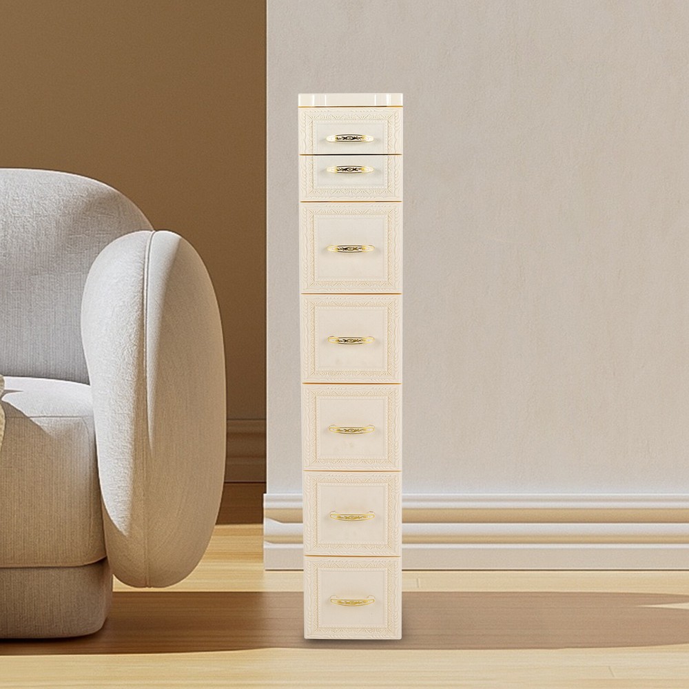 This floor cabinet is a game-changer for small spaces! The seven drawers provide plenty of storage, and the sleek milky-white design fits perfectly in my bathroom. Easy to assemble, sturdy enough for daily use, and the wheels make it super convenient to move around. Love how it keeps everything tidy without taking up much room—highly recommend for anyone needing extra organization!