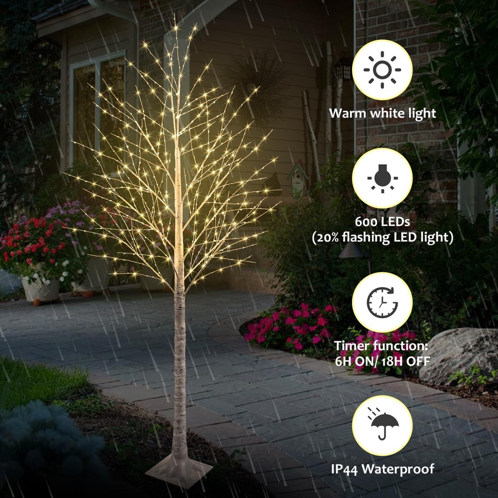 7FT 600LED Lighted Birch Tree Including Twinkle Lights, Birch Tree with Timer...