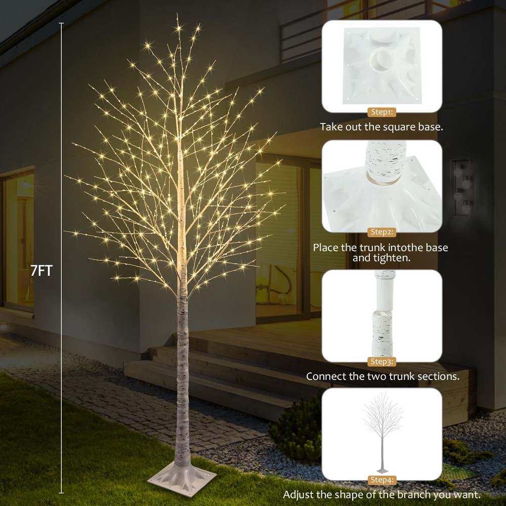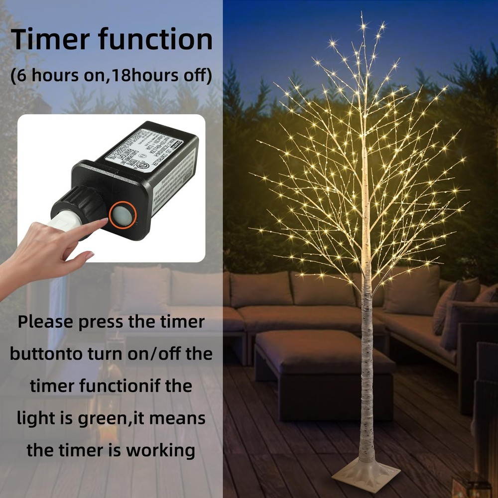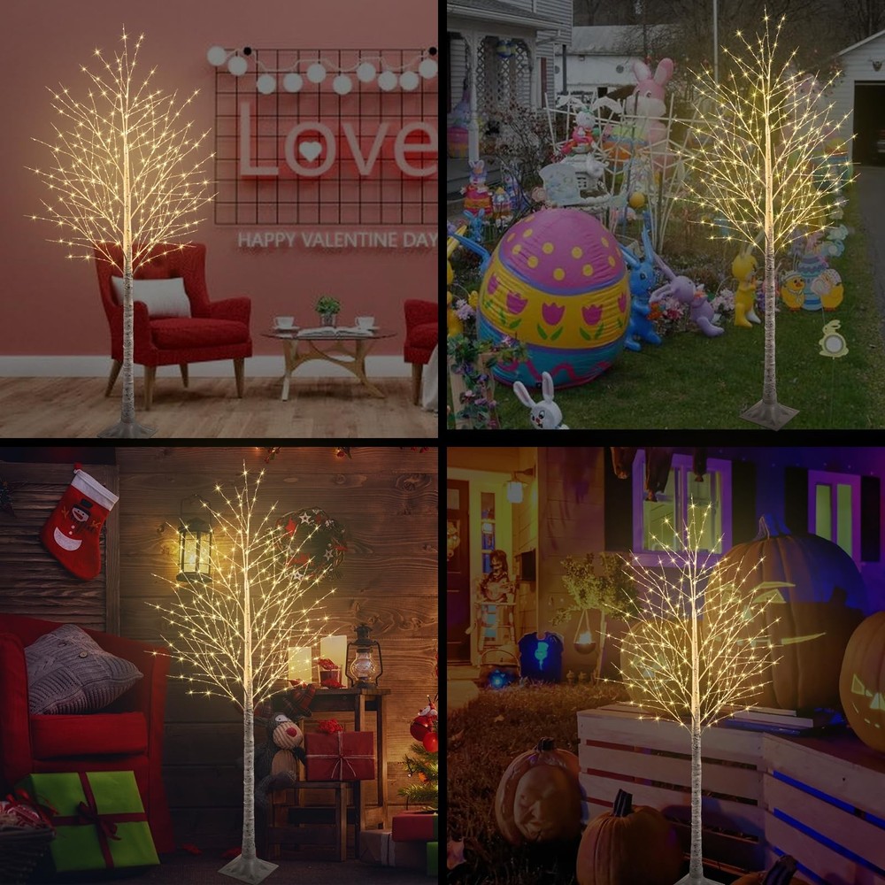 lighted trees for decoration inside tree lights indoor lighted tree tree light light up tree white tree light up trees decor indoor birch tree with lights tree branch lights tree tree branch light tree light trees for decoration indoor lighted trees birch tree indoor tree light lighted tree branches 【600 LIGHTS】: Lighted tree for decoration inside including 120 twinkle lights, with flashing function. The square base is more stable. 【DIY BRANCHES】: Our Lighted tree has more branches, you can adjust shape as you want, the dense branches make your tree unique and suitable for various occasions or holiday decor, such as St. Patrick's Day, Easter, Christmas etc. you can hang small ornaments on the barch. 【TIMER FUNCTION】: 6 hours on, 18 hours off. Press the button on the transform, the green light comes on,indicating that the timer function is on. Press this button again, the green light goes out and the timer turns off. Save power. 【EASY TO INSTALL】: The White Birch Tree is easy to assemble without any tools. Simply connect the trunk and base of the birch tree together to a lighted tree. 【INDOOR AND OUTDOOR LIGHTED TREE】: IP44 Waterproof light tree with 4 ground pile for outdoor use, 16.4FT extension cable is convenient to use outdoor suitable for Home, Patio, Yard, Garden, Porch, halloween decorations, halloween Party decorations, christmas decorations, Appointment, Valentine's Day, Easter and Various Holidays.
