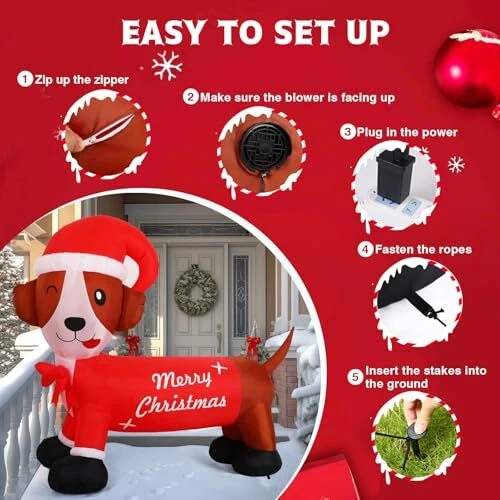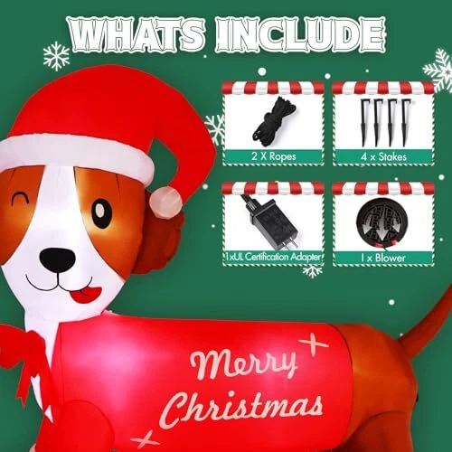 30 Days Return Policy Fast Delivery Trusted seller 7FT Christmas Inflatable Dog Outdoor Decorations with LED Lights, Lighted Blow Up Lawn Yard Garden Clearance for Family Indoor Xmas Holiday Party Decor Product Description ?【Perfect Size & Accessories】7 Feet wide christmas inflatable dog with led lights. Including a blower, 4 stakes, 2 ropes, 3m long power cord, instruction manual and a storage box. Perfect for decorating christmas, party, yard, balcony, garden, pergola, indoor and outdooor places. ?【Premium Fan for inflating Quickly】It can fully inflate in one minute as long as plug in. (Please check whether the fan is blocked if inflation is slow.) ?【Superior Airtight and Water-proof Material】The christmas inflatable outdoor decoration is made of durable Polyester, airtight excellently for full inflation and not easy to be pierced by sharp and hard things. The excellent stitching improves the durability of the Thanksgiving inflatable decorations to ensure years of usage. Soft, light and firm, wear-resistant. ?【Happy Christmas】 When the super bright led lights are lighted up, our inflatable christmas dog Decorations look eye-catching and cool. Decorate your house with our huge and adorable dog blow up yard decorations, a cute appearance and large body will attract the attention of children, neighbors or passersby. ?【Best Wishes】The power cord and rope are long enough, so you can put the item anyw you want, without any restrictions and any worries. The christmas inflatable will be a perfect and safe gift for your children or friends. ?【Customer Satisfactions】 Providing a satisfaction experience is our main priority to our customers. Please feel free to message us firstly through “contact sellers” if items can't meet your expectations or have any problem, we will help you solve it within 24hours. Then celebrations start at our unique lighted christmas inflatable dog decorations! Shipping Returns Payment Shipping Shipping is FREE to all addresses other than APO/PO boxes in the lower 48 states. All our stock ships from US-based warehouses. Shipped via USPS or UPS (depending on location and package weight) Unless stated otherwise, all orders will ship within 24-72 hours of your payment being processed. Check our feedback to see the great reviews of FAST shipping we offer. Returns As our valued customer, we will do our best to make sure the product you receive arrives to you on time and as expected. If you are not satisfied with your purchase, please contact us within 30 days of receiving your order to process a return. Payment We currently accept payment via eBay managed payments only. Once payment is cleared, we will dispatch your shipment within 1-3 business days. Please refer to the "Shipping" tab for more information regarding shipping speed to your destination.