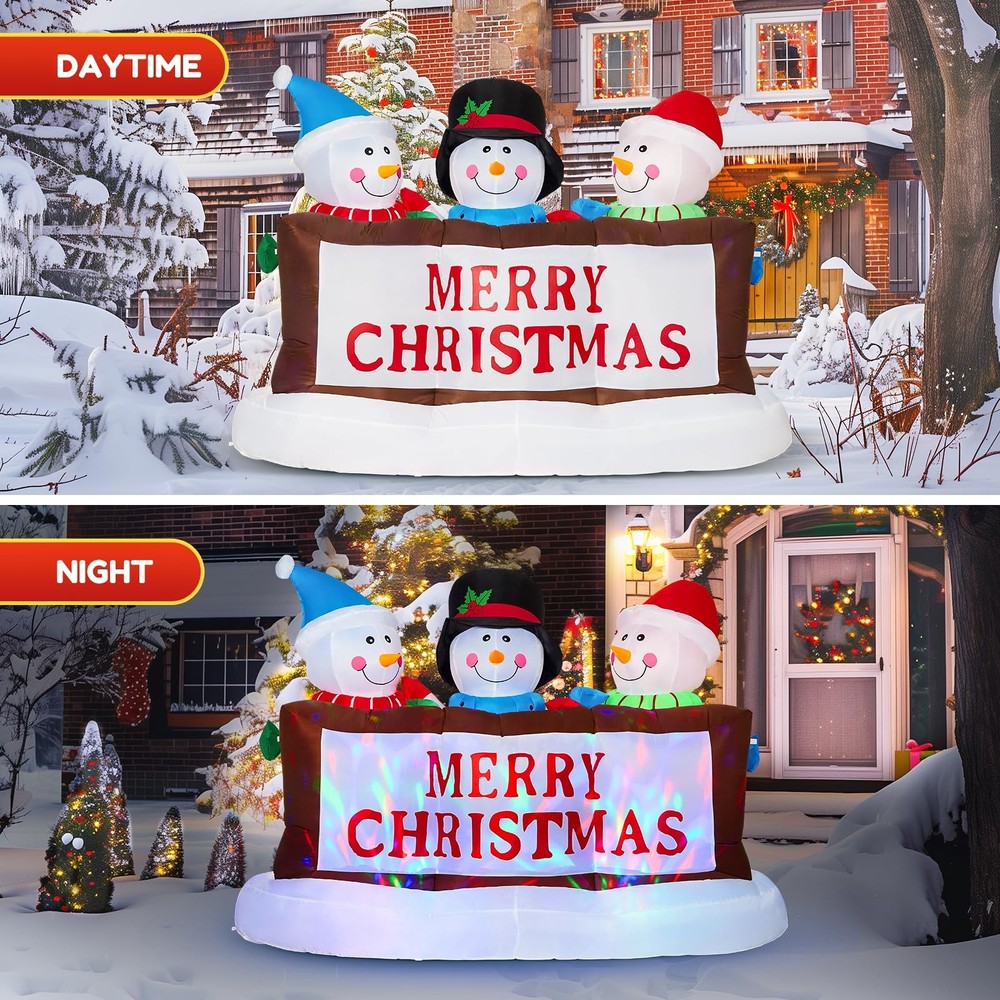 ❄️Easy and Safe to Use❄️ Equipped with a high-quality blower that lasts up to 5000 hours, inflates fast and the fan runs quietly. Simply plug in the power, blow up snowman family will automatically light up built-in LED lights and complete the inflation within 3 minutes. Don’t worry about storage, the bottom of each snowman has a zipper. Unplug the power, blowup snowman can also deflate easily. When deflated, fold and store it in good condition to wait for the next holiday decor use! ⛄️Fantastic Christmas Decorations - This pretty 7-foot tall Christmas inflatable snowman wears a loving adorable top hat and with sweet warm smile, just like welcoming guests. It will definitely attract their attention and delight them when your kids or your guests come at the door or garden. Perfect for winter Christmas outdoor yard decorations, Christmas event decoration, Holiday blow-ups, Christmas Eve night decor. ⛄️Excellent Craftsmanship - giant inflatable snowman is made of IP44 waterproof 210T high-density thick polyester material, which is very wrinkle-resistant and not easy to be pierced by sharp and hard things, The excellent stitching process can effectively prevent tears and rips, which improves the durability of the inflatable decoration. With a 9.8 foot power cord, you can flexibly inflate the inflatable snowman near your house, or add an extension cord to decorate anywhere in your yard ⛄️Stable and Secure - This cute inflatable snowman come with 8 stakes, 4 ropes and built-in 3 Water bag, which will keep this cute snowman firmly fixed to the ground. What’s more, in order to enhance the decoration effect of the Christmas snowman, the built-in water bag allow it to stand without support when there is no wind. It's a great gift for your children and friends! ⛄️Built-in Super Bright Lights - This friendly blow up snowman built-in bright RGB ball light, which makes it look sparkly and very beautiful even in dark night. It will definitely light up your yard or lawn, bring you surprises and joy, make your home full of festive mood. 7FT is big enough to make your yard stand out, it will be the coolest decoration in the whole neighborhood! ⛄️Easy & Safe to Use - Equipped with a powerful blower, inflates fast and doesn't make much noise. Just plugging into the power, Christmas snowman self-inflates within 1 minute. Unplug the power, it can also deflate easily. After deflated, it's easy to storage and save space, wait for next Christmas and winter to use it.