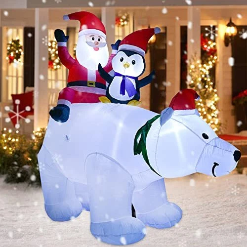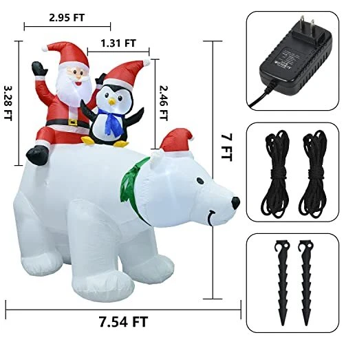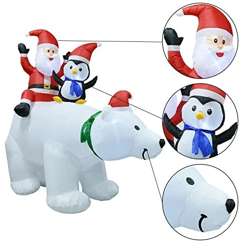 7FT Inflatable Polar Bear Christmas Santa and Penguin, Led Lights Xmas