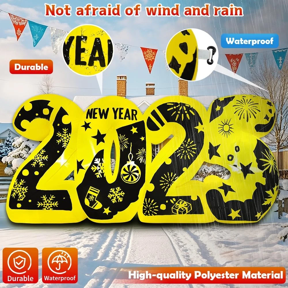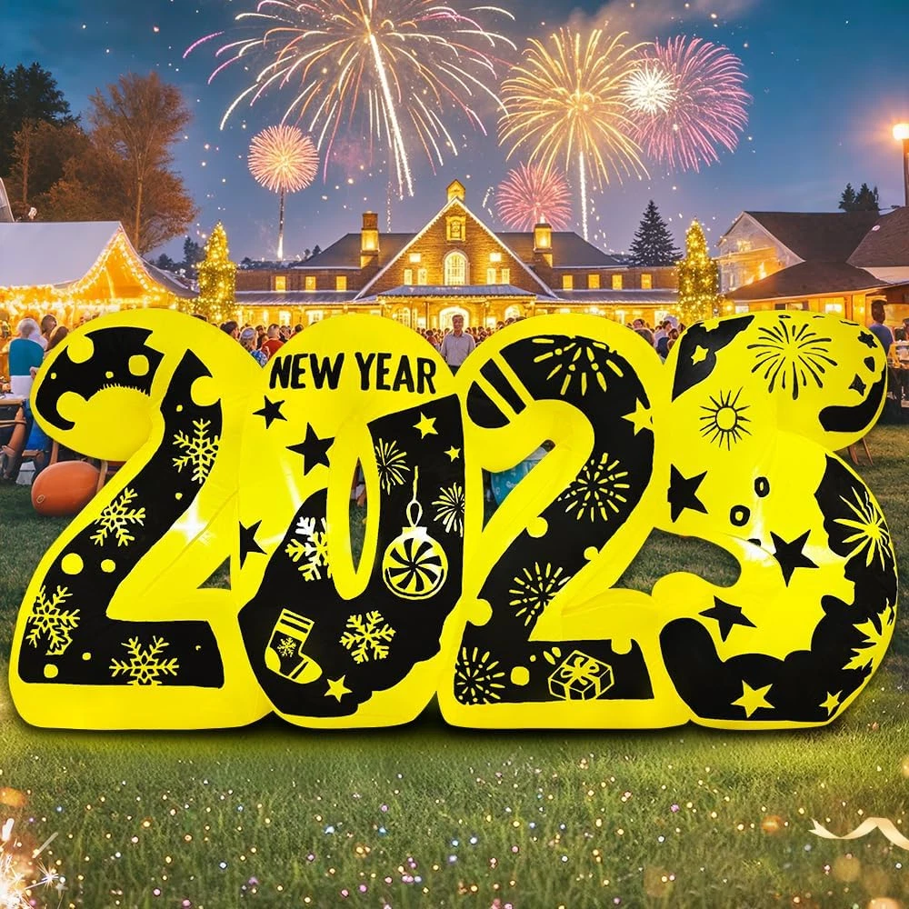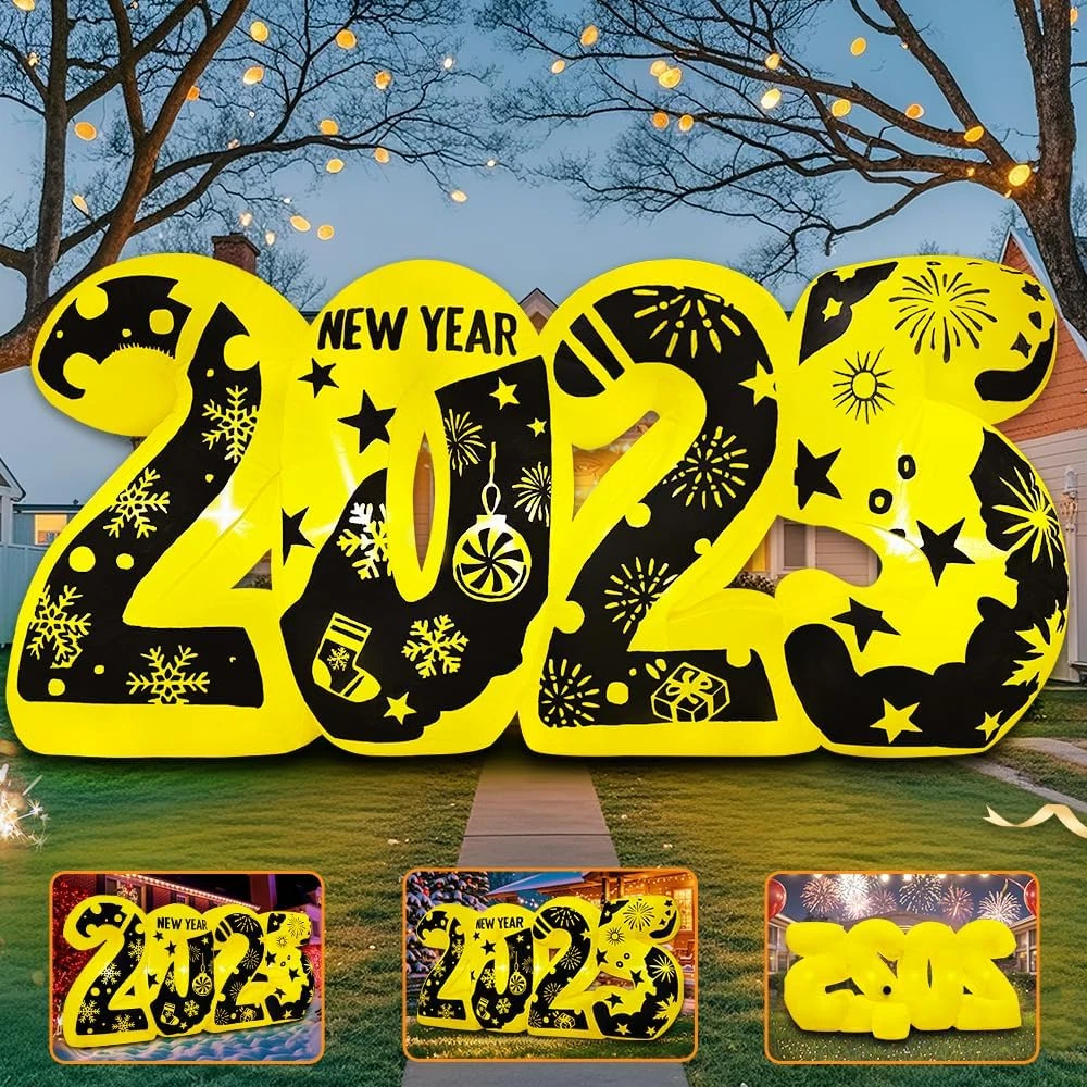 【New Years Eve Party Supplies 2025】2024 NEW 7FT New Year Inflatable 2025 to celebrate New Year.Build-in LED Lights,the super bright colored LED light will illuminate your yard and easily attract the guests, friends, and kids' s attention so that can be the most attractive & New Year decorations outdoor in your neighbors.Used for New Year outdoor and indoor party decoration, it can add a strong New Year atmosphere. 【Stronger Inflatable Fan】 Our Inflatable New Year 2025 is equipped with an upgraded powerful inflatable fan, the New Year inflatable yard decorations can be inflated quickly in two minutes, it is efficient and fast.Don't forget to zip up the bottom zipper before inflated.There is a rechargeable plug with UL Certified adapter are very safe to use, indoor and outdoor connected to the power supply can be inflated. 【Upgrade Premium Material】happy new year 2025 is made of polyester fiber, waterproof and durable, not easy to fade and not easy to be poked, perfect for your yard.Updated sewing technology, product sewing tight and neat.Ensuring our outdoor New Year decorations yard can be used in rainy and snowy days.The deflated decoration is easy to store and can save space very well. 【Perfect New Years Eve Decorations】New Year inflatable outdoor decoration is perfect for happy new year decorations. Blow up New Year Yard decorations are suitable for indoor, outdoor, yard, garden, family, party, stage, New years Eve activities. Which can attract everyone's attention and can make everyone enjoy a happy New Year together. 【Happy New Year 2025】Welcome to our store, where you can enjoy the best shopping experience and service. We have many styles for you to choose from, and wish you a happy shopping. We have 2025, tree, Santa Claus, gingerbread man, snowman and other styles for you to choose from which will brighten up your yard, as well as your holiday! Product Description 1 new year decorations 2025 2 new years decorations 3 nye decorations 2025 Your family and friends will enjoy New year Day and spend the most important moment with you. new year decorations 2025 1 new year banner 2 new years party new year decorations 2025 Add to Cart Add to Cart Add to Cart Add to Cart Add to Cart Add to Cart Price $19.99 $ 19 . 99 $35.99 $ 35 . 99 $79.99 $ 79 . 99 $49.99 $ 49 . 99 $59.99 $ 59 . 99 $32.99 $ 32 . 99 — Durable ✓ ✓ ✓ ✓ ✓ ✓ ✓ Waterproofness ✓ ✓ ✓ ✓ ✓ ✓ ✓ Material 210T Polyester 210T Polyester 210T Polyester 210T Polyester 210T Polyester 210T Polyester 210T Polyester Festival 2025 new years decorations Christmas Christmas Christmas Christmas Christmas Christmas Size 7FT 6FT 6FT 6.5FT 6FT 6FT 6FT