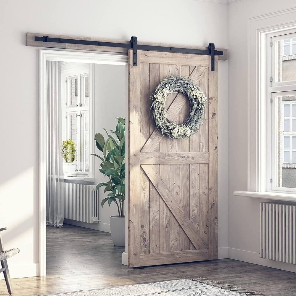 $ 77.256.6FT Heavy-Duty Barn Door Kit with Smooth Nylon Rollers for Superior Durability