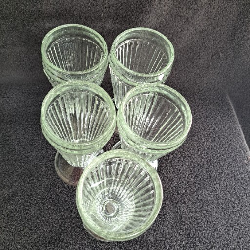 Elevate your dessert experience with this set of 5 clear ribbed pedestal parfait glasses. Perfect for all occasions, these classic glasses stand at 7 inches in height and have a 3.25" top diameter. The ribbed sides and pedestal feature give them a touch of elegance that will impress your guests. Made of high-quality glass, these parfait glasses are suitable for all types of cold desserts, from ice cream sundaes to fruit parfaits. Their timeless design and theme of ice cream soda parlor make them a perfect addition to any home. Whether you're hosting a party or just enjoying a sweet treat, these glasses are sure to enhance your overall experience.