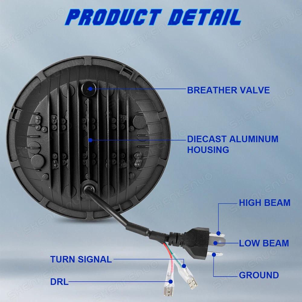 Item Description 。 Headlight Specifications: Model : 2x 7'' Round LED Headlights DRL Housing Color: Black Voltage: DC 12V Color Temperature: 6000K-6500K LED Power: 50W/pc, 100W/SET Luminous: 10000LM (High Beam) 8000LM (Low Beam) Beam:High beam/Low beam/DRL(White)/Turn signal light( Amber ) Life Span: 50000+ hours Newest : LED Headlights Energy Saver 60% Lower Consumption (Low Energy Consumption means Low Fuel Consumption) Replaces 7" Inch Round: H6024 Sealed Beam Housings Material: Cast aluminum housing, clear hardcoated PC lens IP67 Waterproof Fog light Specification : Model: 4"inch fog light Operating Voltage:12-24V DC Power: 30W Luminous flux: 3000lm Waterproof: IP67 Bulb Type: LED Color Temperature: 3000K Amber/6000K White Halo Ring Material: Aluminum Housing, PC Lens, Stainless Mounting Bracket Surface Color: Black Life-span: 50000+hours Size: approx. 4" x 4" x 3.3"(100mm x 100mm x 83mm) Qty: 2pcs Feature: Anti-Crash Anti-crash lens are very important for offroad, which will keep headlights intact when attacked by little rocks.They won't be broken even beated by a hammer ! Maximum protection for led headlight from minor abrasions and slight scratching. No worry to have offroad on forest, desert and so on. Plug N Play Our headlights feature built in anti flicker technology, DOT approved and and everything you need for installation. Let them be your Jeep Halo headlights, they will never let you down! IP67 Waterproof Our 7'' LED Headlights are well constructed. They come with Double Breather Valve to prevent water getting inside. Avoid moisture or condensation in foggy or raining days. IP67 rated waterproof, can work well in rainy days, snowy days and other weather conditions. Combo Kit Compatible For model as follow: For 1992-1998 AM General Hummer For 2007-2017 Jeep Wrangler Unlimited JK 4 - door For 2007-2017 Jeep Wrangler JK 2 Door For 2004-2006 Jeep Wrangler LJ Unlimited For 1997-2006 Jeep Wrangler TJ For 2011-2013 Jeep Grand Cherokee For 2007-2017 Jeep Patriot For 2002-2007 Jeep Liberty For 2015-2020 Jeep Renegade For 1992-2006 Hummer H1 For 2003-2009 Hummer H2 (H2 needs 9007 male to H4 female adapter, package not included) For 2006-2010 Hummer H3 For 2010 Hummer H3T For 1998-2010 Kenworth T2000 For 2013-2016 Freightliner 122SD For 1996-2011 Freightliner Century Class For 2001-2016 Freightliner Coronado For 1992-2001 AM General Package Includes: 2Pcs x Round 7 Inch LED Headlights 2Pcs x Round 4 Inch LED Fog Lights 2Pcs x H4-H13 Adapter 。 Shipping Policy Payment Method Returns Policy Shipping Policy 1) Item Located in US , We will ship all orders asap from our USA warehouse, All shipment will ship by UPS or USPS.Not include small package which less than $5. 2) Item Located in China ,We will ship from China Warehouse.( No service on Weekend and public holidays). 3) We will ship out all orders as soon as possible after payment verified, please allow up to 1-4 business days for delivery. 4) Delivery time within the U.S. is usually just 3 to 6 business days, however in rare cases it could take 6 to 7 business days. Why Choose the US Stock? 1. Us Local Shipping, No Extra Customs Cost to the US. 2. Fast Delivery: 3-6 Working days Delivery. 3. Best After-Sales Service!!! Payment Method We accept PayPal only. Payment must be made within 4 days of auction closing. (Non-payment may result in a UPI