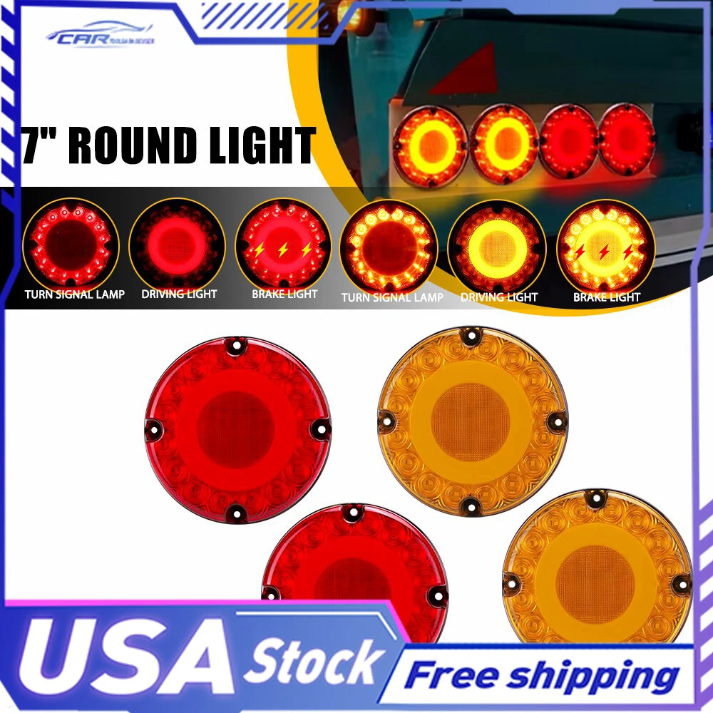 7"Inch LED Round Truck Bus Stop Trailer Tail Brake Turn Signal Light DRL Running