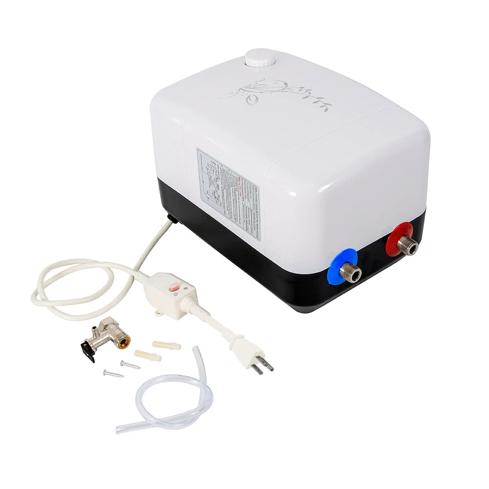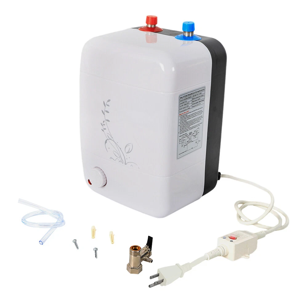 ~welcome to aaertu~ Feature Compact electric water heater, fashion white look. Instant hot water flowout, water temperature adjustable between: 30-75℃. 8L big capacity hot water heater. Provide warm water on winter to wash vegetable, dish and for tooth brush, face wash etc. Separated cold water inlet(blue), hot water outlet(red). Installed under wash basin. High Efficiency heating tube for less energy consumption. Premium stainless steel tank, anti-corrosion & high temperature resistant. IPX 4 Water-proof manufactured. Double protection: separated water & electricity and electricity guard device. Specifications Input: 110V Power: 1500W Water Tank Capacity: 8L Water Temperature Range: 30-75℃ Install Position: Under Basin Rated Water Pressure: 0.7Mpa Water-Proof Level: IPX4 Product Size: 9 x 8.4 x 14 inch / 23 x 21 x 36cm Weight:3.8kg Package Content 1 X Hot Water Heater Payment Delivery details Terms of sales About us Contact us Payment We accept ebay payment 。 Fees such as import duties, taxes are not included in the item price or shipping costs. These charges are the buyer's responsibility. Delivery details Shipping: 2-9 working days to: USA Terms of sales We maintain high standards of excellence and strive for hundred percent customer satisfaction. Feedback is very important to us. We hope that you contact us immediately before you give neutral or negative feedback, so that we can address your concerns. It is impossible to address issues if we do not know about them! About us Your satis faction is our ultimate goal. We work hard to earn your trust and future business. Our certified technicians have tested each item before shipping. The unit comes with 1 year limited warranty on all manufacturing defects. a) If you receive a defective item, you may return it or ask for a discount. Please contact us within 14 days after you receive the package. b) What you returned must be intact and in its original packaging as re? u. Customer is responsible for shipping costs of the returned item. c) We will cover the cost of shipping back t with the shipping rate indicated in the registration page. We will send you a new unit or refund the full payment you paid. Thank you. Contact us Business Hour Business Hour: Monday To Friday: 8:30 AM to 5:00 PM (Beijing China time) Due to time zones, our reply to your questions may not be immediately. But within above working time, we will reply your email within 24 hours. If it's non-workdays, please kindly be patient and wait till Monday. Please contact us with ebay message. Please feel free to contact us if you have any questions. Monday To Friday: 8:30 AM to 5:00 PM (Beijing China time) Due to time zones, our reply to your questions may not be immediately. But within above working time, we will reply your email within 24 hours. If it's non-workdays, please kindly be patient and wait till Monday. Please contact us with ebay message. Please feel free to contact us if you have any questions. Brand Unbranded Features Electric, Mini, Digital Display, Variable Temperature Mounting Location Indoor & Outdoor, Under Sink Power Source Corded Electric Voltage 110/120 V Heating System Storage Tank Type Tank Water Heater Color White Amperage 6.8 A Power 1500W Water Temperature Range 30℃-75℃ Water-Proof Level IPX4 Rated Water Pressure 0.7Mpa Water Tank Capacity 8L