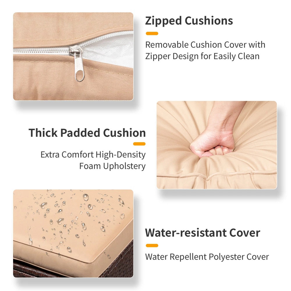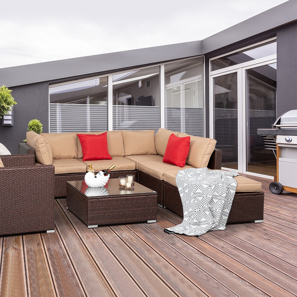 listing template VISIT OUR STORE SIGH UP FOR EMAIL 7PC Outdoor Patio Furniture Set Sectional Sofa PE Rattan Wicker Conversation Set Introductions: This 7 Pieces Wood Grain Patio PE Wicker Rattan Corner Sofa Set is a best choice for you. It's made of gray synthetic resin wicker and designed for the outdoors. It's of great furniture to decorate your garden. The classic yet simple design made it look great in any setting. This set is a beat useful furniture for you. It has comfortable sofas you can sit on it to enjoy your leisure time. The space saving design makes your garden delicate. You will like it so what are you still waiting for? Features: 1. Breathable and waterproof cushion for comfortable seat. 2. Cushion with zipper, removable and washable 3. Water resistant cushion covers against water spilling. 4. Table with removable tempered glass top, easy to clean. 5. There are plastic feet underneath to avoid slip. 6. Plastic clips are provided to keep the pieces from sliding apart. 7. All-weather PE wicker UV resistant, durable steel frame. 8. Sectional sofa will have a perfect shape for any space. Specifications: 1. Material: Steel & PE Rattan 2. Rattan Color: Wood Grain 3. Cushion Color: Khaki 4. Table Load Capacity: 165lb / 75kg 5. Sofas Load Capacity: 330lb / 150kg 6. Table Dimensions: (23.6x23.6x12.2)" / (60 x60 x 31)cm (L x W x H) 7. Armless Sofa Dimensions: (23.6 x 23.6 x25)" / (60 x 67.5 x 63.5)cm (L x W x H) 8. Corner Sofa Dimensions: (26.5 x 26.5 x25)" / (67.5 x 67.5 x 63.5)cm (L x W x H) 9. Ottoman Dimensions: (23.6 x 23.6 x12.2)" / (60 x 60 x 31)cm (L x W x H) 10. Single Sofa Dimensions: (29.5 x 26.5 x 25)” / (75 x 67.5 x 63.5)cm (L x W x H) 11. Tempered Glass Dimensions: (23.6 x 23.6 x 0.2)" / (60 x 60 x 0.5)cm (L x W x H) 12. Cushion thickness: 3.15" Package Includes: 2 x Armless Sofa 1 x Single Sofa 1 x Table 1 x Ottoman 2 x Corner Sofa 2 x Pillow 13 x Cushion 1 x Tempered Glass 1 x Accessories Bag 1 x Installation instructions Shipping Policy 1. Ship worldwide from New Jersey by reliable shipping companies -- USPS, UPS, FEDEX, DHL, etc., and only to VERIFIED PAYPAL ADDRESS. Transport Delivery ETA. Package handling only takes 1 business day at our warehouse, so please make sure entering correct payment and shipping information before checking out. Once your payment is completed, we are not going to accept any more changes to your order. 2. International Buyers – Please Note: a. Import duties, taxes and charges are not included in the item price or shipping charges. These charges are the buyer's responsibility. b. Please check with your country's customs office to determine what these additional costs will be prior to bidding/buying. 3. Please check your shipping address carefully before checkout, it can't be changed if order completed. 4. Orders placed on weekend will be shipped within 2 days.Notification of shipment with tracking number will be sent to buyers. 5. Standard shipping: 2-7 business days Expedited Shipping: 2-3 business days One-day Shipping: 1 business day International shipping: Varies 6.Ship within 1 business day once payment completed. Notification of shipment with tracking No. will be sent to buyer. 7.We offer discounts for combine shipping. Please contact us first if you need combine shipping, and an invoice with discount will be sent to you. 8.Please allow 5 business days for delivery to US destinations on any eBay orders and 14 business days for delivery to any International destinations. We highly recommend our buyer choose priority/expess mail for international delivery which is much more stable. Return Policies 1. Refunds given only if item DOA and cannot be replaced via PAYPAL . If so, Please contact us with 5 days since you receive the item and and return to us within 30 days from the delivery date for exchange or refund. 2. If you need return, please contact our customer service representative, let us know the detailed problem and send us some pictures for confirmation. Payment Payment should be sent within 8(EIGHT) days of auction closing. Feedback If you are dissatisfied for any reason, please do not be quick to leave negative/neutral feedback. We work hard to make sure EVERY CUSTOMER 100% SATISFIED and resolve any problem for you. Work Time Work Time: Monday to Saturday About Us | Newsletter| Feedback| Contact Us Copyright © 2022 LikeDeal. All rights reserved. 无标题文档 7PC Outdoor Patio Furniture Set Sectional Sofa PE Rattan Wicker Conversation Set Introductions: This 7 Pieces Wood Grain Patio PE Wicker Rattan Corner Sofa Set is a best choice for you. It's made of gray synthetic resin wicker and designed for the outdoors. It's of great furniture to decorate your garden. The classic yet simple design made it look great in any setting. This set is a beat useful furniture for you. It has comfortable sofas you can sit on it to enjoy your leisure time. The space saving design makes your garden delicate. You will like it so what are you still waiting for? Features: 1. Breathable and waterproof cushion for comfortable seat. 2. Cushion with zipper, removable and washable 3. Water resistant cushion covers against water spilling. 4. Table with removable tempered glass top, easy to clean. 5. There are plastic feet underneath to avoid slip. 6. Plastic clips are provided to keep the pieces from sliding apart. 7. All-weather PE wicker UV resistant, durable steel frame. 8. Sectional sofa will have a perfect shape for any space. Specifications: 1. Material: Steel & PE Rattan 2. Rattan Color: Wood Grain 3. Cushion Color: Khaki 4. Table Load Capacity: 165lb / 75kg 5. Sofas Load Capacity: 330lb / 150kg 6. Table Dimensions: (23.6x23.6x12.2)" / (60 x60 x 31)cm (L x W x H) 7. Armless Sofa Dimensions: (23.6 x 23.6 x25)" / (60 x 67.5 x 63.5)cm (L x W x H) 8. Corner Sofa Dimensions: (26.5 x 26.5 x25)" / (67.5 x 67.5 x 63.5)cm (L x W x H) 9. Ottoman Dimensions: (23.6 x 23.6 x12.2)" / (60 x 60 x 31)cm (L x W x H) 10. Single Sofa Dimensions: (29.5 x 26.5 x 25
