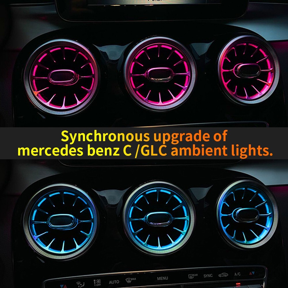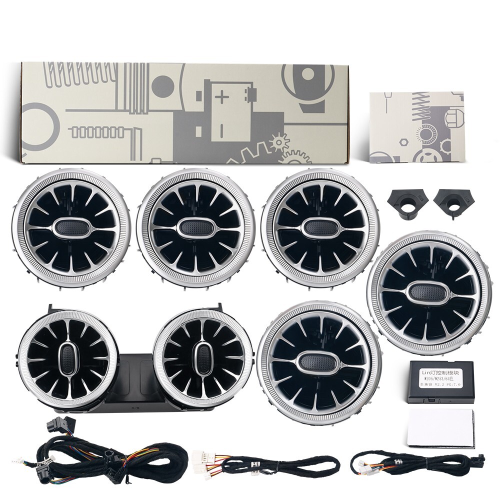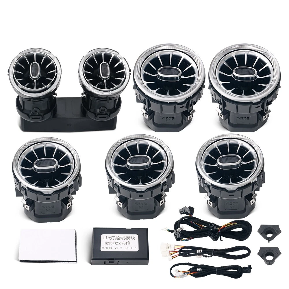 Features: 100% Brand New in Box W205 7PCS/Set 64 Colors NEW Version High Quality Plug and Play Interior Front and Rear Dashboard Air Vent with Ambient Light 1:1 Replacement; NO Modification Required Fitment: For Mercedes Benz C-Class W205 2017 2018 2019 2020 2021( 64 Colors ) - OEM design, fit original air vent position perfectly - Light color is synchronized with original ambient light - Light color and brightness can be controlled by original Command knob Package included: 7 PCS/Set Front and Rear Air Vents with Ambient Light NOTE: NOT Including Installation Guide or Manual. Professional installation is highly recommended .