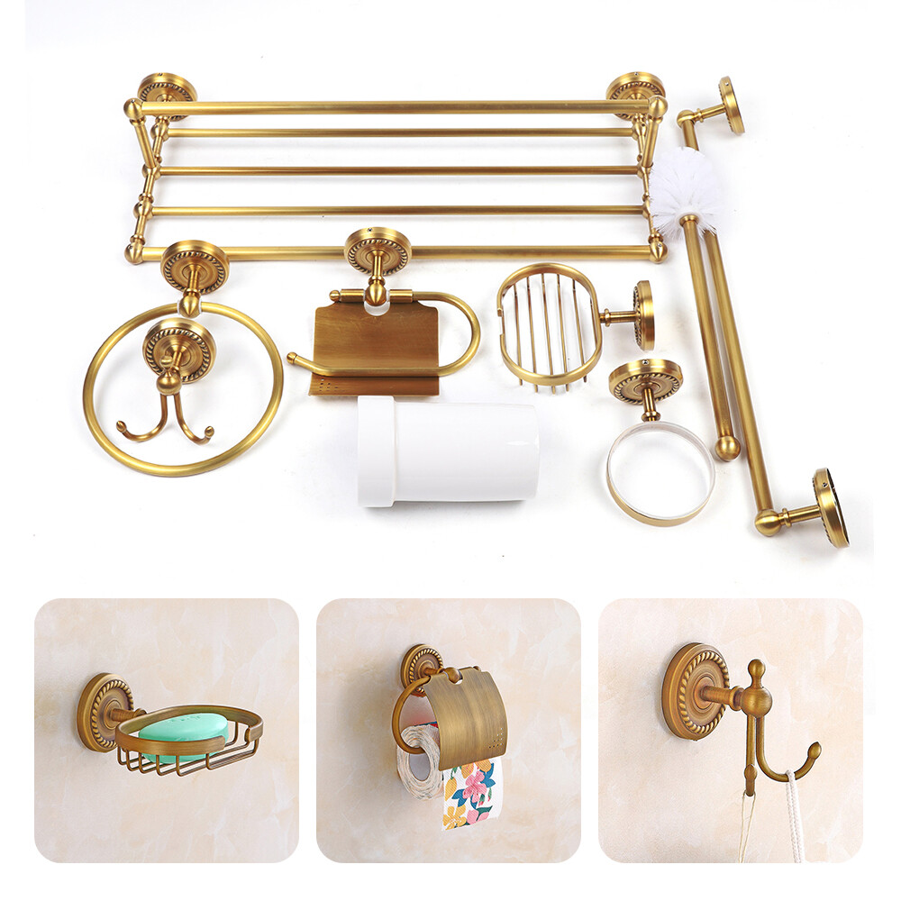 This antique bathroom set is absolutely stunning! The hand-drawn copper finish gives it a luxurious vintage feel, and the craftsmanship is top-notch. Everything feels solid and well-made—no flimsy pieces here. Installation was straightforward, and now my bathroom looks like a high-end hotel. The soap holder, towel ring, and toilet paper holder are not only functional but also gorgeous details. Love how all the pieces match perfectly—definitely worth the investment!