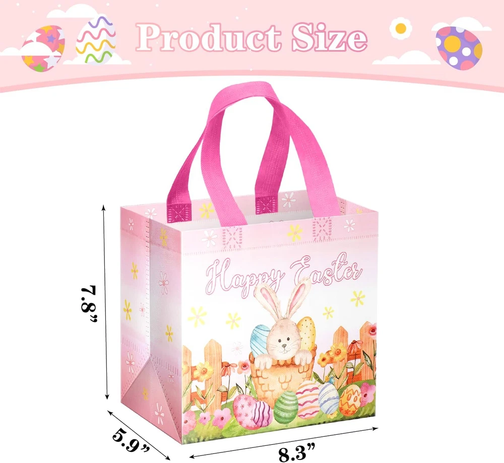 Exun Happy Easter Gift Bags with Handles, Bunny Carrot Chick Designs, Reusable N