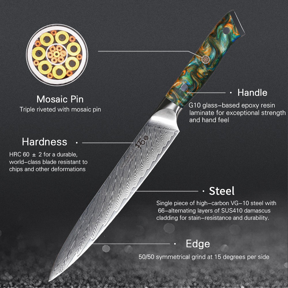 Bundle Description: 5x Knife, 1x Kitchen Shears, 1x Knife Block In Gift Box Set Includes: Chef's Knife Material: Japanese VG10 Damascus Steel Number of Items in Set: 7 Features: Well Balance, Knife Block & Shears Included, Very Sharp Blade Edge: Straight Block Holder Material: Acacia Wood gtin13: Does not apply Handle Material: Resin Handle, Red G10 Handle, Ebony Handle Manufacturer Warranty: Lifetime Type: Chef's Knife Brand: TURWHO Color: Random Food Compatibility: Universal Making Method: Hot Air Room: Kitchen Cutting edge: 15 degrees Custom Bundle: Yes UPC: Does not apply MPN: 225706-7P Blade Length: 3.5in, 6.5in, 8in, 8in, 8in