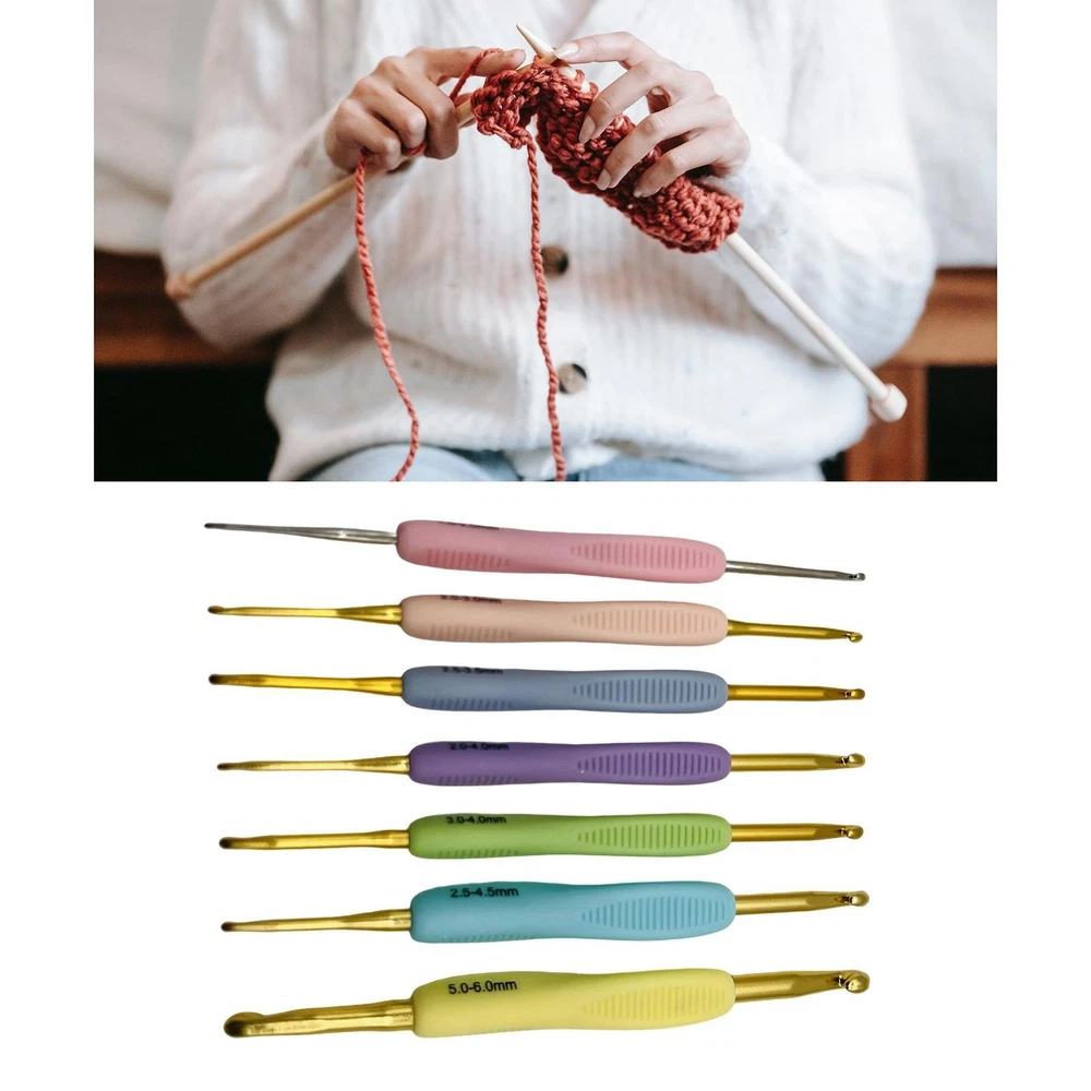 $ 14.698X Crochet Hook Set Ergonomic Yarn Grip Kit Knitting Needle Sewing Tool Soft