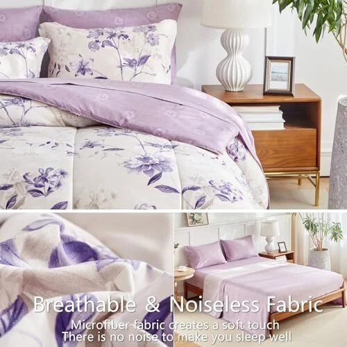 Fabric Type: Microfiber Type: Does Not Apply Product Care Instructions: Machine Wash Pattern: Floral Package Dimensions: 17.01 x 12.4 x 6.02 inches Color: Lilac Material: Polyester Item Weight: 8.8 pounds Item Height: 6.02 EAN: Does Not Apply Item Width: 12.4 MPN: Does Not Apply UPC: Does Not Apply Style: Modern Seasons: All Number of Pieces: 7 Date First Available: March 3, 2024 Theme: natural Item Length: 17.01 Brand: Does Not Apply Manufacturer: Does Not Apply Included Components: Comforter gtin13: Does Not Apply Size: Queen-7 Pieces