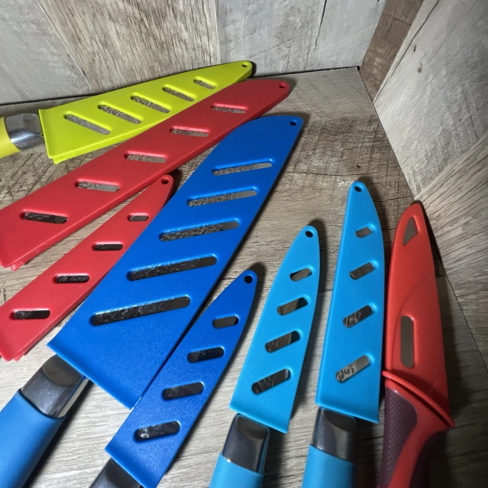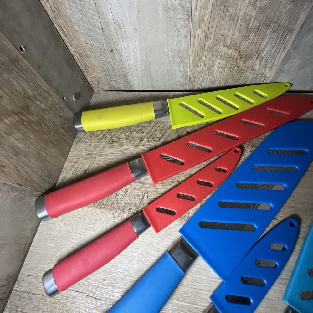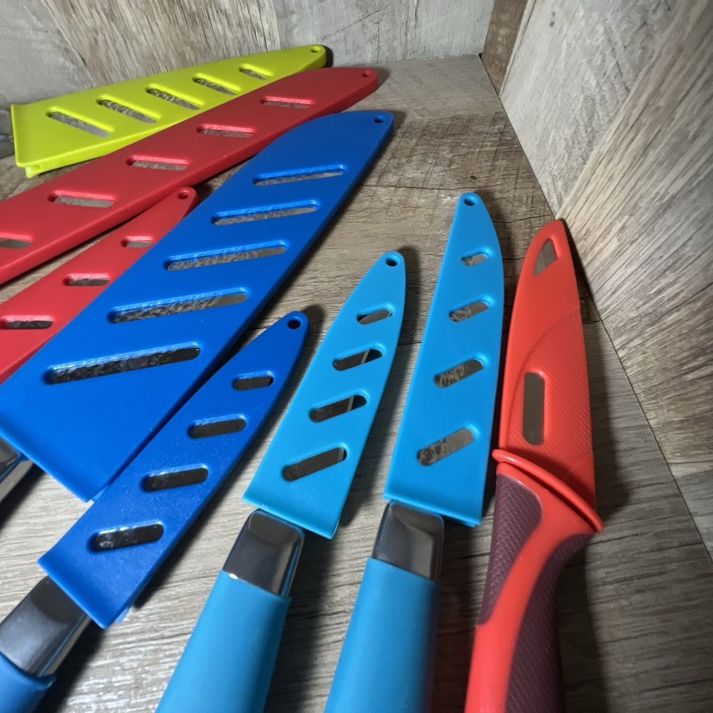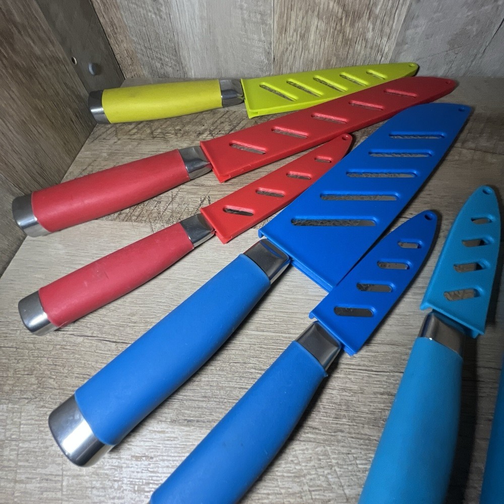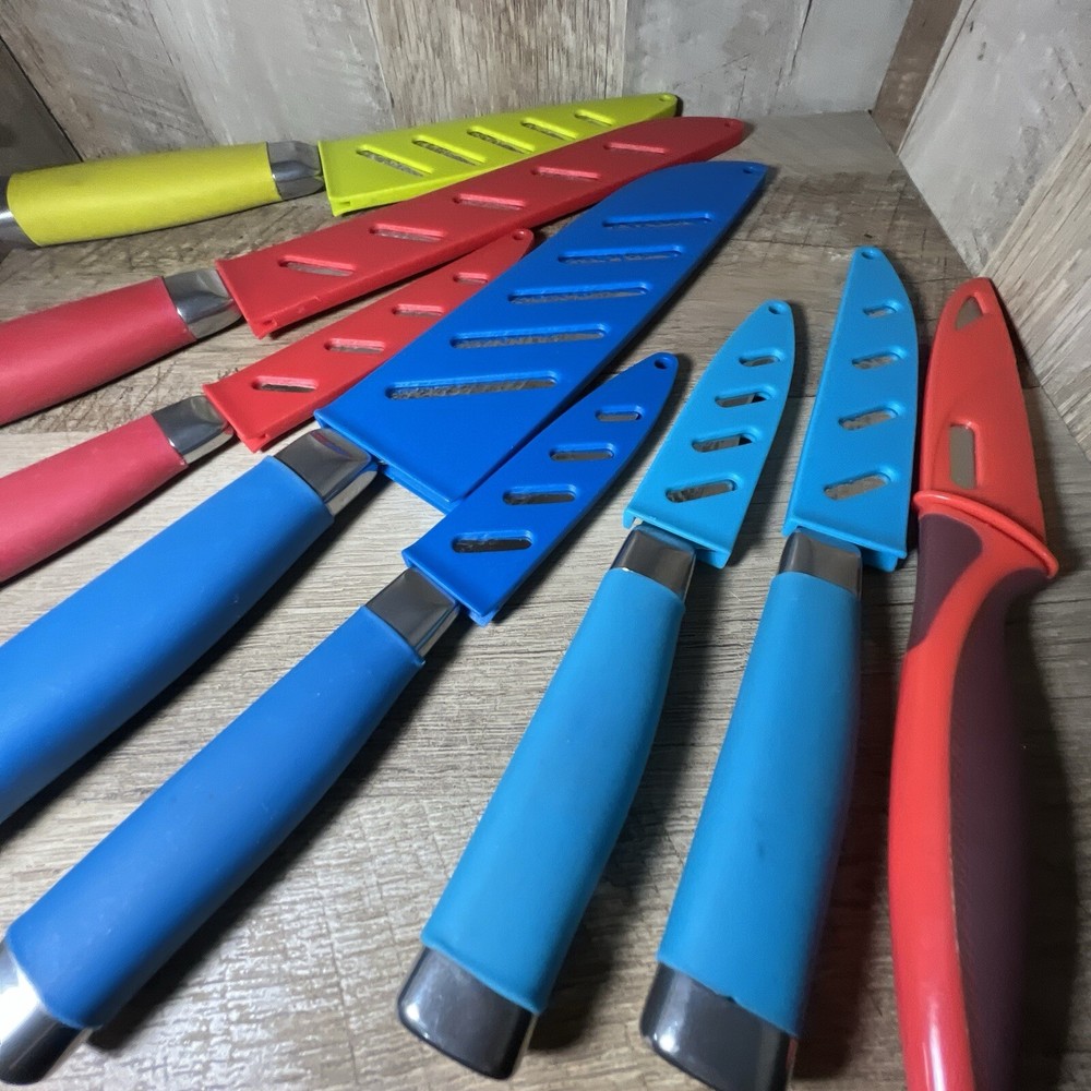 The Tomodachi 7 Piece Knife Set includes carving & slicing knives, a utility knife, bread knife, chef's knife, and steak knife. The knives are made of stainless steel with straight blade edges and come in a variety of colors. Each knife includes a blade cover and handles for easy use. The set is dishwasher safe and includes a bonus free knife. B18> Item has been priced accordingly to condition. All items come from a Non Smoking household. Items have been cleaned and sanitized, however it’s in good practice for you to deep clean them upon arrival. As with everything I sell, it’ll be packaged well so that you receive it in the same condition as it leaves here. SOLD AS IS. Look at the pics before bidding and/or buying, what you see is what you get. Sorry, No returns, No refunds. ALL sales FINAL. Let me know if you have any questions. Check my feedback and bid with confidence. Please check out my other items, I will be adding more items everyday. I have 3 day shipping in all my post but that’s just a safety net, most of the time I ship NEXT DAY, but there are times when I have midterms or papers due and on those scenarios I ship in the allowed time that eBay gives me. Any of my items that require batteries they WILL NOT be included. Thanks in Advance YOUR PURCHASE SUPPORTS MY TUITION 👨🏻🎓