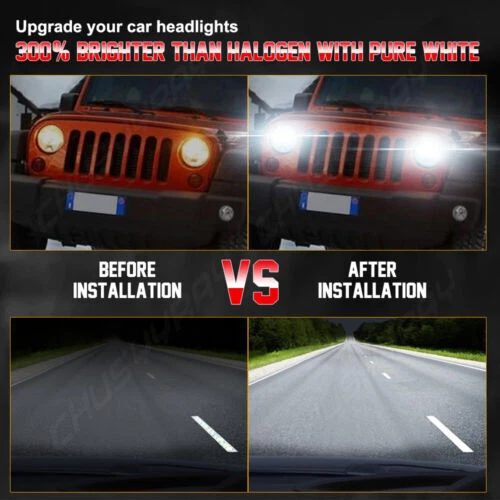 7" Inch Universal Round Cut Chrome Front Clear Glass Lens Diamond Headlights Kit 7" Inch Round Headlight Housing *Black Chrome housing with clear lens design , Lens is made out of clear glass. *Enhance visibility during night time, heavy rain, snow, or dense fog. Precision optics offers a highly controlled concentration of light to enhance visibility. *Direct replacement, easy installation. *High quality O.E grade materials to withstand the most rigorous weather *Compatible For Manufacturer Headlight Part Numbers # H6014 / H6015 / H6024 *These headlights are set up for high and low beams, just simply plug them into your original wiring. *This design is perfect replacement for old sealed-beam round headlight on any vehicle that uses standard 7” bucket. H4 HB2 9003 LED Headlight Bulbs Specifics -Color: 6000K Cool White -Power Consumption: 110 Watt -Luminosity: 11,000 LM -360 Degree / P2 Series CSP Chip Perfect Beam Angle -H4 - Dual Beam Function (You will have HIGH AND LOW!) -500% Brighter than Stock Halogen -Built in IC Circuit (Current Regulator)-Prevents LED Damage From Voltage Variations & Spikes. -Lifespan: 50,000 Hours -Operating Voltage: DC 12V / 24V -Amperage: 1.9A - 2.9A -Maintenance free, Waterproof IP67, Shockproof -Warranty 5 years Top Features 300% Brighter than Halogen: 110W 6000K cool white, 1w=100lm, with clear visibility and perfect beam pattern, so you can enjoy good vision while driving at night. Super Focused Beam Pattern: F5plus led bulbs with 1.0mm ultra-thin centered light emitting. No dark spots or foggy light, do not blind oncoming traffic. 10mins Easy Installation: The LED bulb’s almost 1:1 design as halogen. Plug and play. No other tools are needed 360° Adjustable Beam Pattern: Adopts 360° adjustable locker ring to ensure the best beam pattern. except H1, H3, 880, PSX26W 50,000 hours Lifespan: P2 plus comes with a copper base board, cold pressed aluminum heat sink and 12,000rmp cooling fan. Better solve the dimming or over heated of led bulbs. Information: a)Compatible List can not show up all Car model. Please check the Correct item size of your vechicle. it will work and fit.Thank you! b)If you are unsure the item fit or not , please do remember send message to tell us your car make, model, year and other information which is helpful to check the item fit or not.For example: For 2004 Ford F 150, high/low beam For 2015 RAM 1500 with projector-type, high beam For 2019 Ford F 150 ,XL Crew Cab Pickup 4-Door 2.7L Application: For Any Vehicle models with 7 inch Round headlight,such as: For Jeep Wagoneer (1963-1978) For Jeep CJ-7 (1976-1986) For Jeep CJ-8 Scrambler (1981-1985) For Jeep Wrangler TJ 2 Door (1997~2006) For Jeep Wrangler LJ unlimited (4 Door) (2004~2006) For Jeep Wrangler JK 2 Door (2007~2018) For Jeep Wrangler Unlimited JK 4 Door (2007~2018) For Chevy Camaro (1969-1981) For Mazda Miata MX5 MX-5 (1990-1997) For Honda Civic (1976-1981) For Ford Custom 500 (1971/1976) For Ford F100 Pikcup (1969-1974) For Ford F150 (1975-1979) For Toyota Corolla (1969-1980) For Toyota LandCruiser (1979-1987) For Toyota Pickup (1979-1981) For Oldsmobile Omega (1974-1979) For Plymouth Barracuda (1964-1974) For Plymouth Valiant (1963-1976) For Land Rover Defender 90 (1997) For Land Rover Defender 90 (1995) For Land RoverRange Rover County Classic Sport Utility 4-Door 1995 For Land Rover Range Rover (1987-1995) For Jeep Wrangler (1997-2015) For Land Rover 90/110 1983 to 1991 (including 2.5N/A, 2.5 Turbo, V8) For Land Rover 90/110 Defender 200 Tdi For Land Rover 90/110 Defender 300 Tdi For Land Rover 90/110 Defender Td5 For Land Rover 90/110 Tdci For Hummer H1 H2 (2003~2009) (H2 needs 9007 male to H4 female adapter, package not included) For Lada 4x4 urban Niva For UAZ Hunter For Suzuki Samurai For Kenworth T-2000 1998-2010(Buyer Note, Our Headlight plug is H4,H4-H13) For Puch G and Mercedes G models For 1990-1997 Mazda Miata For 1976-1977 Mazda Mizer For 1979-1985 Mazda RX-7 For 1976-1977 Mazda 808 etc... etc... (Note: 2* T10/501/W5W bulbs will be given to purchase this kit ) (T10/501/W5W Application: Interior Door Light Bulb / side Marker Light Bulb rear / front Tail Light Bulb Inner / License Light Bulb / Glove Box Light Bulb Trunk or Cargo Area Light Bulb/ Dome Light Bulb Check Engine Light Bulb / Courtesy Light Bulb / Parking Light Bulb Center High Mount Stop Light /Dome Light Bulb / Map Light Bulb Door Mirror illumnination light bulb) On Nov 11, 2024 at 03:21:39 PST, seller added the following information: