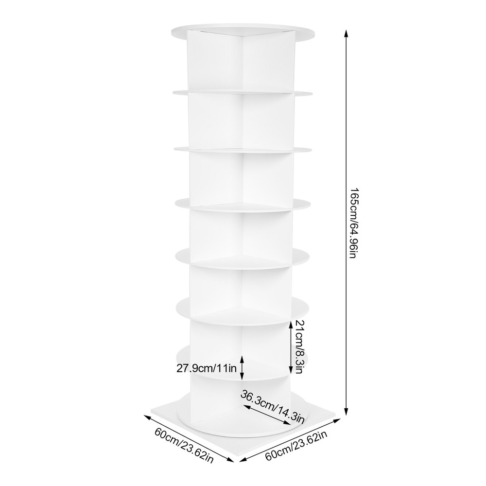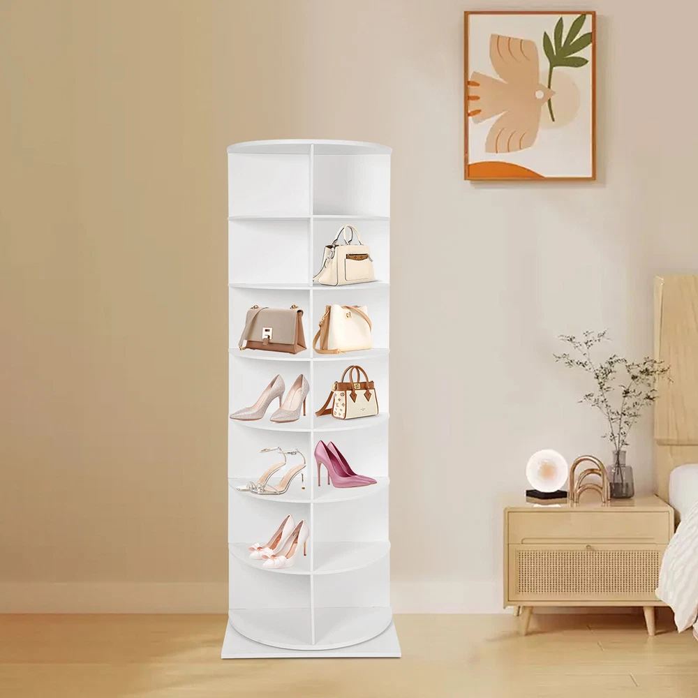 This rotating shoe rack is a game-changer for organizing clutter! The 7-tier design holds up to 28 pairs of shoes, plus it spins smoothly to save space. Sturdy stainless steel and PVC make it durable, and the freestanding design fits anywhere—entryway, bedroom, or closet. Love that it doubles as storage for bags, hats, or even small plants! Assembly was quick, and the white finish looks sleek. Perfect for maximizing space while keeping everything accessible. Highly recommend!