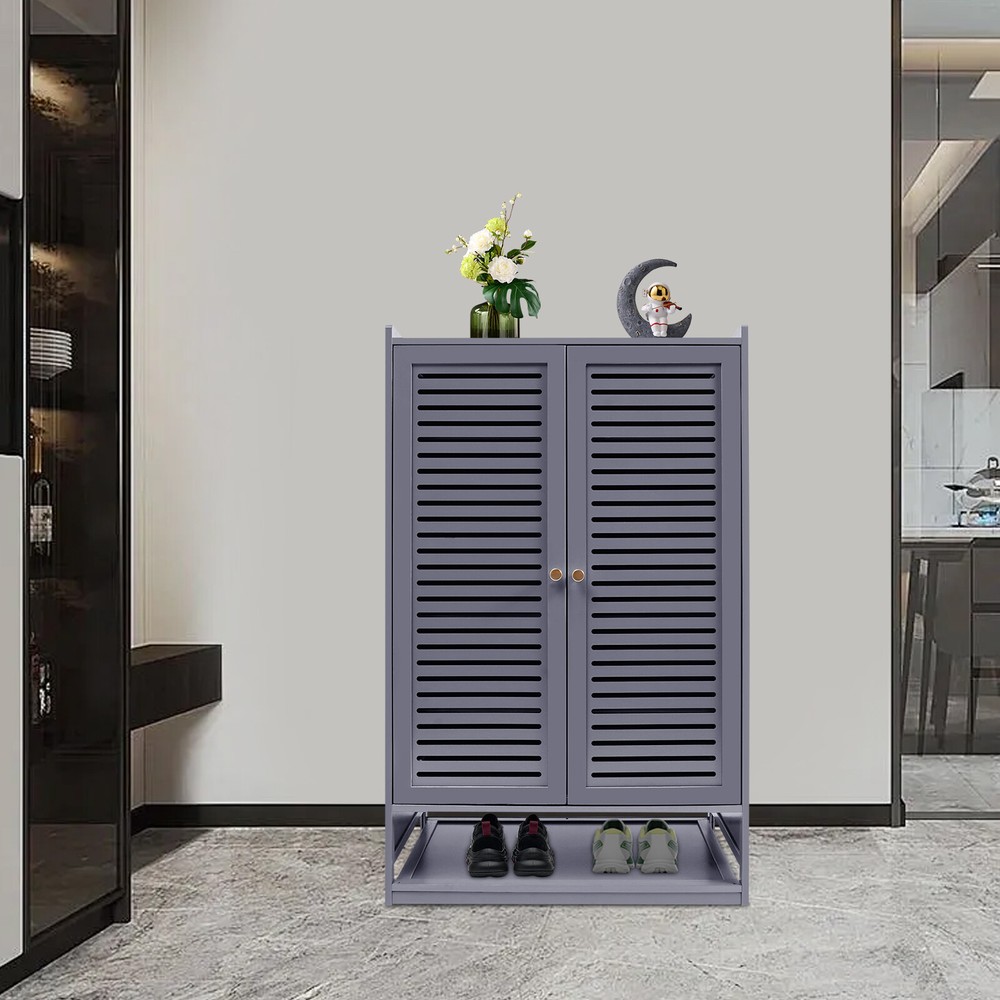 $ 26.783-Tier Grey Shoe Cabinet with Flip Doors Holds 16 Pairs 16.5lbs
