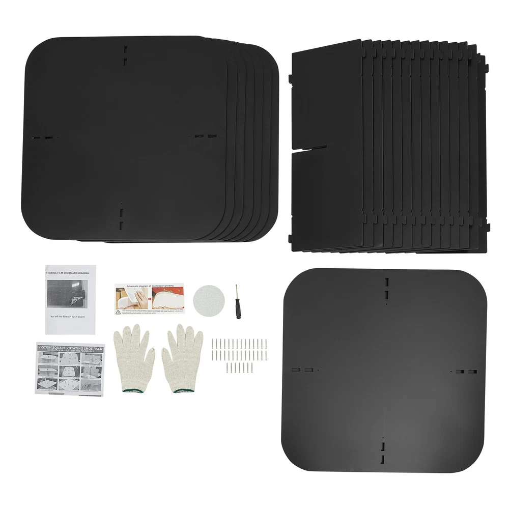 7-Tier Adjustable Rotating Shoe Rack Tower 360?? Rotatable Storage Display Rack Description This 7-tier square rotating shoe rack features a compact design that provides plenty of space for your favorite shoes. The 360-degree rotating design facilitates easy access to every pair of shoes. It is made of premium materials, which ensures a solid structure, and strong load-bearing capacity, whether it is high heels or sneakers can be stored, so that all your shoes can be neatly stored, making the room more neat and organized. Key Features Sturdy and Durable: The product is made of PVC wood-plastic board with a PVC coextruded layer, which boasts high hardness, stable structure, corrosion resistance , and impact resistance , ensuring a long service life. Strong Structure: 10mm thick board and strong screw connections provide the product with a strong structure to hold your shoes within 220.46 lbs, allowing you to use it with confidence. Adjustable Shelf Tiers: The rotating shoe rack has 7 tiers, and you can adjust the number of tiers installed as needed to provide a flexible storage solution. Thoughtful Design: The 360° rotatable design allows you to access your shoes with ease. Large Capacity: The 7-tier design ensures enough space for your shoes. In addition, each tier is divided into four compartments, allowing your shoes to be placed individually for better shoe storage and display. Simple Installation: Tongue and groove construction, the English manual, and needed accessories allow you to easily and quickly finish the installation. Good Appearance: The simple structure and modern stylish appearance allow the product to easily blend into your room, making it a great addition to your space. Ideal Gift: The large capacity and good appearance make it an ideal gift for your friends, families, and colleagues. Buy with Confidence: We stand behind all our guests and look forward to assisting you with your purchase. It is our pleasure to answer your confusion and questions. The end of the story between us is not "we sell and you buy". Details Sturdy Base: The square base increases contact areas between the product and the ground, preventing it from sliding during daily use. Round Edges: Smooth edges are not only comfortable to the touch, but also enhance safety in use. Protective Gloves: They can protect your hands from scratches while installing the product. Application The product is suitable for living rooms, entrance doors, bedrooms, corridors, shoe stores, etc. It can be used to store shoes such as leather shoes, high heels, sneakers, and other items such as CDs, books, photo albums, plants, towels, and so on. Specifications Color: Black Material: PVC Wood-plastic Board Process: PVC Coextruded Layer Mount Type: Free Standing Number of Grids: 28 Number of Tiers: 7 Max. Load Bearing Capacity: 100kg/220.46lbs Board Thickness: 10mm/0.39in Assembly Required: Yes Product Overall Size: 60*60*165cm/23.62*23.62*64.96in Each Compartment Size(L*W): 29.5*29.5cm/11.61*11.61in Package Size: 65*65*16cm/25.59*25.59*6.3in Gross Weight: 18kg/39.68lbs Net Weight: 17kg/37.48lbs Package Included 1* Rotating Shoe Rack 1 Pair* Gloves 1* English Manual Other Needed Accessories Notes Please check the size carefully before ordering. Please use the product within its weight capacity to avoid damage. This product does not include the shoes shown in the picture. Please allow the slight color difference caused by the shooting light and 1-3cm error due to manual measurement, and make sure you do not mind before you order. Payment Delivery details Terms of sales About us Contact us Payment We accept ebay payment 。 Fees such as import duties, taxes are not included in the item price or shipping costs. These charges are the buyer's responsibility. Delivery details Shipping: 2-9 working days to: USA Terms of sales We maintain high standards of excellence and strive for hundred percent customer satisfaction. Feedback is very important to us. We hope that you contact us immediately before you give neutral or negative feedback, so that we can address your concerns. It is impossible to address issues if we do not know about them! About us Your satis faction is our ultimate goal. We work hard to earn your trust and future business. Our certified technicians have tested each item before shipping. The unit comes with 1 year limited warranty on all manufacturing defects. a) If you receive a defective item, you may return it or ask for a discount. Please contact us within 14 days after you receive the package. b) What you returned must be intact and in its original packaging as re? u. Customer is responsible for shipping costs of the returned item. c) We will cover the cost of shipping back t with the shipping rate indicated in the registration page. We will send you a new unit or refund the full payment you paid. Thank you. Contact us Business Hour Business Hour: Monday To Friday: 8:30 AM to 5:00 PM (Beijing China time) Due to time zones, our reply to your questions may not be immediately. But within above working time, we will reply your email within 24 hours. If it's non-workdays, please kindly be patient and wait till Monday. Please contact us with ebay message. Please feel free to contact us if you have any questions. Monday To Friday: 8:30 AM to 5:00 PM (Beijing China time) Due to time zones, our reply to your questions may not be immediately. But within above working time, we will reply your email within 24 hours. If it's non-workdays, please kindly be patient and wait till Monday. Please contact us with ebay message. Please feel free to contact us if you have any questions. Brand GDRASUYA10 StartPrice 160.11072 Process PVC Coextruded Layer Mount Type Free Standing Number of Grids 28 Number of Tiers 7 Max. Load Bearing Capacity 100kg/220.46lbs Board Thickness 10mm/0.39in Assembly Required Yes Product Overall Size 60*60*165cm/23.62*23.62*64.96in Each Compartment Size(L*W) 29.5*29.5cm/11.61*11.61in Package Size 65*65*16cm/25.59