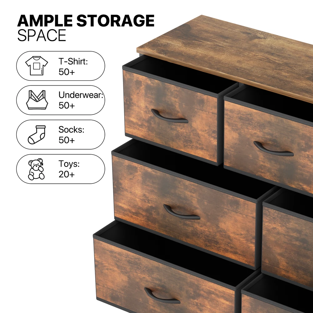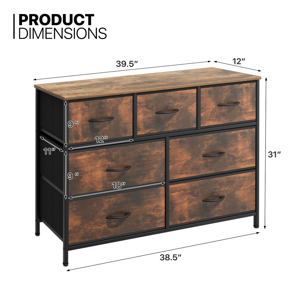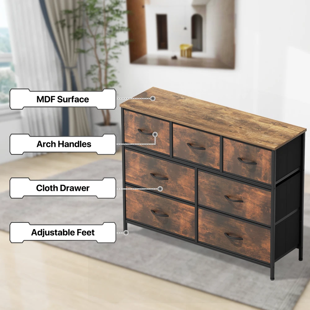 Monibloom about us all items feedback new arrival ending soon contact us ELEGANCE & MINIMALISM 7-Tier Brown Drawers Dresser Fabric Chest of Storage Bedroom Furniture Organizer item specification Brand: MoNiBloom Type: Chests of Drawers Drawer Material: Fabric Mounting: Free Standing Overall Size: (L)39.5" (W)12.0" (H)31.0" Number Of Drawers: 7 Tipover Restraint Device : No item description 7 foldable drawers can classify and store clothes, hats, socks, towels, toys, etc., making it easy for you to quickly find the items you need. The drawer dresser has a sturdy wooden top that can hold desk lamps, decorations, photo frames, and more. Using this drawer cabinet will bring multifunctional storage space to your bedroom, living room, closet, and other spaces. 7 Drawer Organizer - Our dresser features 3 medium and 4 large drawers, offering ample storage for clothes, blankets, toys, and more. The spacious desktop is perfect for displaying decorations, potted plants, and photo frames, helping keep your room organized and tidy. Safe and Stable - This chest of drawers boasts a durable metal frame, MDF board, and high-quality non-woven fabric drawers. Equipped with easy-pull handles, 4 adjustable legs to prevent scratches, and strong fixing rod enhances the stability of the cabinet. TV Stand - Tall dresser perfectly combines drawers and TV stands, serving as a TV stand while storing items. It is suitable for TV under 45 inches. Simple Design - Simple and modern design chest of drawer dresser can perfectly blend with your home decor. It can be placed in bedrooms, living rooms, closets, children's rooms, dormitories, nurseries, entryways, hallways, etc., increasing storage space and storing miscellaneous items. Assembly & Customer Service - Follow the included instructions and set up the drawer dresser in just 30 minutes. All necessary parts, accessories, and installation guides are provided. Contact us with any questions and we'll respond soon. Overall dimensions: 12"D x 39.5"W x 31"H. more from monibloom TV Stand BROWN Chests of Drawers FABRIC Chests of Drawers FABRIC Nightstand FABRIC Chests of Drawers FABRIC Nightstand FABRIC Chests of Drawers FABRIC All Items in the same category material Professional quality control ensure our products meet your satisfaction green Bamboo crops sequester more carbon dioxide than an equivalent stand of trees, which helps reduce CO2 and increase oxygen in the atmosphere. performance 30 Days Money Back Guarantee. Get the item you ordered, or your money back. Need Help? Need an exchange/return or recommendation on a product? Send us a Message Our friendly customer service team are committed to providing exceptional quality service. About us Monibloom specialized all kind of great products. Our number one goal is to provide the best online shopping experience for our customers. We offers free shipping with free return on orders purchased within the 48 US States, excluding PO Box, Military APO/FPO, Alaska, Guam, Hawaii, Puerto Rico, and Virgin Islands. Subscribe to our newsletter Subscribe Copyright © 2024 MoNiBloom . All rights reserved.