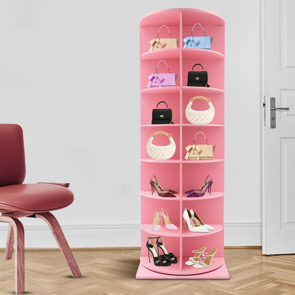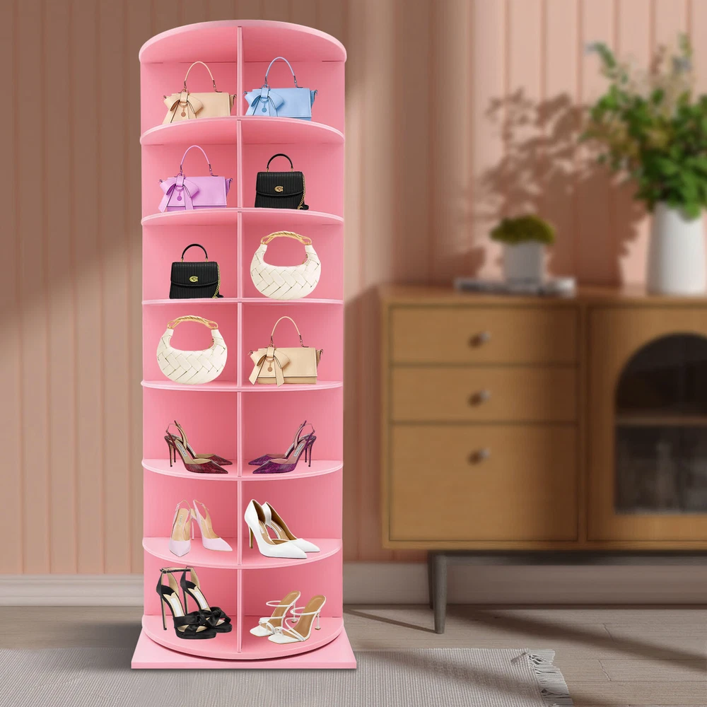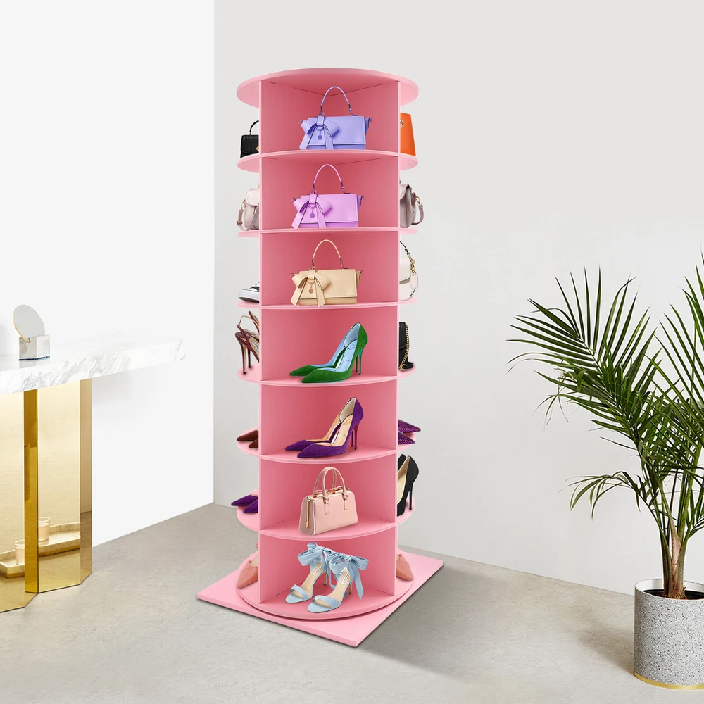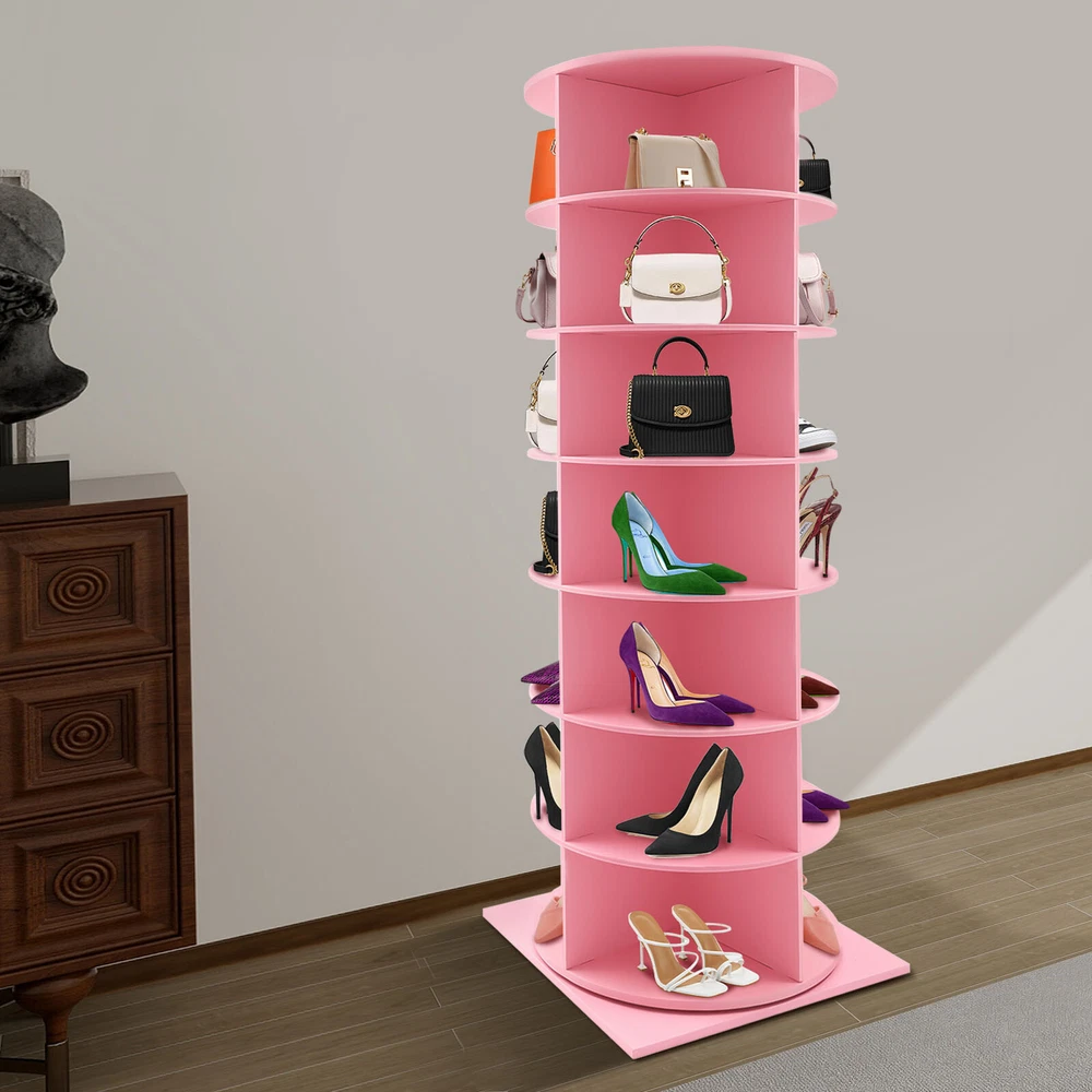 7-Tier Rotating Shoe Rack Tower, 360° Spinning Shoe Display Closet Organizer Description Are you seeking a sturdy, durable, large-capacity, high-value rotating shoe rack? Come and take a look at our product! Thick boards and stable construction ensure robustness and longevity. It is easy to install, can be rotated 360°, allows you to easily access and store your multiple pairs of shoes, and gives you a neat and organized living space. Key Features Sturdy and Durable: It is made of high-quality foamed PVC boards and ecological boards, basically non-toxic and odorless, not easy to deform and rust, and remains in good condition after long use. Rotating Design: The chassis spindle with a stainless steel axis can be rotated 360° with a gentle push, allowing you to easily browse and select the shoes you need and greatly enhancing the convenience of use. Large Capacity: It adopts a 7-tier design, each has 4 compartments and each compartment measures 11*14.3*8.3", to accommodate up to 28 pairs of shoes, solving the problem of family shoe storage and keeping the home environment neat and orderly. Enough Load Capacity: The thick boards, strengthened chassis axis, and stable structure can support a maximum weight of 77.16 lbs, allowing you to place your shoes confidently while ensuring smooth rotation even when fully loaded. High Space Utilization: Its vertical structure occupies a footprint of 23.62*23.62 inches and makes full use of limited space such as corners in your home, which is ideal for small homes or apartments, freeing up more activity areas. Easy to Assemble: It adopts snap-in installation, so you can easily complete the assembly without additional tools, letting you enjoy the fun of DIY. Stylish Appearance: The fresh pink appearance with a square base, a round frame, and fan-shaped compartments is full of design and modernity, which harmoniously adapts to various decorative styles. Simple Cleaning: Thanks to its smooth surface and open structure, you can wipe away stains and dirt with just a damp rag. Ideal Gift: Thanks to its practicality and aesthetics, you can give it as your well-chosen gift to your family, relatives, friends, etc. Details Anti-slip Base: The large square base provides more stable support to prevent accidental tipping and sliding. Smooth Edges: The smooth and burr-free edges enhance the beauty of the product and better care for your skin when installing, using, and cleaning it. Application It helps you store most types of shoes, bags, hats, ornaments, small potted plants, CDs, etc., and can be placed in the entrance, living room, bedroom, cloakroom, and more. Specification Color: Pink Material: Foamed PVC Sheet, Ecological Board, Stainless Steel Mount Type: Freestanding Assembly Required: Yes Number of Tiers: 7 Accommodated Shoes: 28 Overall Load-capacity: 35kg/77.16 lbs Each Slot Size: 28*36.32 *21cm/11*14.3*8.3in Product Size(D*W*H): 60*60*165cm/23.62*23.62*64.96in Package Size: 65*65*40cm/25.59*25.59*15.75in Gross Weight: 21kg/46.30 lbs Net Weight: 20kg/44.09 lbs Package Included 1* Rotating Shoe Rack Notes Please check the style and size before purchasing. Shoes and other items for display are not included in this package. Please allow the slight color difference caused by the shooting light and 1-3cm error due to manual measurement and make sure you do not mind before ordering. Payment Delivery details Terms of sales About us Contact us Payment We accept ebay payment 。 Fees such as import duties, taxes are not included in the item price or shipping costs. These charges are the buyer's responsibility. Delivery details Shipping: 2-9 working days to: USA Terms of sales We maintain high standards of excellence and strive for hundred percent customer satisfaction. Feedback is very important to us. We hope that you contact us immediately before you give neutral or negative feedback, so that we can address your concerns. It is impossible to address issues if we do not know about them! About us Your satis faction is our ultimate goal. We work hard to earn your trust and future business. Our certified technicians have tested each item before shipping. The unit comes with 1 year limited warranty on all manufacturing defects. a) If you receive a defective item, you may return it or ask for a discount. Please contact us within 14 days after you receive the package. b) What you returned must be intact and in its original packaging as re? u. Customer is responsible for shipping costs of the returned item. c) We will cover the cost of shipping back t with the shipping rate indicated in the registration page. We will send you a new unit or refund the full payment you paid. Thank you. Contact us Business Hour Business Hour: Monday To Friday: 8:30 AM to 5:00 PM (Beijing China time) Due to time zones, our reply to your questions may not be immediately. But within above working time, we will reply your email within 24 hours. If it's non-workdays, please kindly be patient and wait till Monday. Please contact us with ebay message. Please feel free to contact us if you have any questions. Monday To Friday: 8:30 AM to 5:00 PM (Beijing China time) Due to time zones, our reply to your questions may not be immediately. But within above working time, we will reply your email within 24 hours. If it's non-workdays, please kindly be patient and wait till Monday. Please contact us with ebay message. Please feel free to contact us if you have any questions. Brand Unbranded Item Height N/A Item Length N/A Item Width N/A Type Shoe Cabinet