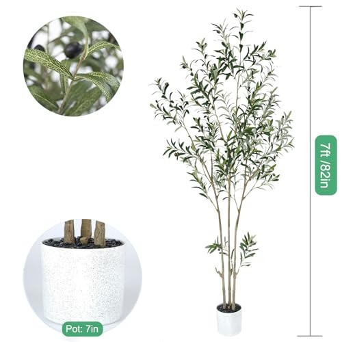 Return Policy Fast Delivery Trusted seller 7 Feet (84'') Olive Tree Fluffy Artificial Plants Indoor for Home Corner, Faux Olive Tree for Modern Home Office Living Room Floor Decor Indoor Product Description LIFELIKE OLIVE TREE】This Aesthetic indoor olive trees artificial has realistic branches and leaves, and it measures 7 feet in height. The 3 trunks make the tree look fluffy and can be shaped as you idea. The trunk of the fake olive tree has a lifelike bark texture, simulated branches, leaves with intricate veins, and some fruit dotted between the leaves. 【DURABLE MATERIAL】This 7 feet faux olive tree with pot is made of plastic, fabric, and stone. The fake indoor plant with flower pots can stand naturally. The middle section of this artificial plants for home decor is removable, so it will be extremely convenient if you want to move it. 【EASY CARE】84'' Artificial olive trees have qualities that real trees do not have, they will never dry out, die or attract annoying insects. Artificial plants for home decor indoor do not need watering, pruning, or sunlight, and can stay green for a long time, so your room is always green. 【DECORATE EACH ROOM】Nearly natural artificial plants is the perfect decoration for all rooms, it will add a natural touch to every corner. This fake olive tree is perfect for your home, living room, porch, hallway, staircase corner or office, hotel and other public places. Decor with white speckles pot and black stone, to make the olive tree more beautiful. 【QUALITY ASSURANCE】This fake tree for home decor is a perfect gift for Christmas, Thanksgiving, housewarming, for friends or family. If you have any questions about this indoor fake olive tree please contact us, we will surely give you a satisfactory reply. Shipping Returns Payment Shipping Shipping is FREE to all addresses other than APO/PO boxes in the lower 48 states. All our stock ships from US-based warehouses. Shipped via USPS or UPS (depending on location and package weight) Unless stated otherwise, all orders will ship within 24-72 hours of your payment being processed. Check our feedback to see the great reviews of FAST shipping we offer. Returns Seller does not accept returns Payment We currently accept payment via eBay managed payments only. Once payment is cleared, we will dispatch your shipment within 1-3 business days. Please refer to the "Shipping" tab for more information regarding shipping speed to your destination.