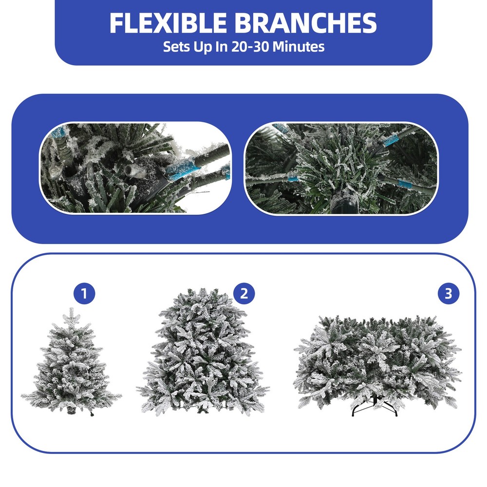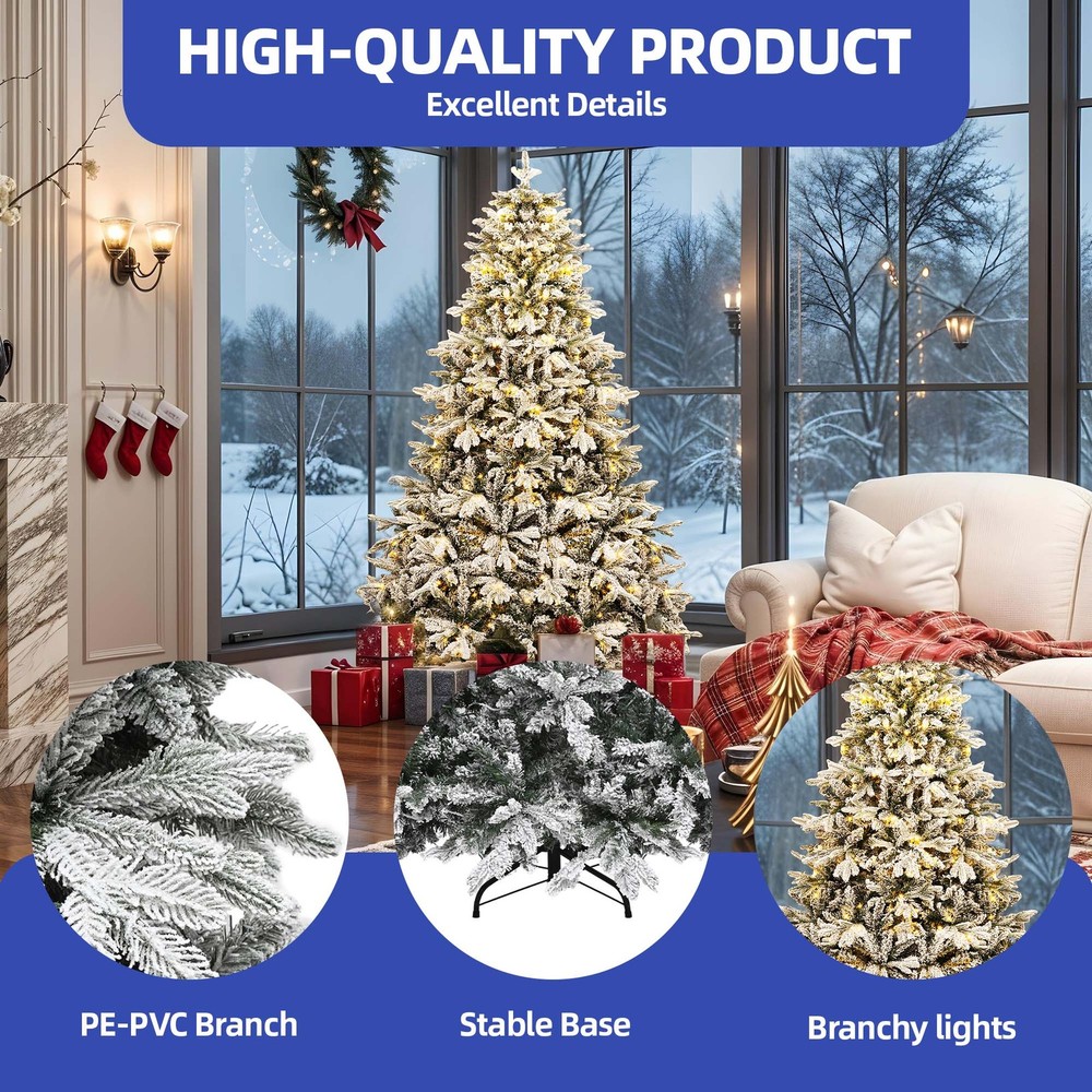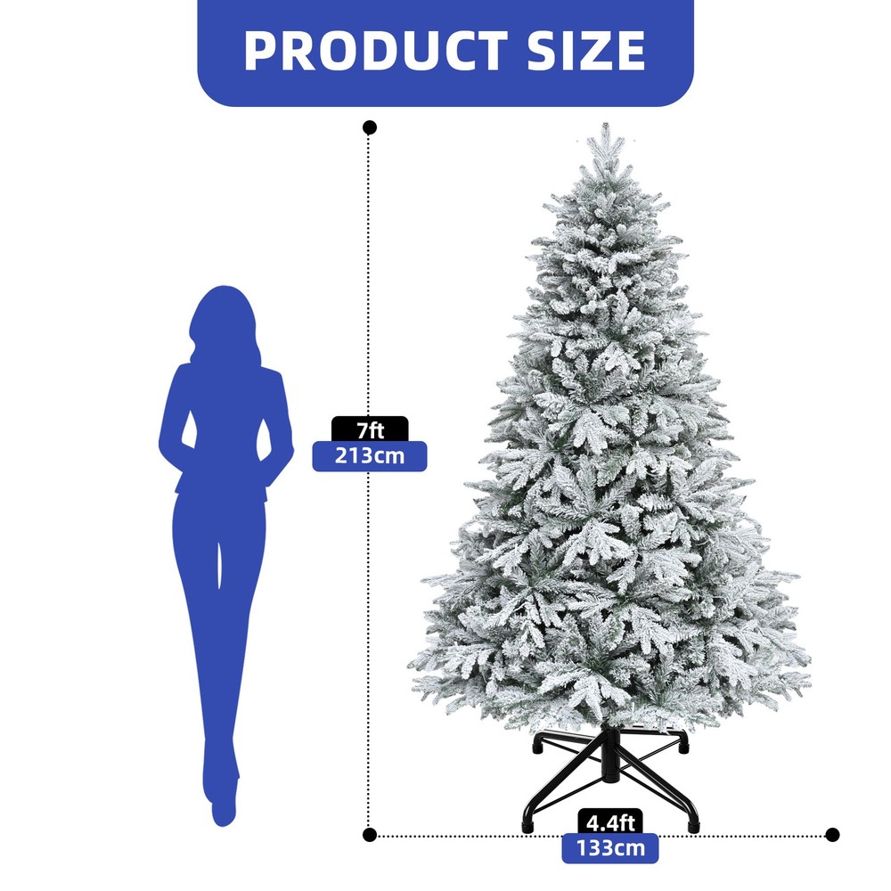 7 ft Pre Lighted Canaan Fir Christmas Tree Snow Flocked with 1687 Tips 330 Light Product Description NOTE: Professional Installation would be Highly Recommended. Description: 1. Material: PE PVC, Plastic 2. Color: Green Snowing 3. Features: 7.5ft Snow-Flocked Canaan Fir with 1687 Lifelike Branch Tips, Pre-Lit with 330 LED Color-Changing Lights, 11 Dynamic Modes with Remote & Adapter Control, Sturdy X-Shaped Iron Stand, Flame-Resistant & Hypoallergenic PE+PVC Material, Hinged Structure for Quick Assembly, Easy 3-Part Disassembly for Space-Saving Storage, Elegant Winter Wonderland Look for Home or Commercial Holiday Decor. Features: Luxurious Fullness – Dense, Realistic Design : Standing 7.5ft tall , this Canaan Fir Christmas Tree features 1687 branch tips crafted from a premium blend of PE and PVC materials , offering a lush, full-bodied, and lifelike appearance. The heavy flocking adds a snowy effect, transforming your space into a magical winter wonderland. Perfect as a centerpiece for both home and commercial holiday displays. Versatile Lighting Effects – 330 Pre-Strung LED Lights : Pre-lit with 330 warm, cool, and color-changing LED lights , this tree offers 11 dynamic lighting modes , from steady glow to twinkling effects. Easily customize your festive ambiance using the included remote control and adapter switch , ensuring your holiday display matches any mood or celebration. Robust & Safe Construction – Built to Last : Crafted with flame-resistant and hypoallergenic PE+PVC branches , this tree prioritizes both safety and durability. The reinforced X-shaped iron stand provides excellent stability, preventing wobbling or tipping. Designed to endure many holiday seasons, it is perfect for families with children and pets. Quick & Hassle-Free Assembly – Hinged Branches & Compact Storage : The hinged structure allows the branches to automatically fall into place , reducing setup time. Simply shape the branches to your liking, decorate, and enjoy. The tree disassembles into three manageable sections , making it easy to store while saving space for next season. NOTE : Some flocking particles may shed during setup, which is normal and does not affect the beauty or durability of the tree. Dimensions: 1. Overall Size: 7ft x 4.4 ft Package Included: 1. Set of Christmas Tree 2. Assembling Hardware Kits 3. Instruction Manual Book Note: Since the branches are on the packaging, when the tree arrives, please make sure to arrange the branches properly for a more attractive appearance. Shipping 1. Normally the item will be dipatched within 1 business day if payment is cleared before 12pm PST. 2. Please verify the correct shipping address in your PayPal account before making the payment. We only dispatch the item to the address that is sent to us at the time of checkout. 3. We don't ship to Hawaii, Alaska, Puerto Rico, APO/FPO/PO Boxes. 4. We don't provide local pick-up service. 5. Normally we will use USPS, UPS, FedEx & LTL to dispatch items. Payment 1. We accept PayPal and credit card. 2. We will ship to the confirmed Paypal shipping address that is provided with the payment only. Return 1. 30 days Money Back Guarantee. 2. Please contact our customer service to receive a RMA form first if want to return the item. 3. All returned items MUST in new condition with the original package. Contact If has any problem, please contact us by sending an ebay message. Our customer service will resolve the problem as soon as possible. On Aug 8, 2024 at 03:04:35 PDT, seller added the following information: On Aug 20, 2025 at 02:53:23 PDT, seller added the following information: