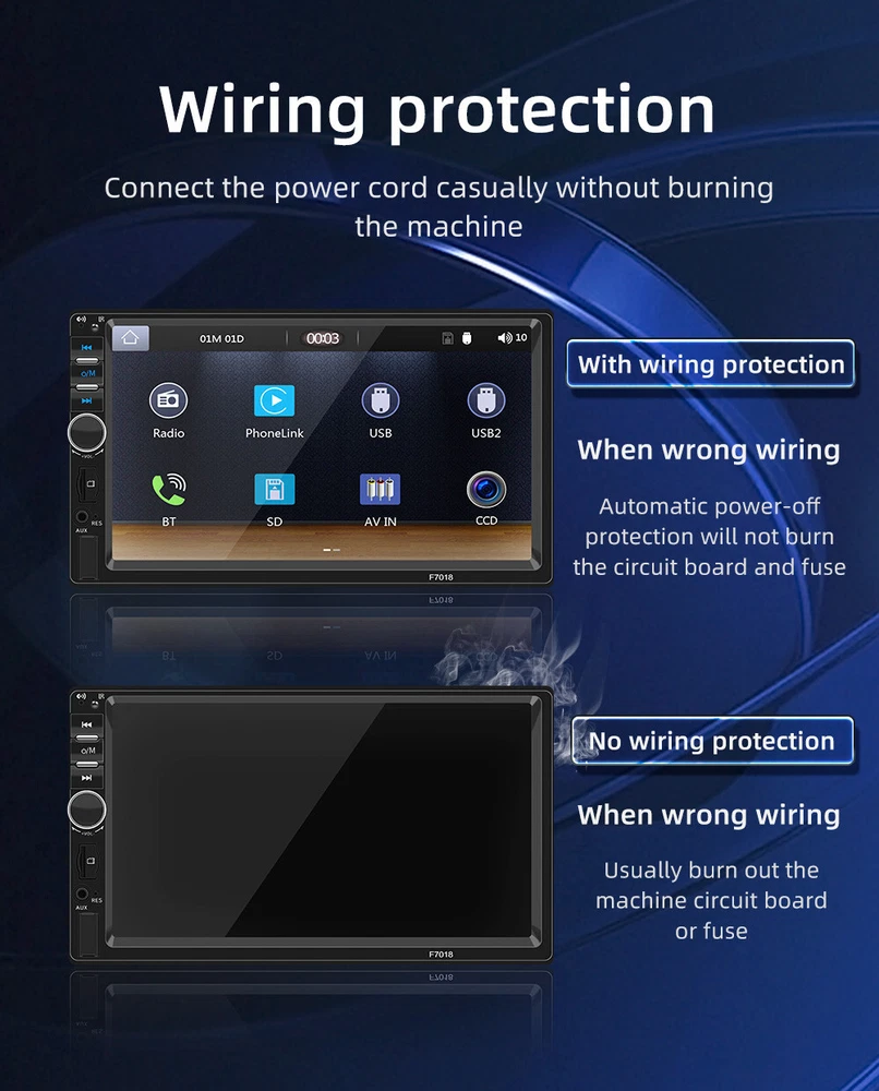 Home Payment Shipping About us Contact us Store Categories Store Categories Other Details 7" Double 2 DIN Car MP5 Player Bluetooth Touch Screen Stereo Radio Wired Carplay+Android Auto Product Introduction: Type: On board MP5 Radio frequency: FM 87.5~108.0MHz (can switch radio frequencies in China, America 1, America 2, Japan, Russia, Middle East, and Europe regions) Output power: 60Wx4 Working voltage: 12-14.4V Working temperature: -10~60 ℃ Bluetooth version: 5.1 version (default name: SWL-BT) Display resolution: 1024x600 Screen size: 7 inches Installation size: 178x105MM Single unit weight: 0.617KG Full container net weight: 12.34KG Number of full containers: 20 units Audio format: MP3/AAC/APE/OGG/M4A/RA/WAV Video format: H263/H264/H265/DIVX HD/AVI/FLV/MKV/MPEG/MP4/WMV9/VC/ASF/TS/QT Image format: JPEG/PNG/BMP/GIF Language parameters: English, Chinese, Spanish, Portuguese, Russian, German, French, Polish language, Türkiye, Arabic, Hebrew language, Italian, Czech language, Japanese, Korean Accessories: 1. Host 2. Instructions 3. Power cord 4. Remote control Shipping Policy Payment Method Returns Policy Shipping Policy Payment Method Returns Policy Home Payment Shipping About us Contact us Home Payment Shipping About us Contact us Store Categories Store Categories Other Details 7" Double 2 DIN Car MP5 Player Bluetooth Touch Screen Stereo Radio Wired Carplay+Android Auto Product Introduction: Type: On board MP5 Radio frequency: FM 87.5~108.0MHz (can switch radio frequencies in China, America 1, America 2, Japan, Russia, Middle East, and Europe regions) Output power: 60Wx4 Working voltage: 12-14.4V Working temperature: -10~60 ℃ Bluetooth version: 5.1 version (default name: SWL-BT) Display resolution: 1024x600 Screen size: 7 inches Installation size: 178x105MM Single unit weight: 0.617KG Full container net weight: 12.34KG Number of full containers: 20 units Audio format: MP3/AAC/APE/OGG/M4A/RA/WAV Video format: H263/H264/H265/DIVX HD/AVI/FLV/MKV/MPEG/MP4/WMV9/VC/ASF/TS/QT Image format: JPEG/PNG/BMP/GIF Language parameters: English, Chinese, Spanish, Portuguese, Russian, German, French, Polish language, Türkiye, Arabic, Hebrew language, Italian, Czech language, Japanese, Korean Accessories: 1. Host 2. Instructions 3. Power cord 4. Remote control Shipping Policy Payment Method Returns Policy Shipping Policy All items will be checked before packing. All items are new and of high quality. Item will be shipped within 1 business days upon receipt of payment, excluding weekends and public holidays. If to USA,we will ship your order by USPS,it will take about 2-6 working days to you,and you can track it on line. If to other country,we will ship your order by China Post or Singapore Registered Air Mail,it will take about 14-21 working days to you,you aslo can track it on line. Delivery time is about 14-28 business days and it may take up to 8 weeks. Payment Method We accept payment by PayPal ! Payment should be completed within 5 days after buyer places the order,or else an unpaid case will be opened in order to cancel the transaction. If you can not pay in time, please contact us. e-check from PayPal will only be processed once the payment clears. All of the items will be shipped to buyer's EBAY address,please confirm your address on Ebay before you buy.Your order will be usually shipped out the same or next business days once the payment is made and cleared. Returns Policy 30-day Warranty with Exchange for defective, malfunctioned, incorrect or parts-missing items. Please notify us and return the item with all parts and accessories packed and marked "FOR EXCHANGE" within 14 days of receipt. If defective, malfunctioned or parts-missing items are no longer available, a refund may be issued. Home Payment Shipping About us Contact us