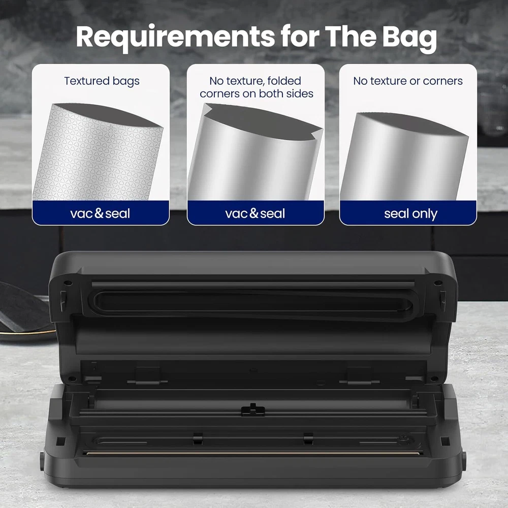 Free eBay listing template designed by dewiso.com Vacuum Sealer Machine, 7-in-1 Vacuum Sealer for Food with Built-in Cutter and Bag Storage, Dry/Moist/Gentle Mode, Removable Drip tray, Complete Starter Kits FREE AND FAST SHIPPING! About this item 7 Selectable Modes: SANBORA food vacuum sealer machine offers 7 modes for you to choose from. Tailor your preservation based on food type-choose “Dry” or “Moist” settings, paired with “Normal” or “Gentle” vacuum pressure. The “Pulse” mode is ideal for fragile items, allowing you to customize the vacuum process. Note: When in “Moist” mode, the machine automatically switches to “Gentle” vacuum pressure. 75kPa Powerful Suction: Equipped with dual vacuum pumps and a 110W power source, SANBORA food vacuum sealing machine can generate a powerful suction of 75kPa. It outperforms ordinary machines in food preservation. The silent-type vacuum pump operates at less than 60dB, ensuring a quiet and pleasant vacuum sealing experience. 12.6" Extended Seal: With a maximum sealing length of 12.6", the SANBORA vacuum sealer's extended heat seal is longer than that of many machines. It can seal larger bags and multiple bags at once, meeting diverse sealing requirements and keeping all types of food fresh for extended periods. Humanized Design: Featuring a built-in cutter and bag storage for 11.8-inch wide bag rolls, the vacuum sealer makes customizing bag sizes a breeze. The integrated and compact design simplifies the vacuum sealing process. The removable drip tray takes the hassle out of handling soupy food. Plus, the independent power switch allows for easy on-off operation when not in use. What you can get: In the package you can get 1 vacuum sealer, 5 pieces of 4.7"×7.9" vacuum bags, 5 pieces of 7.9"×9.8" vacuum bags, 1 roll of 6.7"×197" bag, 1 external suction hose, 2 replacement foam seals, 1 power cord, and 1 user manual. SANBORA offers a 1-year warranty. If you have any questions, our support team is always here for you. Important Note: When food sealer is not in use, please place the support card back. do not close and lock the vacuum sealer. Otherwise the sponge may be distorted, reducing the air-exhausting effect. Product We offer a 30-Day Return Policy on items which you are not completely satisfied with. You have the option for a full-refund or an exchange of the item. No returns are available on items shipped outside of the US . Shipping We offer Free Shipping to the US and ship within 2 business days of payment, usually sooner. We use UPS express shipping. That's why your products are usually delivered within 3 days . Contact We try our very best to make sure every customer is completely satisfied. If there's a problem , message us! We're happy to help. 24/7 live chat available.