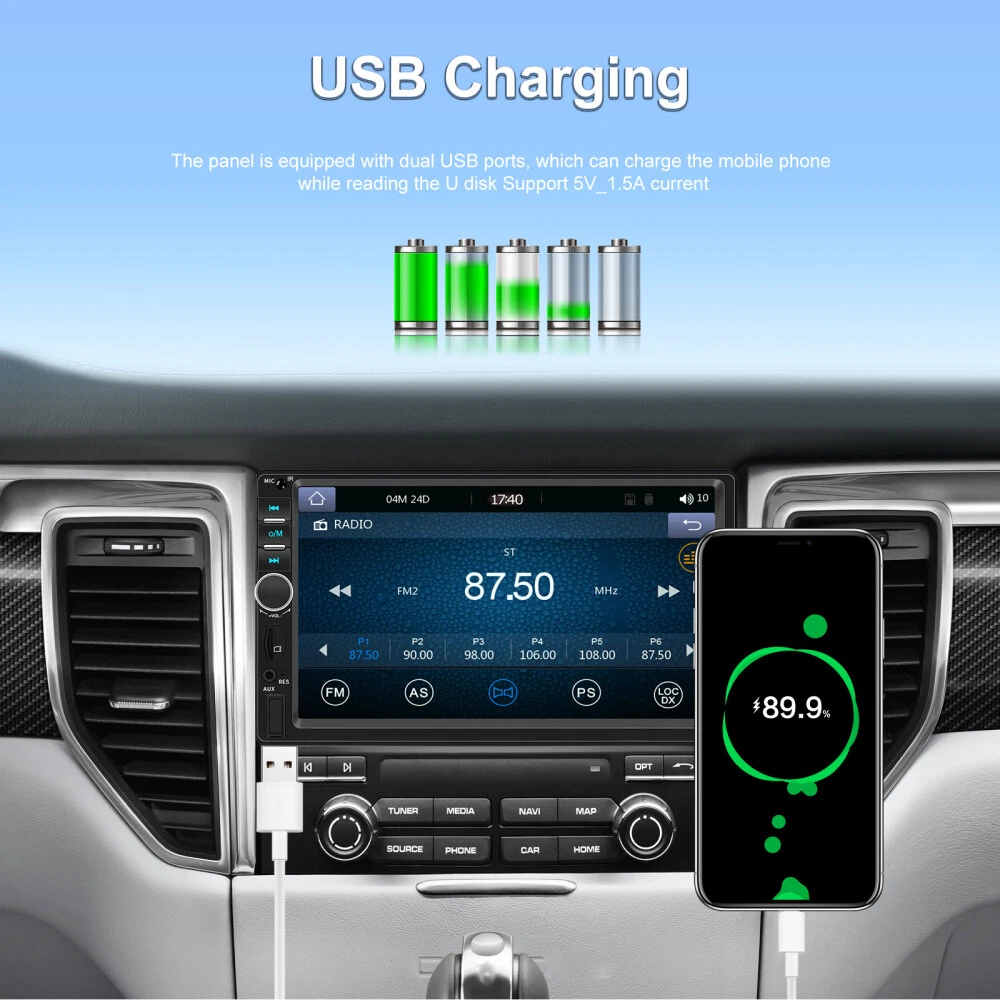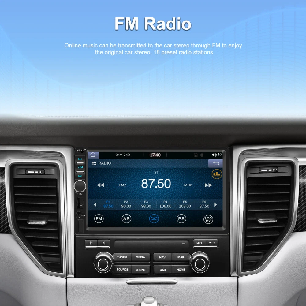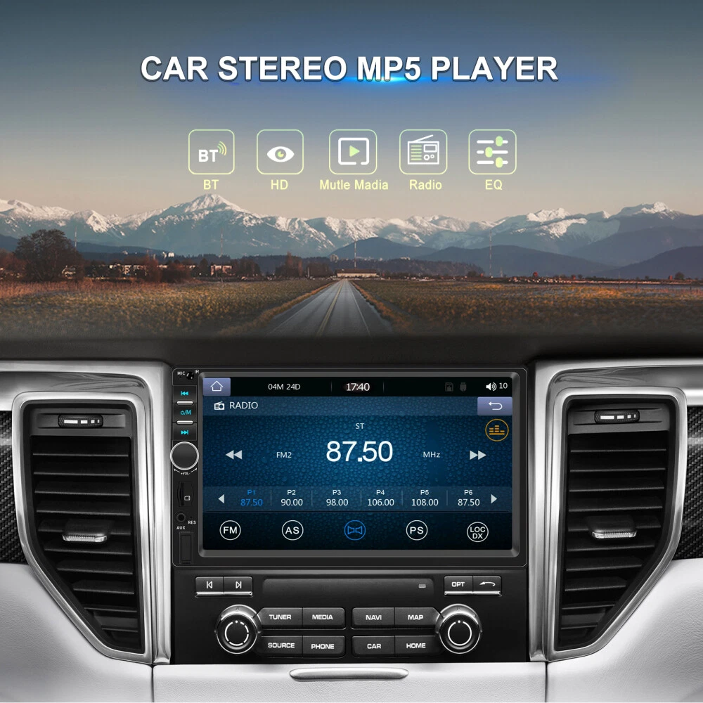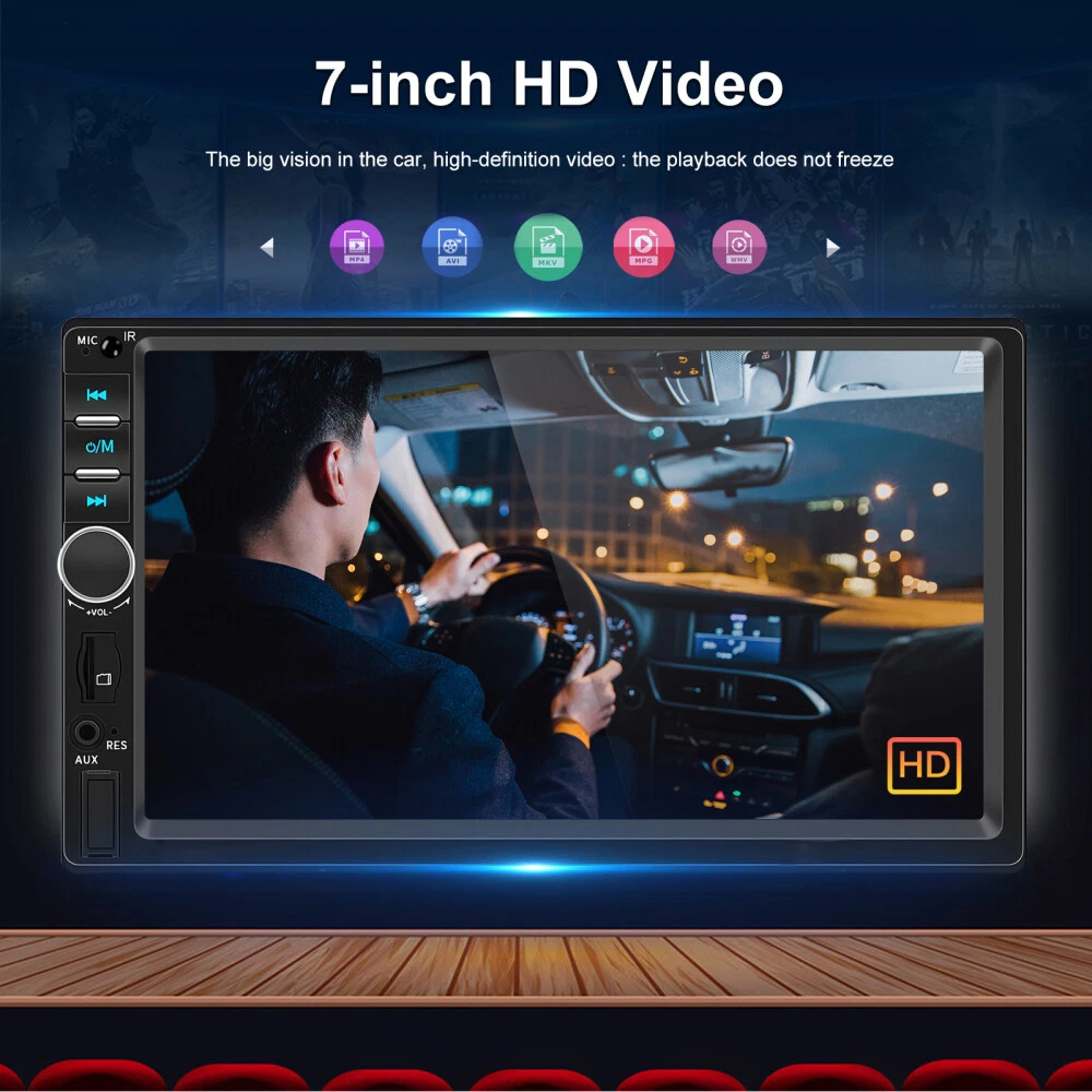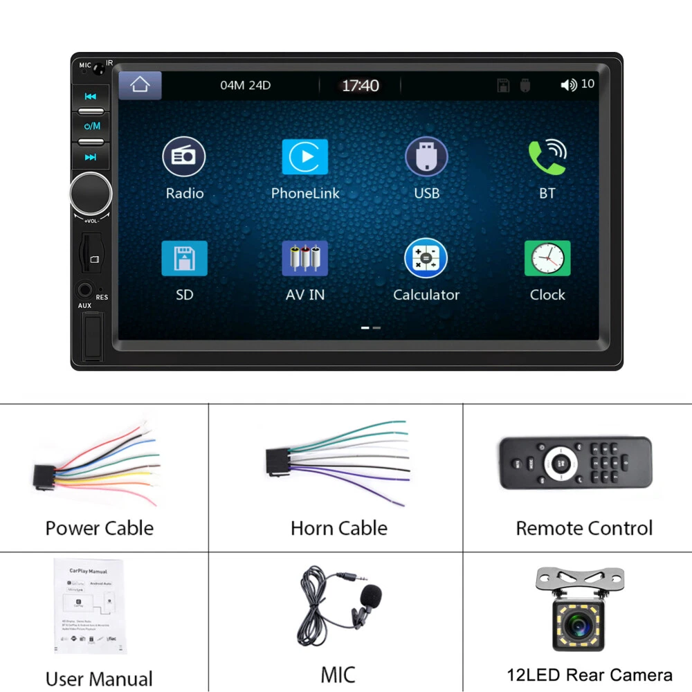 Double 2DIN 7" Touch Screen Car Stereo Apple CarPlay Android Auto Radio + Camera Description feature: ●Built-in carplay system: connect with Apple mobile phone to access mobile phone address book, mail, notification, map navigation, music, video and other information, and realize voice control. ●Android Auto , use USB data cable to connect. ●Mobile phone interconnection: can be connected via USB data cable ●Built-in Bluetooth function, can be connected to mobile phones, hands-free calls, safer driving, Bluetooth music playback ●FM radio: you can listen to real-time road conditions, news broadcasts, weather forecasts, etc....... 18 preset storage functions of the FM receiver ●Support steering wheel control function: use the car steering wheel to quickly switch the functions you want, which is more convenient ●Support reversing rear view system: if the car reversing camera is connected, the car stereo display will automatically turn to the rear view reversing details to help the driver to park safely ●AUX audio input interface supports external MP3, mobile phone, music player, etc. ●RCA audio output (L out R out) Specification: System: F133 Model: 7018B Size: 7.0 inches Voltage: 12V Audio amplifier: 7388 Bluetooth: 5.1 Screen resolution: 800*480 Output power: 4*45W USB interface: USB2.0 Reversing input: CVBS Radio range: FM 87.5-108.0MHZ (Europe) Working temperature: -10℃ ~ 60℃ Audio format: MP3/WMA/WAV/APE/FLAC Video format: MKV/AVI/TS/TP/MP4/M4V Max Bit Rate (50Mbps-80Mbps) Languages: English, French, Spanish, Russian, Italian, Portuguese, German, Polish, Chinese (simplified), Turkish, Arabic, Hebrew Package Included: 1 x Car mp5 player 1 x 12 Leds Camera 1 x remote control 1 x power cable 1 x audio cable 1 x User Manual 1 x Microphone Payment Shipping Returns Contact Us 1. Accept Paypal ,Card and Bank. 2. All major credit cards are accepted through our secure payment system. 3. We ship to your payment address. Please make sure your penment address is correct before paying. Please make sure your eBay shipping address is correct for your receipt. We will try our best to resolve any dispute and do our best to please you. If you are not satisfied with our product, please contact first. We happily accept returns and give a full refund (minus shipping) on any item. The item must be returned in its original condition with the hygiene and health seal intact. If you haven't received it within the delivery time, please feel free to contact us. We will check it for you with the post office and customs. Because sometimes it is delayed by traffic or flight jams. Please don't open a dispute to us. We will take responsibility for reshipping or refunding lost items. Please contact us in good time if you have any questions under any circumstances. We look forward to your positive feedback and we will do the same for you. We care about our valued customers and will always do our best to help you in case you have any problems. Working time: GMT + 8/9: 00-18: 30 Usually we will reply you within one working day.