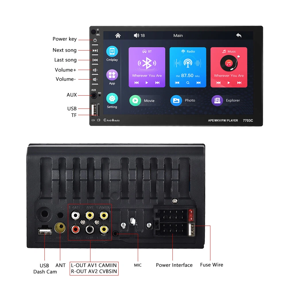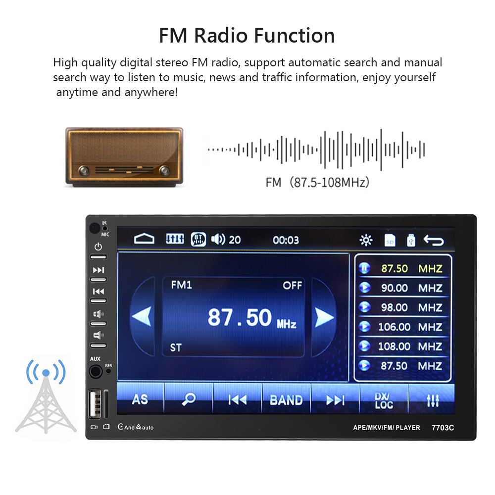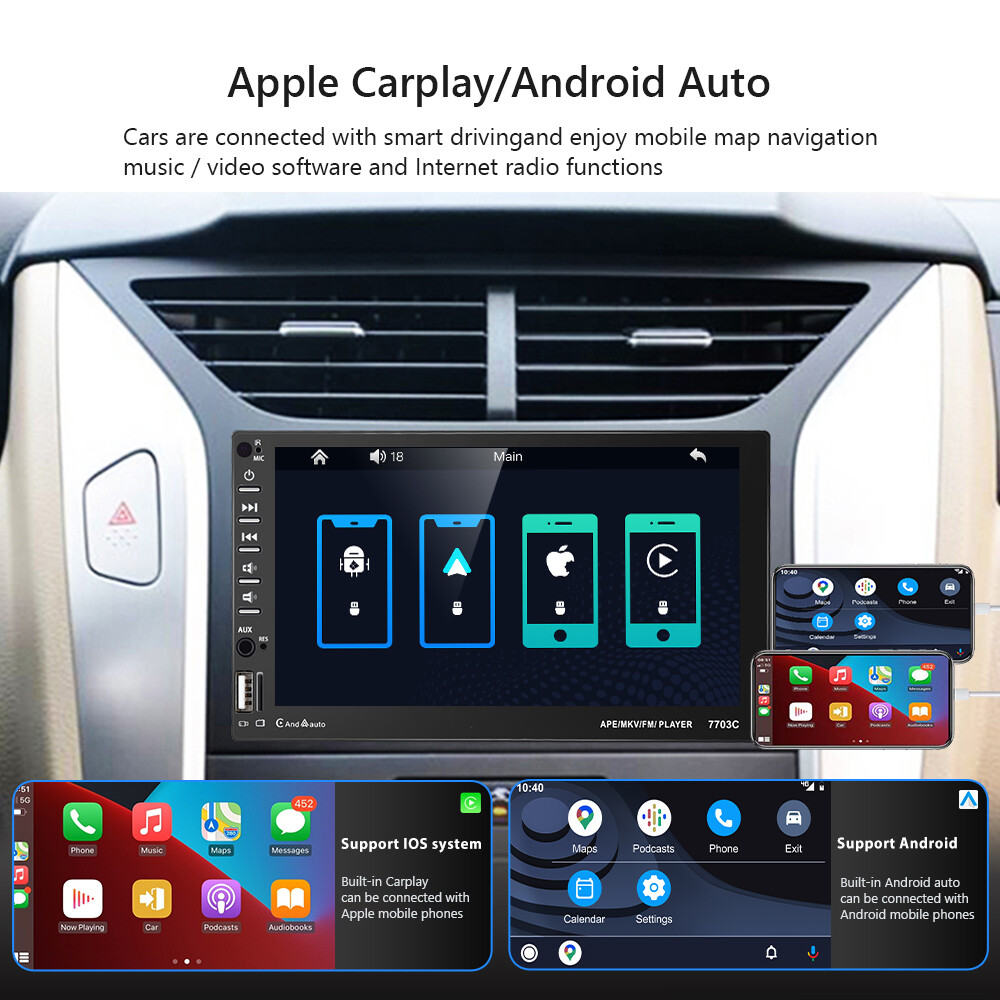 7" Double 2 DIN Apple Carplay Car Stereo Radio Bluetooth Touch Screen MP5 Player Description Features 1. Screen: 7-inch high-definition video playback 2. Support rear view system: If connect to a car backup camera, the car stereo monitor will turn to rear view reversing details automatically and help driver a safe parking 3.Driving recorder: You can choose the driving recorder, there is playback on the car, you can keep the evidence 4. FM radio: online music, you can transmit music to car stereo through FM, enjoy the original car stereo sound, and with 18 preset radio stations 5. Mirror Link: Support Android/ Iphone Mirror Link,through phone's original USB line Can synchronized to the on-board screen,which can support Apple mobile phone 13.4 version, Android mobile phone version 10.1. More than this version or does not support mobile phones, need to upgrade the software after the original factory debugging 7. Bluetooth function: dual-pass Bluetooth 4.2 version / support for incoming and outgoing calls / synchronous address book / support for mobile phone music playback / support for voice functions. 8. Media: Support various brands of U disk with unlimited capacity/USB card reader/audio and video input (AUX IN)/audio output (subwoofer)/video output (display on the same screen); 9. Play function: support MP3/WMA/APE/FLAC/WAV/OGG and other audio formats; support RM/RMVB/ VOB/DAT/MP1/MP2/DIVX/MP4/ FLV/3GP/SWF/AVI/ASF/MIPEG, etc. Video format 10. Capacitive screen full-screen touch, sensitive operation. 1024*600 display The new A-standard high-definition IPS screen. 11. Support English/Chinese/Portuguese/Western/Russian/German/Italian/Polish/French/Japanese/Turkish/Czech and other languages, the default is English 12. Carplay: You can use wired connection to carplay, connect to Apple mobile phone, access mobile phone address book, mail, notification, map navigation, music, video and other information, and realize voice control. 13.Wired Android auto: The wired Android auto car system can closely integrate the user's Android phone and player, and realize navigation, make calls, send and receive information, listen to music and other operations through data cable connection,Applicable to Android phones (not applicable to Huawei brand phones) Specifics Chipset: C800 Screen size: 7.0 inches Screen resolution: 1024*600 Mirror link: Wired Android / IOS Radio chip: 8035 Output power: 4 * 45W Working temperature: -40℃-80℃ Steering wheel control function: support Bluetooth version: 4.2 Power amplifier chip: AC7388 Radio frequency band: FM Video output: support Reversing input:CVBS USB: double USB ports AUX: Support carplay:support wired Android auto:support wired Recorder: support (specify the recorder) External microphone: support Audio format: APE / FLAC / WAV / MP3 / WMA, etc. Video format: MKV / RMVB / AVI / MP4 / MDV, etc. Picture format: PNG / JPEG / JPG / GIF / WBMP / BNP, etc. Language: Support English/Chinese/Portuguese/Western/Russian/German/Italian/Polish French/Japanese/Turkish/Czech and other languages, the default is English Product included 1 x Car MP5 Player 1 x Power Cable 1 x Horn Cable 1 x Remote Control 1 x User Mannual 1 x MIC Payment Shipping Returns Contact Us 1. Only accept Paypal 2. All major credit cards are accepted through our secure payment processor PayPal. 3. We ship to your Paypal address. Please make sure your Paypal address is correct before you pay. Please make sure your eBay shipping address is correct for your receiving. We will try our best to solve any dispute and try our best to satisfy you. If you are not satisfied with our product, please contact first . We will gladly accept any return and give a full refund (minus shipping costs) on any item. The item must be returned to us in original condition with the health and hygiene seal intact. If you have not got it within the shipping time, please no hesitate to contact us. We will check it for you with the post office and customs. Because sometimes it will be delayed for traffic or flight jams. Please do not open dispute to us. We will take responsibility to resend or refund for any lost item. Please contact us in time if any enquriy under any circumstances. We greatly appreciate your positive feedback and we'll do the same to you. We care about our valued customers, and will always try our best to help you, if you have any problems. Working time: GMT+8 / 9:00-18:30 in normal we will reply you in one working day.