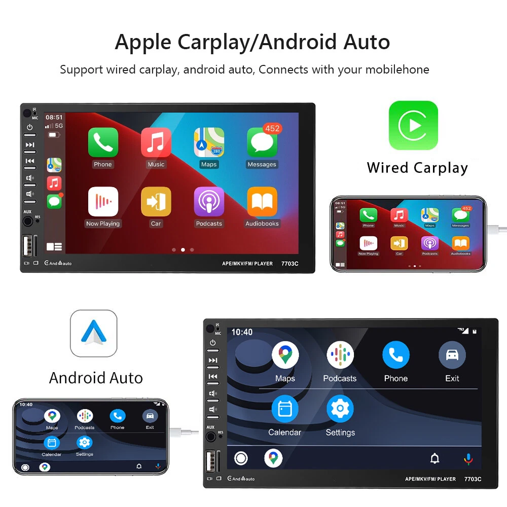 $ 21.127 Inch Single DIN Touchscreen Car Stereo with Apple CarPlay Bluetooth MP5 Player