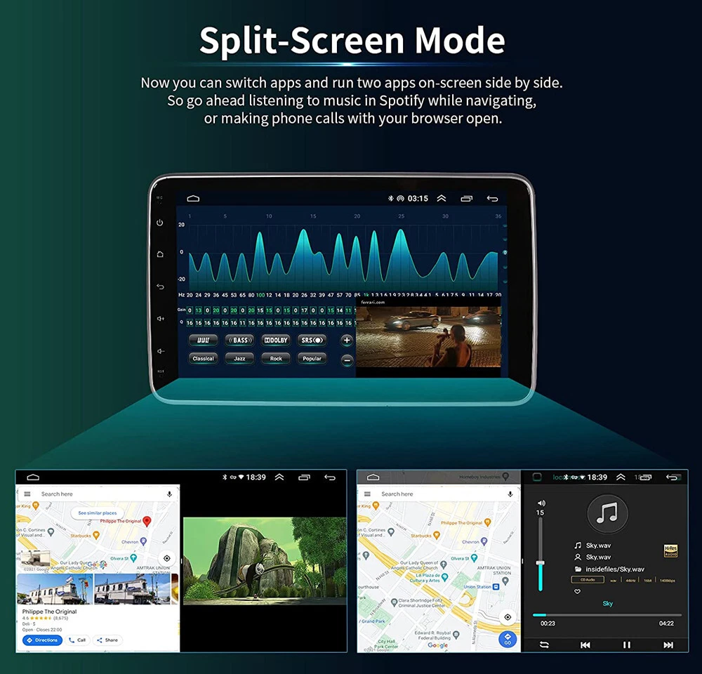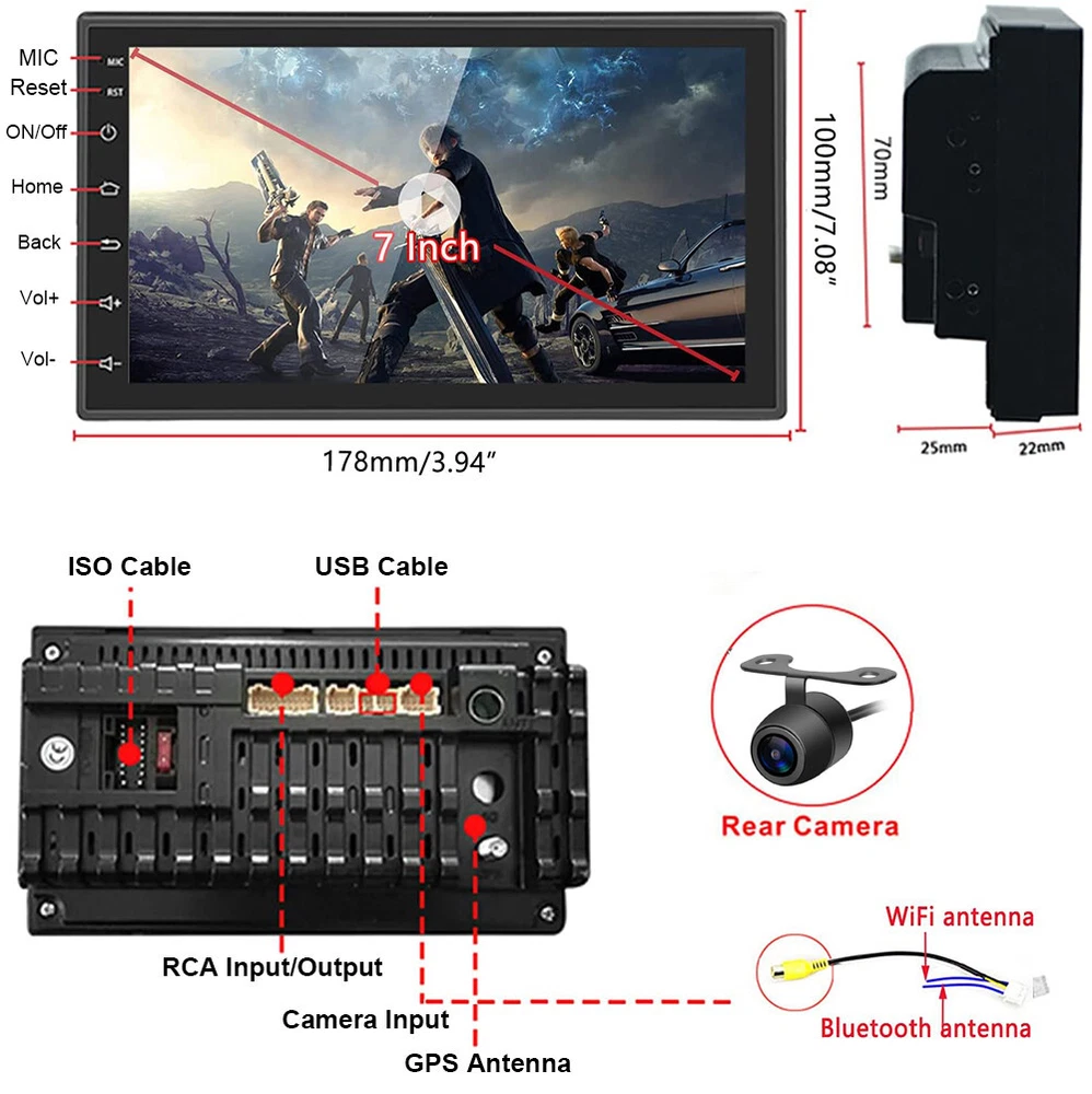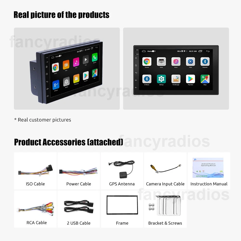 Double Din 7" Car Radio Apple/Andriod Carplay Car Stereo Touch Screen Android 13 4+64G 7" Android 13 Car Stereo Radio Wireless Apple CarPlay GPS Navi WiFi Wireless Apple CarPlay & Android Auto Car Stereo Radio MP5 Player Features 1. Android 13.0 operating system 4G RAM + 64GROM 2. Support wireless/wired Apple CarPlay & Android AUTO 3. WiFi connect: Built-in WiFi module, can connect to internet by WiFi hot spot, download APP to watch online video etc. 4. GPS navigation: Built-in navigation module, support on-line off-line navigation, free navigation map 5. Bluetooth function: Built-in Bluetooth module, support Bluetooth phone connect, handsfree for calling or Bluetooth music play 6. Rear view function: Support Rear view camera input, backing car more safer and convenient (Option) 7. Radio tuning: Support FM Radio, FM1/FM2/FM3 87.5-108 MHz, you can listen the radio which is your interested. 8. Rear dual USB port input: Support rear cable USB input, can play music/movie Or wire CarPlay Android Auto 9. Screen: 2.5D Capacitive touch screen, 1024*600 resolution, support 1080P video 10. Improve sound quality with equalizer, use DSP EQ to adjust the sound to render better results 11. Split screen function: You can use 2 APP at the same time when you use split screen function 12. Optional accessories: DVR(front camera optional) OBD2: Support OBD2(ELM327 OBD2 adapter optional) Specifics ◆Voltage:DC 12V ◆ Operating system:Android 13.0 ◆Apple CarPlay: Support Wireless/Wired Connection ◆Android Auto: Support Wireless/Wired Connection ◆CPU: Quad Core ◆ RAM:4G ◆ ROM:64G ◆ Screen size:7 inch 2.5D Capacitive touch screen ◆ Bluetooth Version:5.0 ◆ Bluetooth keyword:0000 ◆ USB: Dual USB 3.0 ◆ Radio Band: FM ◆ Audio Ouput: 4x50W ◆ Resolution: 1024 *600Pixel Support 1080P video ◆ Audio format:MP3 MP2 AAC OGG FLAC APE WMA WAV RM AC3 ◆ Video format:AVI 3GP/MP4 MOV MPG MKV WMV RMVB ◆ Language:English, Arabic, Russian, Hebrew, Spanish, Italian, French, Thai, German, Japanese, Korean, Turkish, Czech, Hungarian, Dutch, Polish, Swedish, Ukrainian, Romanian, Greek, Danish, Finnish Product included: 1 x Android Car Stereo 1 x Power Cable 1 x GPS Antenna 2 x USB Cable 1 x RCA Cable 1 x User Manual Shipping 1. We will send the item to you from the warehouse near you. 2. We only ship to address that you left on the order, must confirm your Shipping address. 3. All the items will be shipping within 1-2 working days after receiving the payment, except some holidays. 4. When the shipping method is express delivery, some areas need to pay remote fees to the courier company. Taxes, Customs & Duties 1. Some countries are required to collect customs duties. Please confirm your local customs duties before placing orders. 2. We will not be responsible for any custom delay or tax, because transit time is highly depended and provided by postal Service. Returns 1. If you have not satisfied as you received the item, please return it within 30 days for a replacement or money back. Please contact us before you return it. 2. All returned items must be in the original packaging with all components and accessories included, and you must provide us the return shipping information (The shipment or the tracking number) 3. Return shipping fee is to be paid by the buyers. We will not be responsible for any custom duty or import tax. Warranty 1.One Year Manufacturer's Warranty for defective items (excluding items damaged and/or misused after receipt). 2.Defective items must be reported and returned to us within the warranty period (and in the original packaging, if possible). You must tell us what the defect is and give us your eBay ID. We do not repair or replace items with an expired warranty. Payment Shipping Returns Feedback Payment - We accept Paypal only . Paypal allows pay directly via your credit card without asking any Paypal membership . - It is buyer's responsibility of import duties and custom charges. - Please pay within 7 days since the date order generated . - We ship to your eBay or Paypal address . Please make sure your eBay and Paypal address is correct before you pay. Shipping We ship to worldwide.If the product page does not have your country, please contact us. - Prefered shipping carrier : DHL/EMS/UPS/USPS/China Post/ePacket,etc. - Handling time may 1-3 working days after payment cleared . - Delivery time is mainly based on the shipping carrier selected .Some remote area may be delayed . - You can track your package by clicking the tracking number which we uploaded to ebay . Returns All products come with warranty. Replace/return are available if buyers receive wrong/damaged/defective items. Attention: 1. Customer is responsible for the return shipping fee; we will pay for sending the item back to customer. 2. We suggest that ask professional to install products and contact us when installing issue happened. However, we are not responsible for installing or uninstalling. Please keep the packaging and all parts you received for a couple days before you assured no need to return , in case of returning situation occurs . - If your item comes damaged or defective ,please contact us in the first time and prove us the details you suffered . - The returning item should be in it’s original packaging and assure all parts included . - Replacement/refund will be issued within 1-3 working days after we confirmed . - Buyers should be responsible for the shipping cost in non-quality problem case and restocking fee will apply . Feedback Very appreciated for your support. I hope you are happy with your purchase. We maintain high standards of excellence and strive for 100% customer satisfaction! Feedback is very important to us. We request that you contact us immediately BEFORE you give us or feedback, so that we can satisfactorily address your concerns. If you have any problem, please feel free to contact us via ebay message, we will reply your email within 24 hours (except weekends and holidays). We w