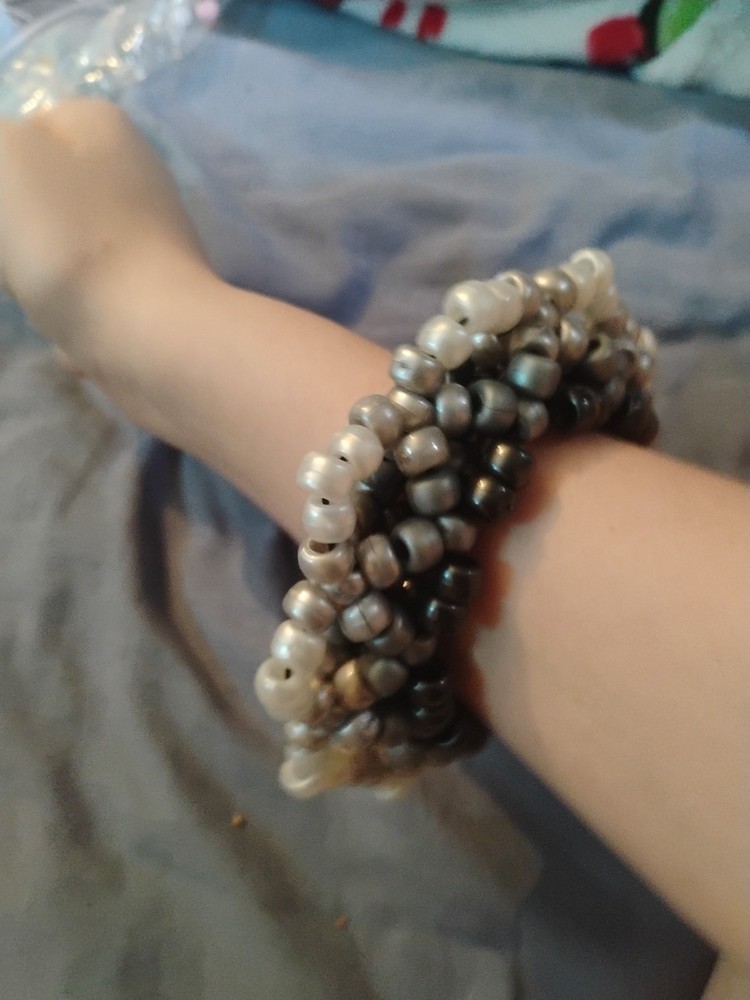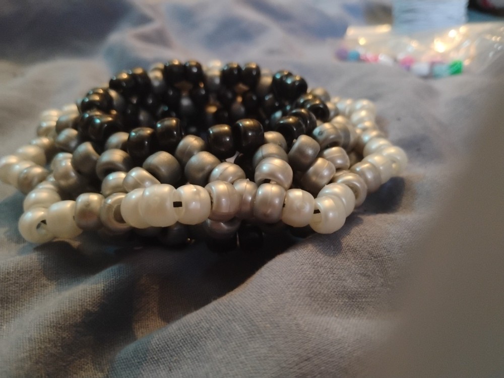7 inch Mandela Kandi cuff, with pearl black, sliver and gray pony beads, perfect for raves or just decoration :)