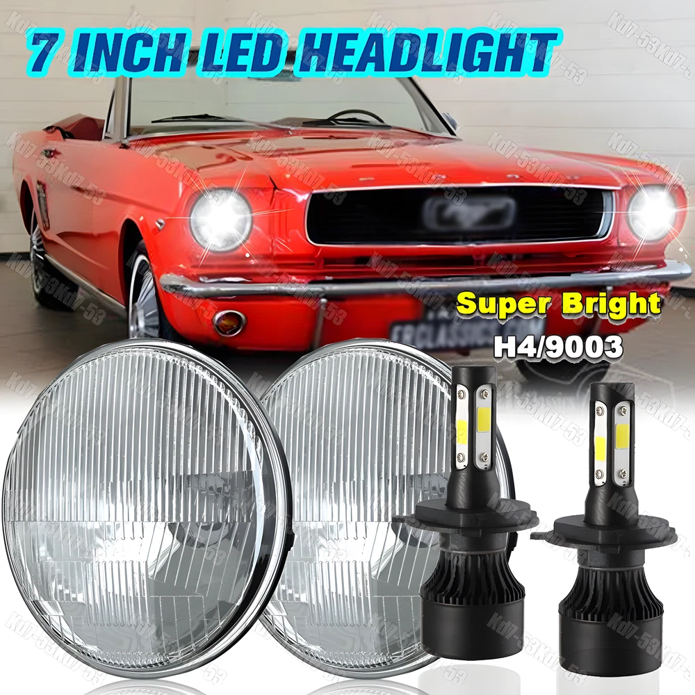 7inch Round LED Headlights Hi/Lo & Turn Signal Lights For Ford Mustang 1964-1984