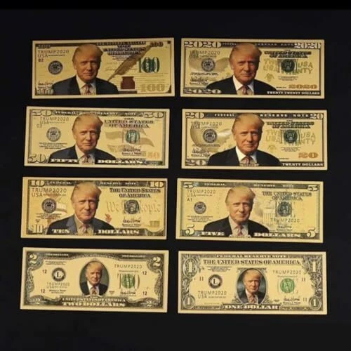 Return Policy Fast Delivery Trusted seller 7pc Set President Donald Trump 2024 $1 $2 $5 $10 $20 $50 $100 Dollar Bill Product Description PACKAGE INCLUDED: 7 Pcs Trump bills. These Gold Trump Dollar Bills are not legal tender but serve as a symbolic representation of support, admiration, and appreciation for the 45th President. Each bill features a stunning gold foil design that captures the essence of luxury and prestige. The front showcases a striking portrait of President Trump, accompanied by intricate engravings and patriotic elements. On the back, iconic landmarks and symbols of the United States are intricately displayed, representing the greatness of the nation. Great conversation piece. Proudly support MAGA, SAA, TAB. Shipping Returns Payment Shipping Shipping is FREE to all addresses other than APO/PO boxes in the lower 48 states. All our stock ships from US-based warehouses. Shipped via USPS or UPS (depending on location and package weight) Unless stated otherwise, all orders will ship within 24-72 hours of your payment being processed. Check our feedback to see the great reviews of FAST shipping we offer. Returns Seller does not accept returns Payment We currently accept payment via eBay managed payments only. Once payment is cleared, we will dispatch your shipment within 1-3 business days. Please refer to the "Shipping" tab for more information regarding shipping speed to your destination.