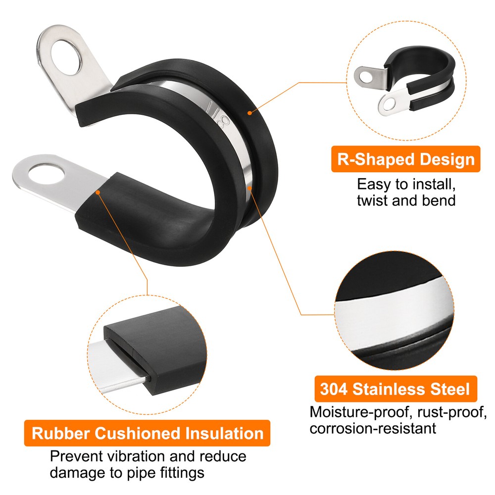Document The pipe clamps are made of 304 stainless steel, which is wear-resistant, moisture-proof, rust-proof, cold-resistant, heat-resistant, corrosion-resistant, waterproof, and oil-proof.The rubber cushion on the cable clamp has good flexibility, impact resistance, and friction resistance, which can help reduce the damage to the pipe fittings caused by impact, extrusion, and vibration during transportation, and its insulation performance makes you safer during installation and use.With a R-shaped design, the hose clamp is easy to twist, bend, and operate during installation, and it is easy to disassemble. Just use a screwdriver and screws to fix the wire clamp in place and tighten it, which can also be reused.The metal clamps are used to fix and support pipes, wires, cables, etc., which can protect them well and firmly fix them in place, extending their service life.These loop clamps can be used in automobiles, industries, ships, outdoors, mechanical maintenance, windshield, home decoration, homes, etc., which are suitable for the management, maintenance and repair of wires, cables, pipes, hoses, lines, etc. 7pcs Stainless Steel Cable Clamps 7/8 Inch Rubber Cushioned Insulated Clamp The pipe clamps are made of 304 stainless steel, which is wear-resistant, moisture-proof, rust-proof, cold-resistant, heat-resistant, corrosion-resistant, waterproof, and oil-proof. The rubber cushion on the cable clamp has good flexibility, impact resistance, and friction resistance, which can help reduce the damage to the pipe fittings caused by impact, extrusion, and vibration during transportation, and its insulation performance makes you safer during installation and use. With a R-shaped design, the hose clamp is easy to twist, bend, and operate during installation, and it is easy to disassemble. Just use a screwdriver and screws to fix the wire clamp in place and tighten it, which can also be reused. The metal clamps are used to fix and support pipes, wires, cables, etc., which can protect them well and firmly fix them in place, extending their service life. These loop clamps can be used in automobiles, industries, ships, outdoors, mechanical maintenance, windshield, home decoration, homes, etc., which are suitable for the management, maintenance and repair of wires, cables, pipes, hoses, lines, etc. Hot Item Payment 1.We accept eBay payment . 2.Payment must be received within 7 business days of auction closing. Shipping 1.We ship to your eBay or Paypal address. Please make sure your eBay and Paypal address is correct before you pay. 2.Items will be shipped within 1-3 business day when we received payment. 3.Delivery time depends on destination and other factors. Description Policy 7pcs Stainless Steel Cable Clamps 7/8 Inch Rubber Cushioned Insulated Clamp The pipe clamps are made of 304 stainless steel, which is wear-resistant, moisture-proof, rust-proof, cold-resistant, heat-resistant, corrosion-resistant, waterproof, and oil-proof. The rubber cushion on the cable clamp has good flexibility, impact resistance, and friction resistance, which can help reduce the damage to the pipe fittings caused by impact, extrusion, and vibration during transportation, and its insulation performance makes you safer during installation and use. With a R-shaped design, the hose clamp is easy to twist, bend, and operate during installation, and it is easy to disassemble. Just use a screwdriver and screws to fix the wire clamp in place and tighten it, which can also be reused. The metal clamps are used to fix and support pipes, wires, cables, etc., which can protect them well and firmly fix them in place, extending their service life. These loop clamps can be used in automobiles, industries, ships, outdoors, mechanical maintenance, windshield, home decoration, homes, etc., which are suitable for the management, maintenance and repair of wires, cables, pipes, hoses, lines, etc. Hot Item Payment 1.We accept eBay payment . 2.Payment must be received within 7 business days of auction closing. Shipping 1.We ship to your eBay or Paypal address. Please make sure your eBay and Paypal address is correct before you pay. 2.Items will be shipped within 1-3 business day when we received payment. 3.Delivery time depends on destination and other factors.